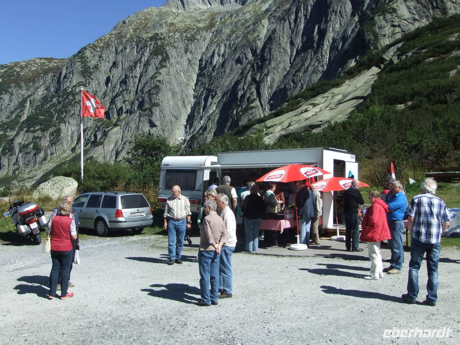 Die Kaffeepause wird auf dem Berninapass gemacht,