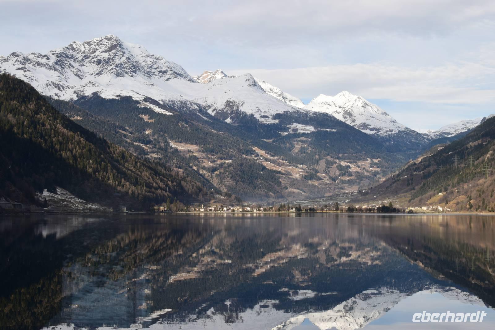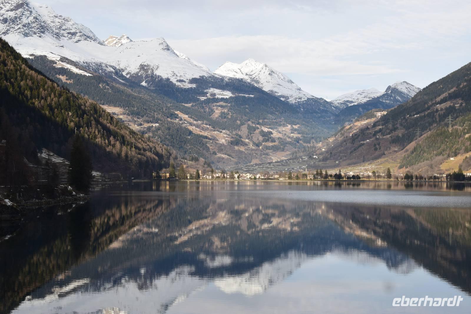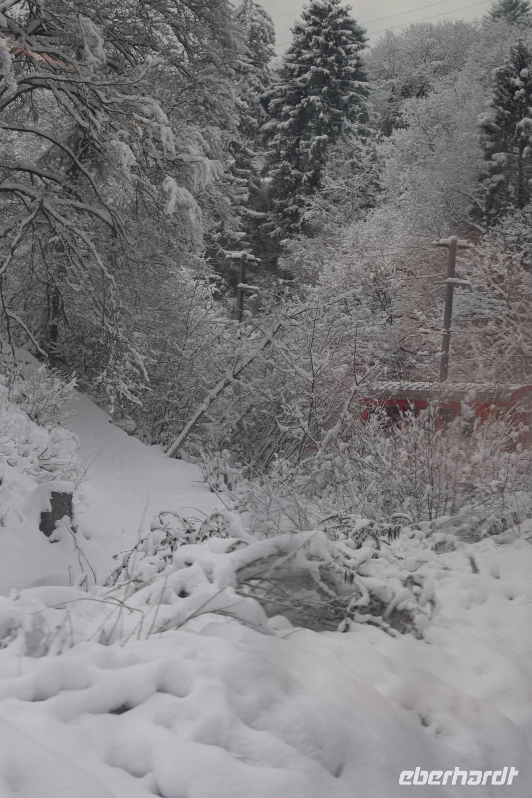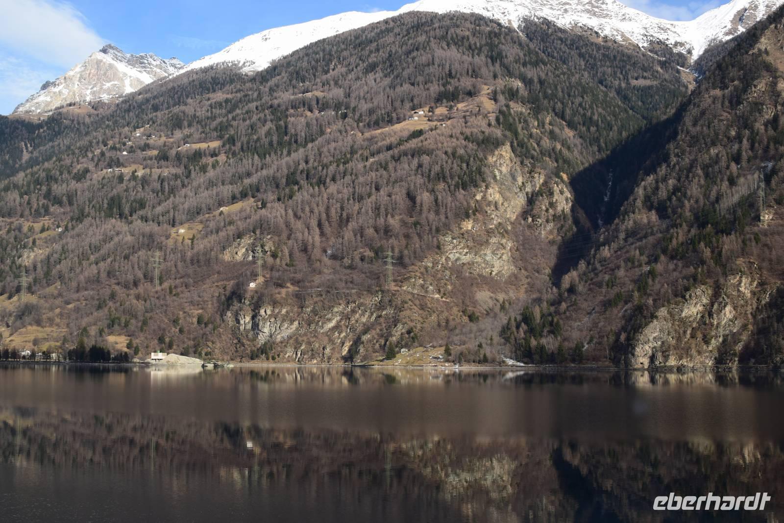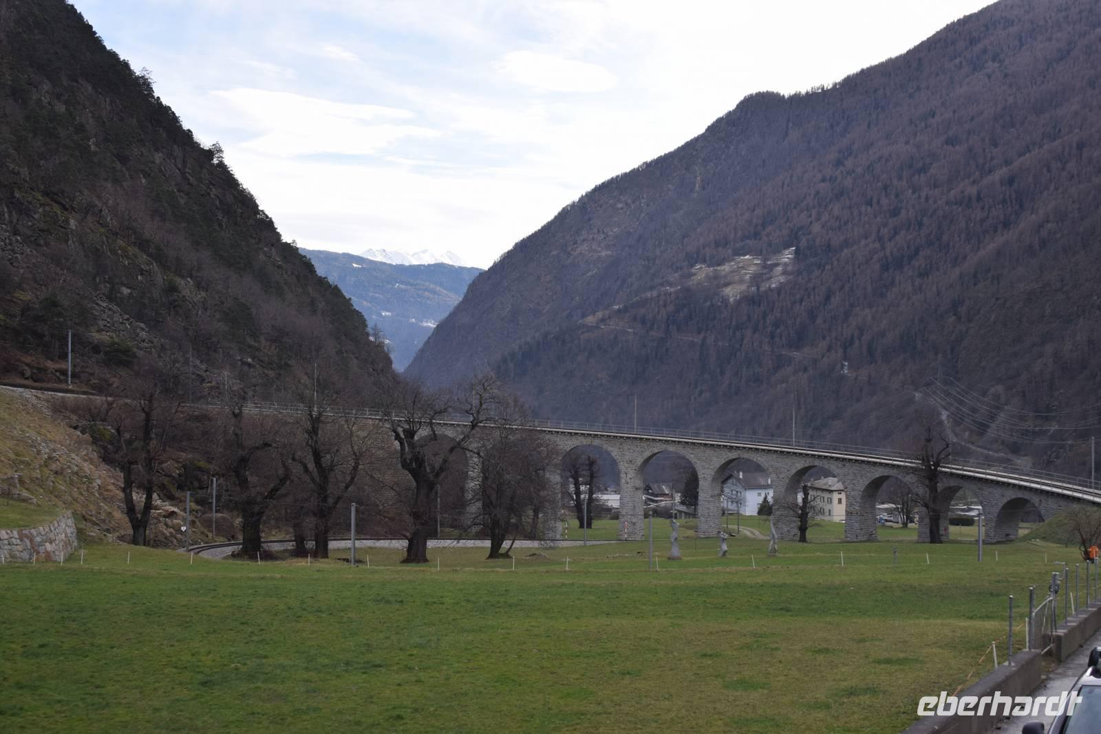 Ein kurzer Spaziergang führt uns zum Bahnhof Tiefencastel. Wieder ist ein Wagon für uns reserviert. Fast dreieinhalb Stunden fahren wir durch eine spektakuläre Landschaft. Immer wieder hört man das aufregende Klicken der Fotoapparate. Wir können uns nicht satt sehen an der winterlich verschneiten Umgebung. Durch Lautsprecher werden wir darüber informiert, welches Viadukt wir gerade überqueren oder welche Berge zu sehen sind. Zwischendurch erfreut uns ein italienischer Kellner mit seinem ausgesprochenen Humor.