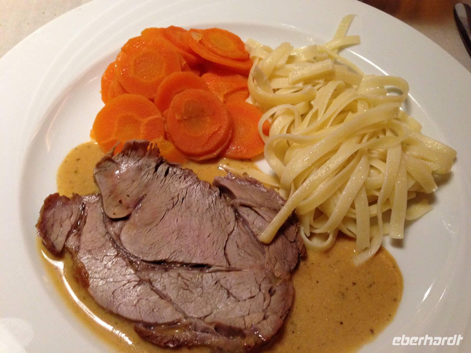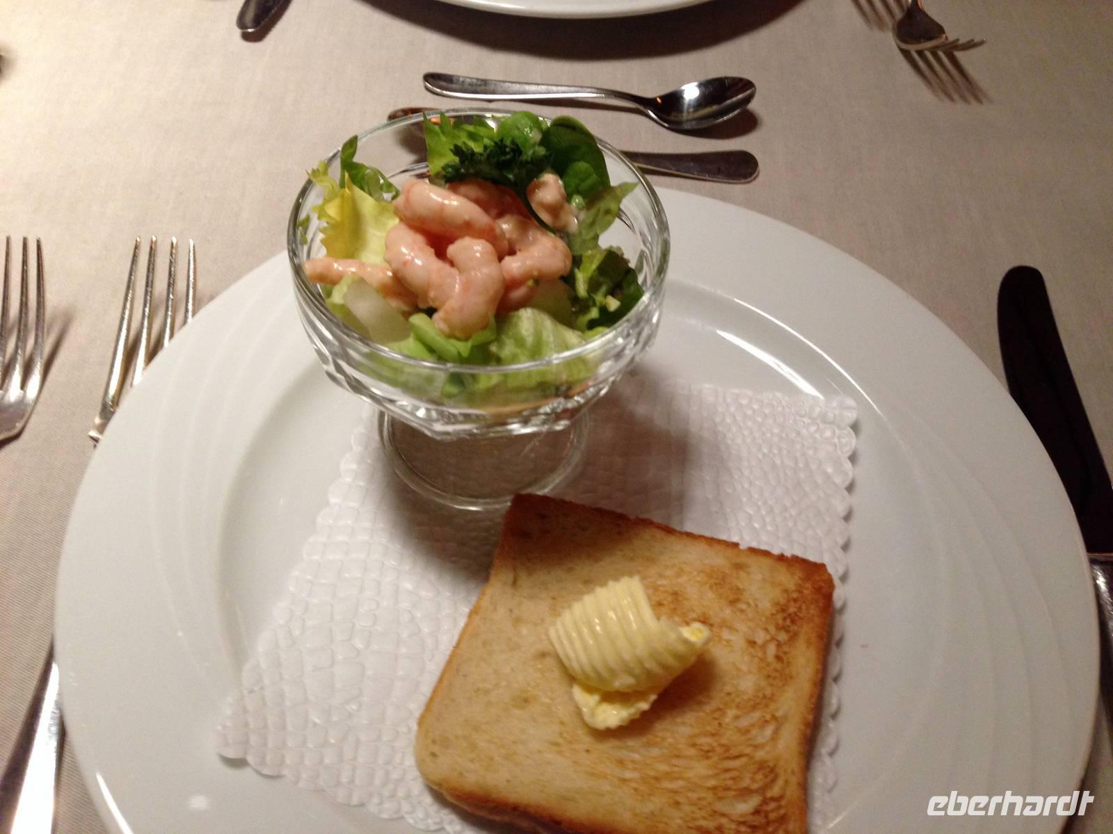 Ein Sieben-Gänge-Menü und ein Alleinunterhalter mit angenehmer Stimme begleiten uns bis Mitternacht. Mit einem Glas Sekt stoßen wir auf das neue Jahr an.