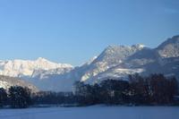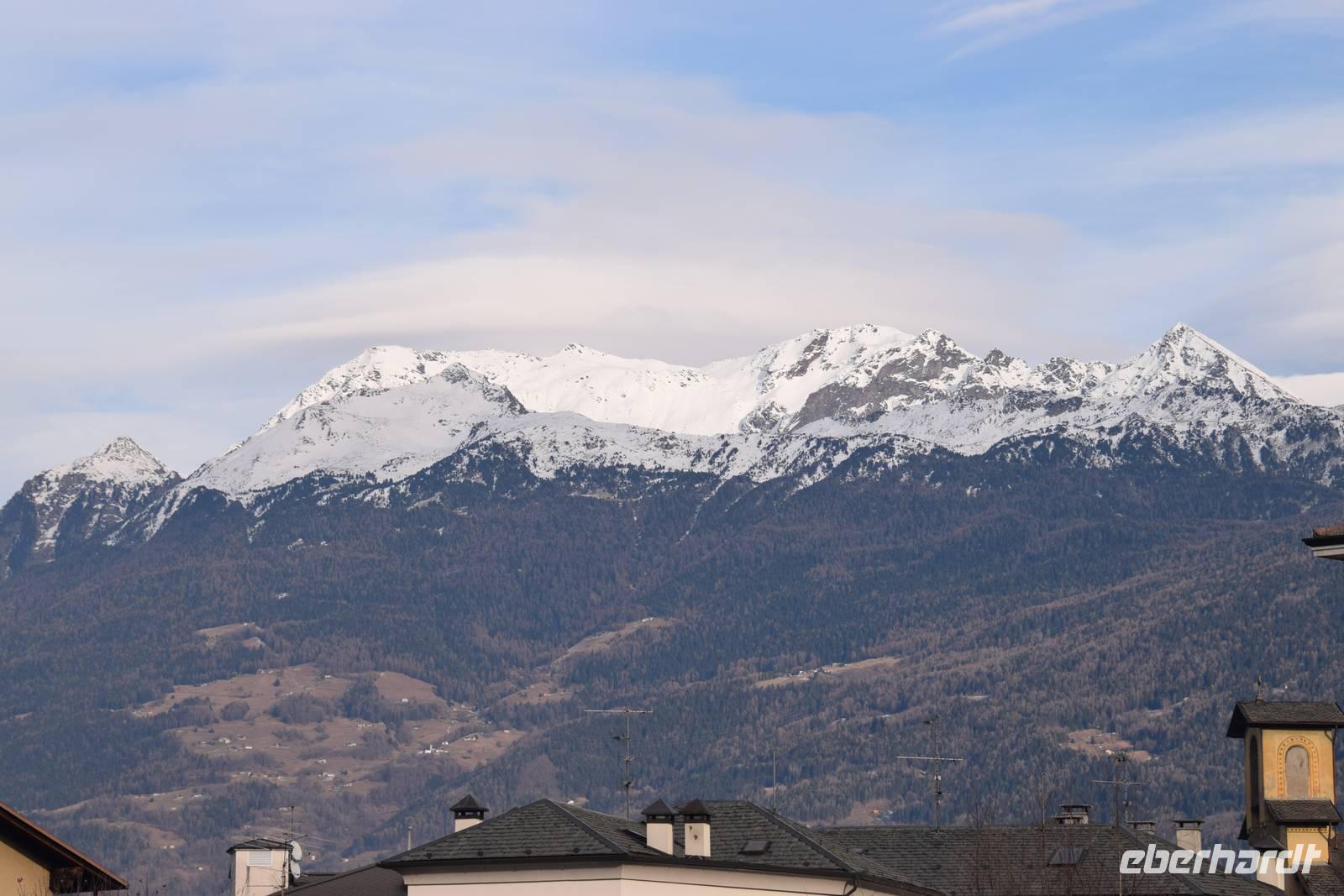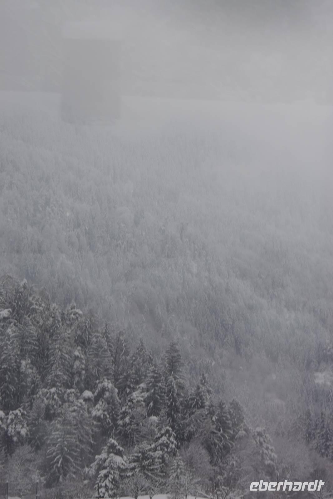 Nach dem Frühstück verabschieden wir uns von unserem gastfreundlichen Hotel und treten unsere Heimreise an. Das schöne Wetter scheint vorbei zu sein. Nebelbänke liegen im Tal. Dann aber eröffnet sich nochmals ein Blick auf die Schweizer Berge.