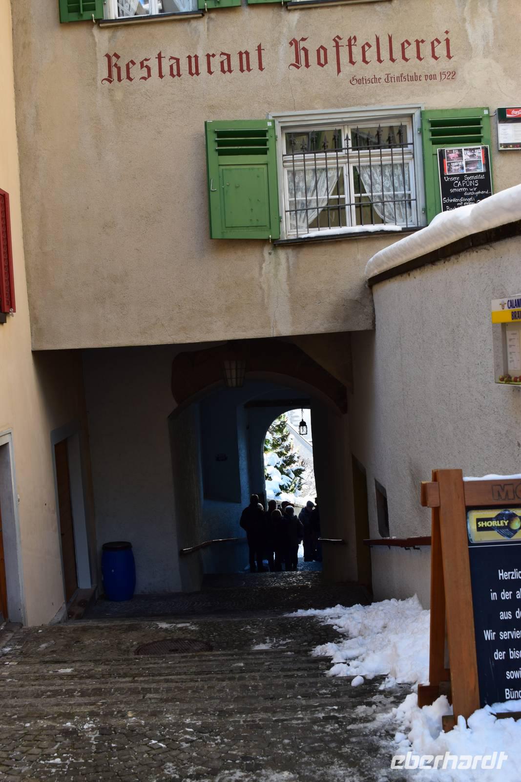 Am ersten Tag des neuen Jahres gibt es das Frühstück erst ab 8.00 Uhr. Wir haben genügend Zeit, denn erst um 10.00 Uhr fahren wir nach Chur. Dort erwarten uns zwei ausgezeichnete Stadtführerinnen zum Stadtrundgang.