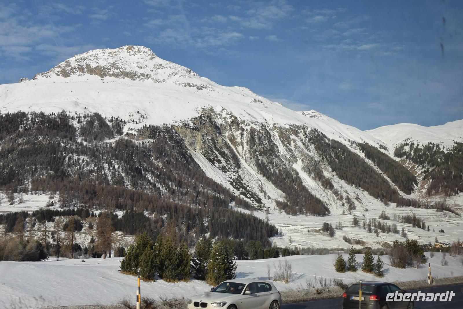 Nachmittags legen wir noch einen Stopp in St. Moritz ein. Die Preise in den Schaufenstern lassen uns erahnen, welches Klientel hier verkehrt.