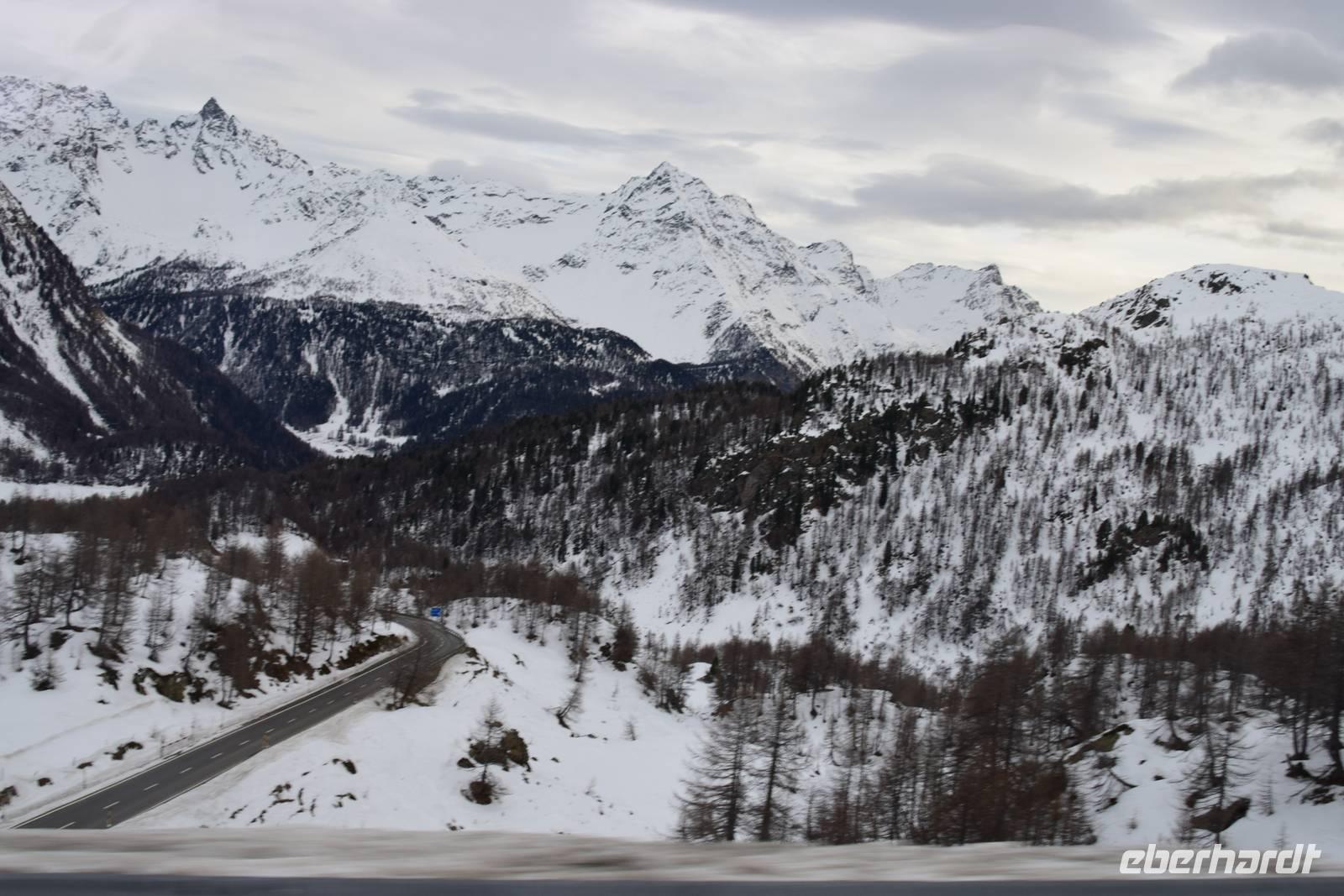 Unser Busfahrer Frank fährt uns über den Bernina-Pass und über den Julier-Pass wieder zum Hotel zurück.