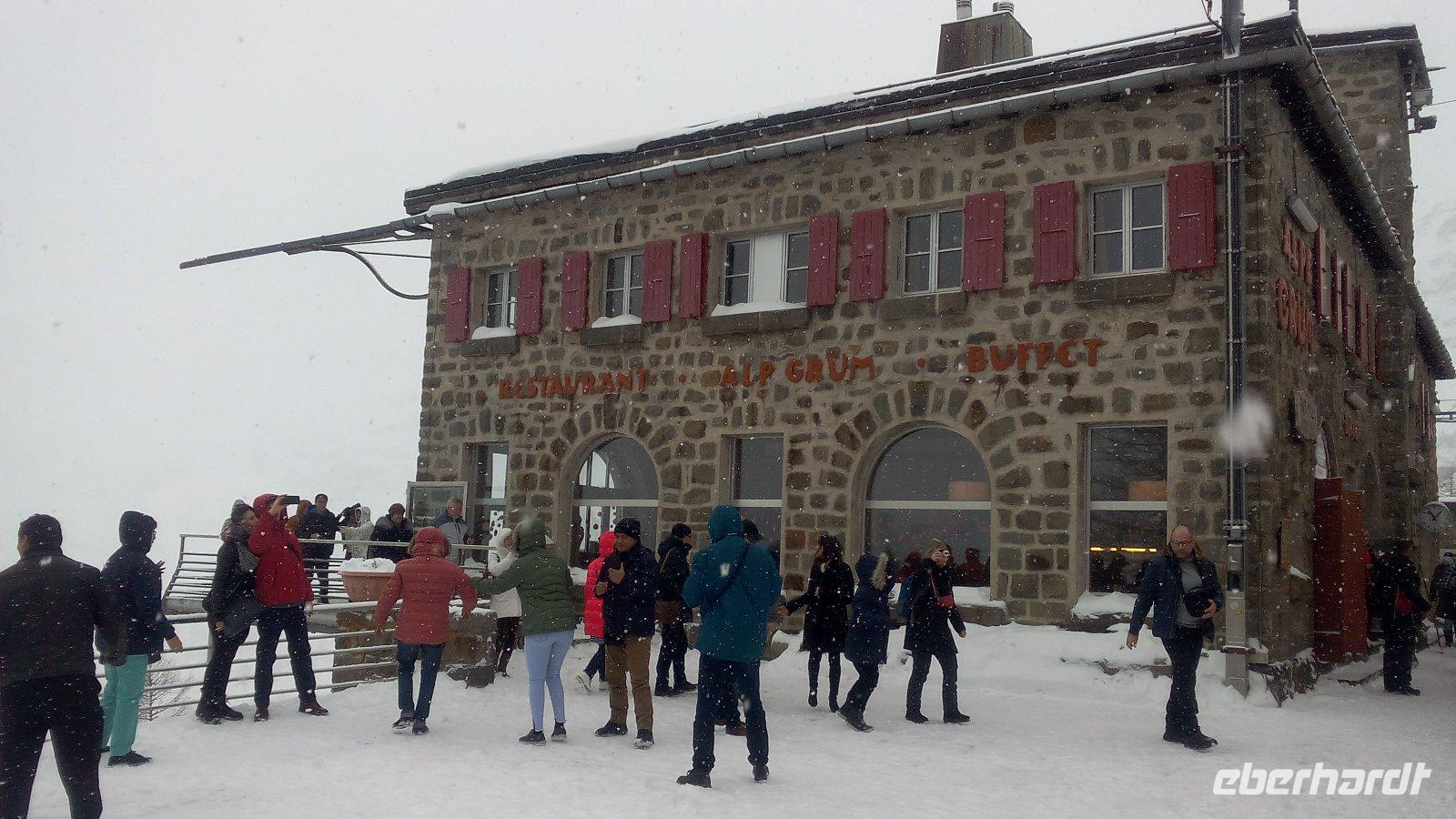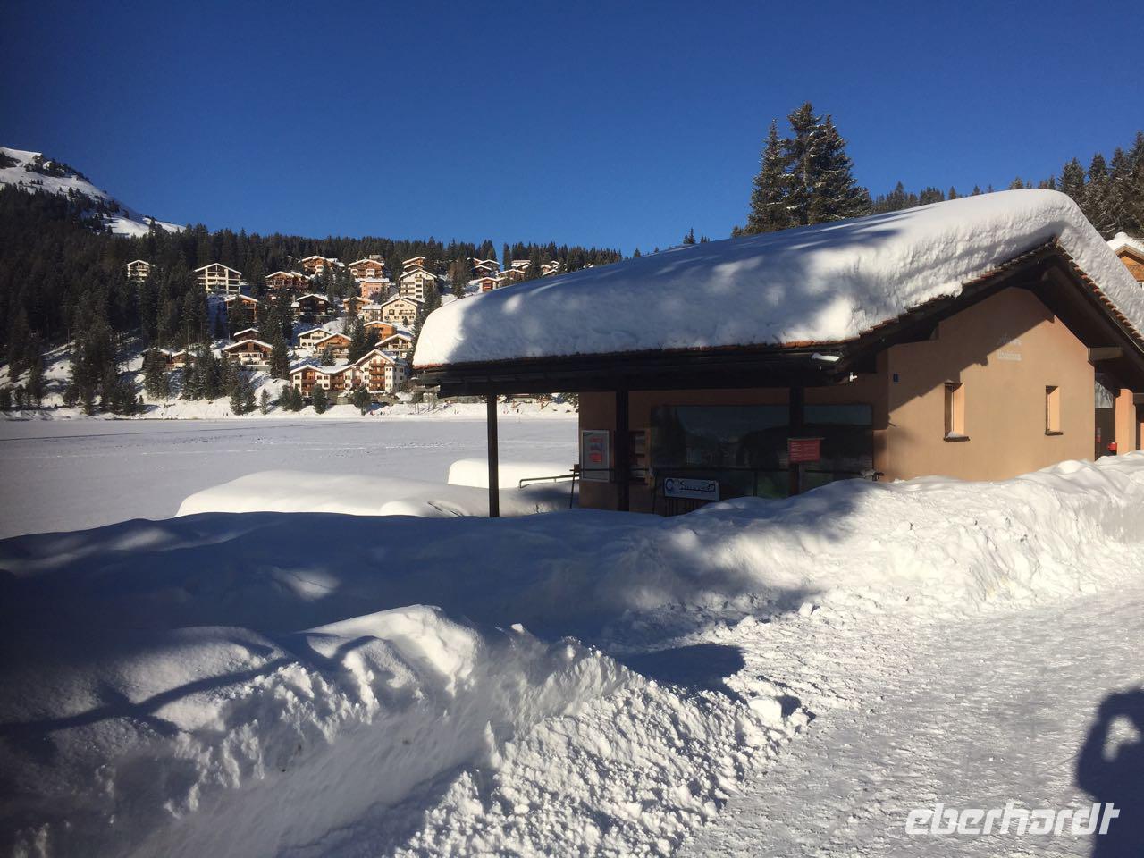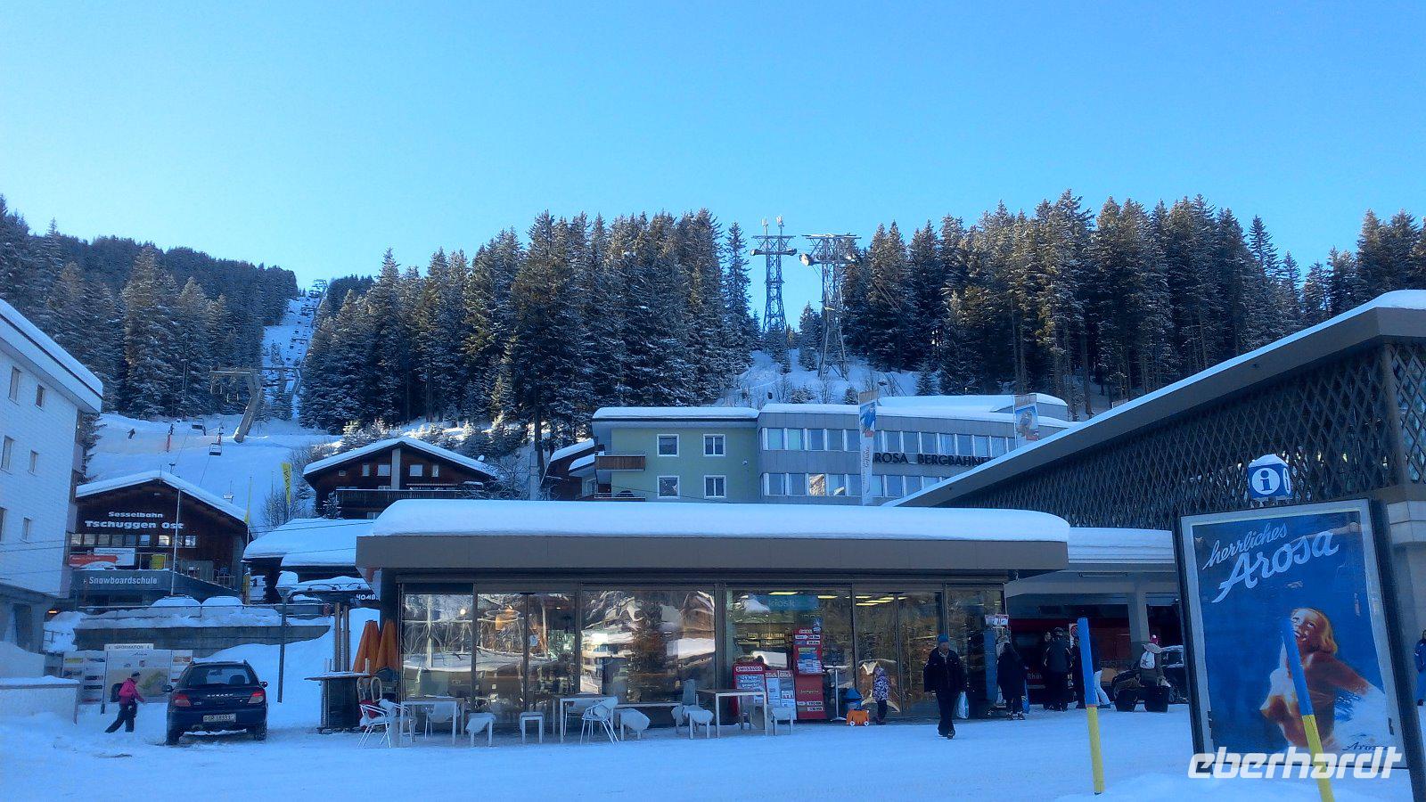 Nach rund einer Stunde Fahrzeit sind wir in Arosa angekommen. Bei Schneeflockenwirbel haben wir mehrere Möglichkeiten unsere Zeit zu gestalten. Ein Teil der Gruppe fährt auf das