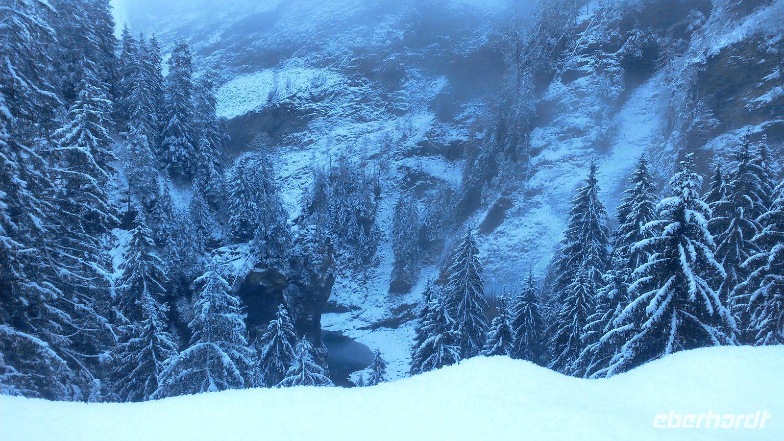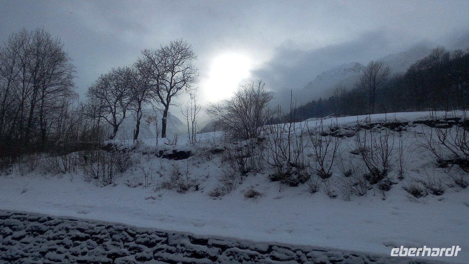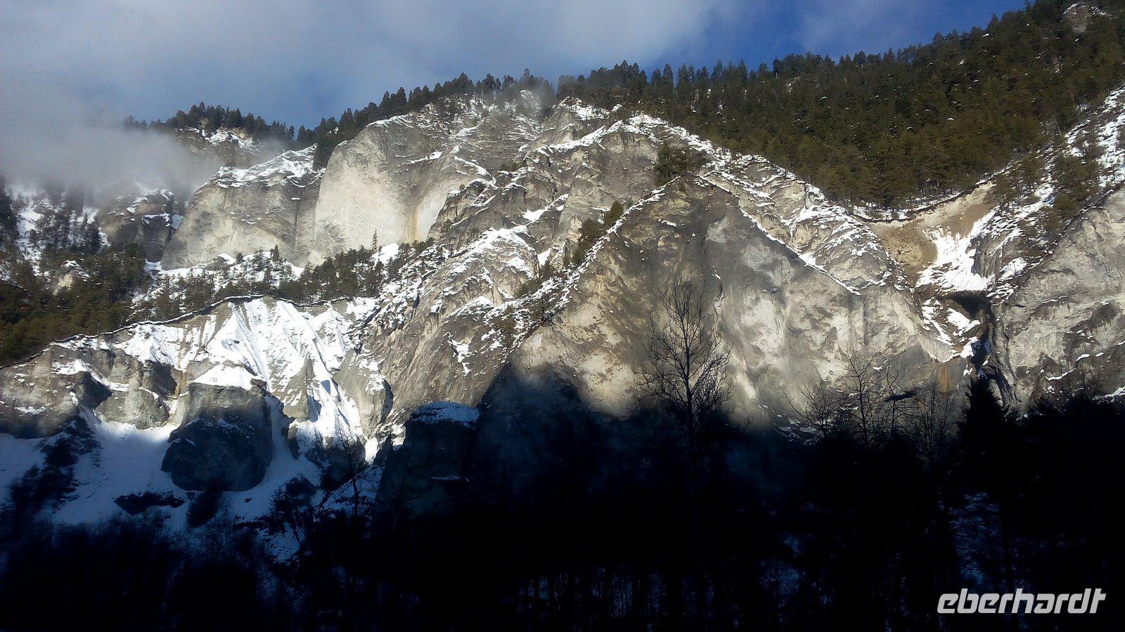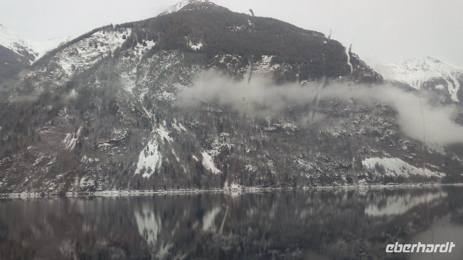 In Reichenau haben wir den Blick auf den Zusammenfluss des Hinter- und Vorderrheins. Nach den lieblichen Tälern und winterlichen Landschaften Graubündens wird es jetzt spannend. In der Rheinschlucht sehen wir den „Grand Canyon der Schweiz" bei sehr guter Sicht.