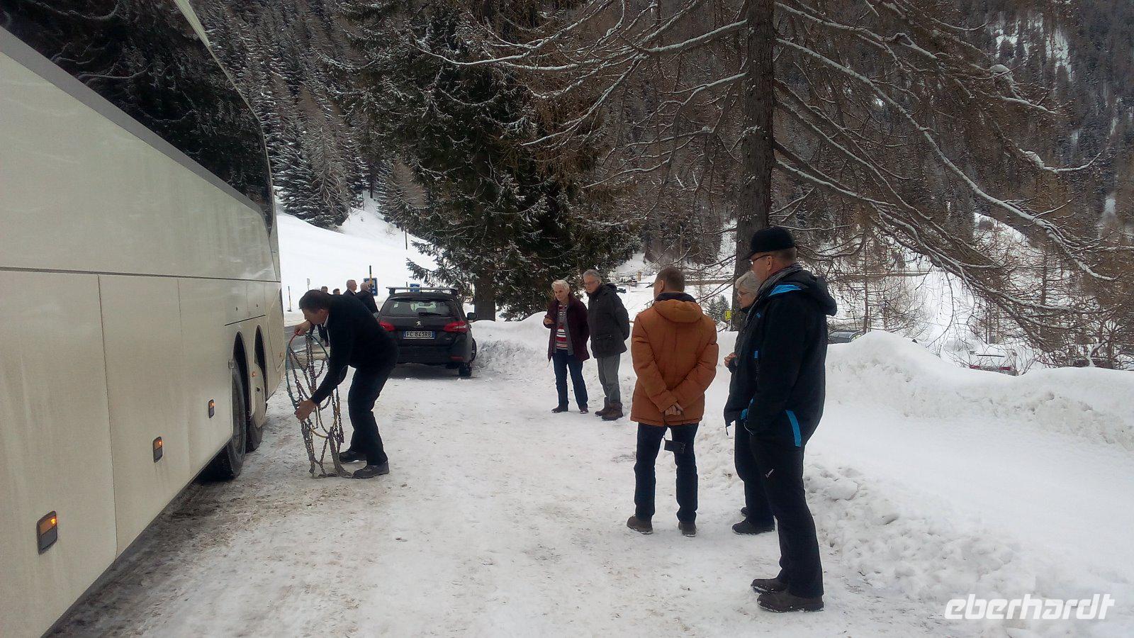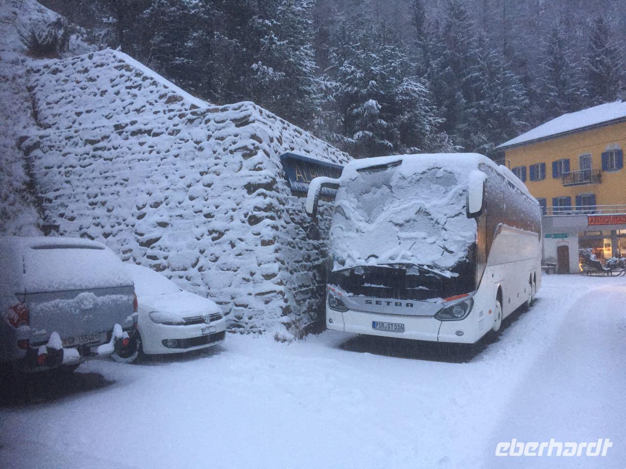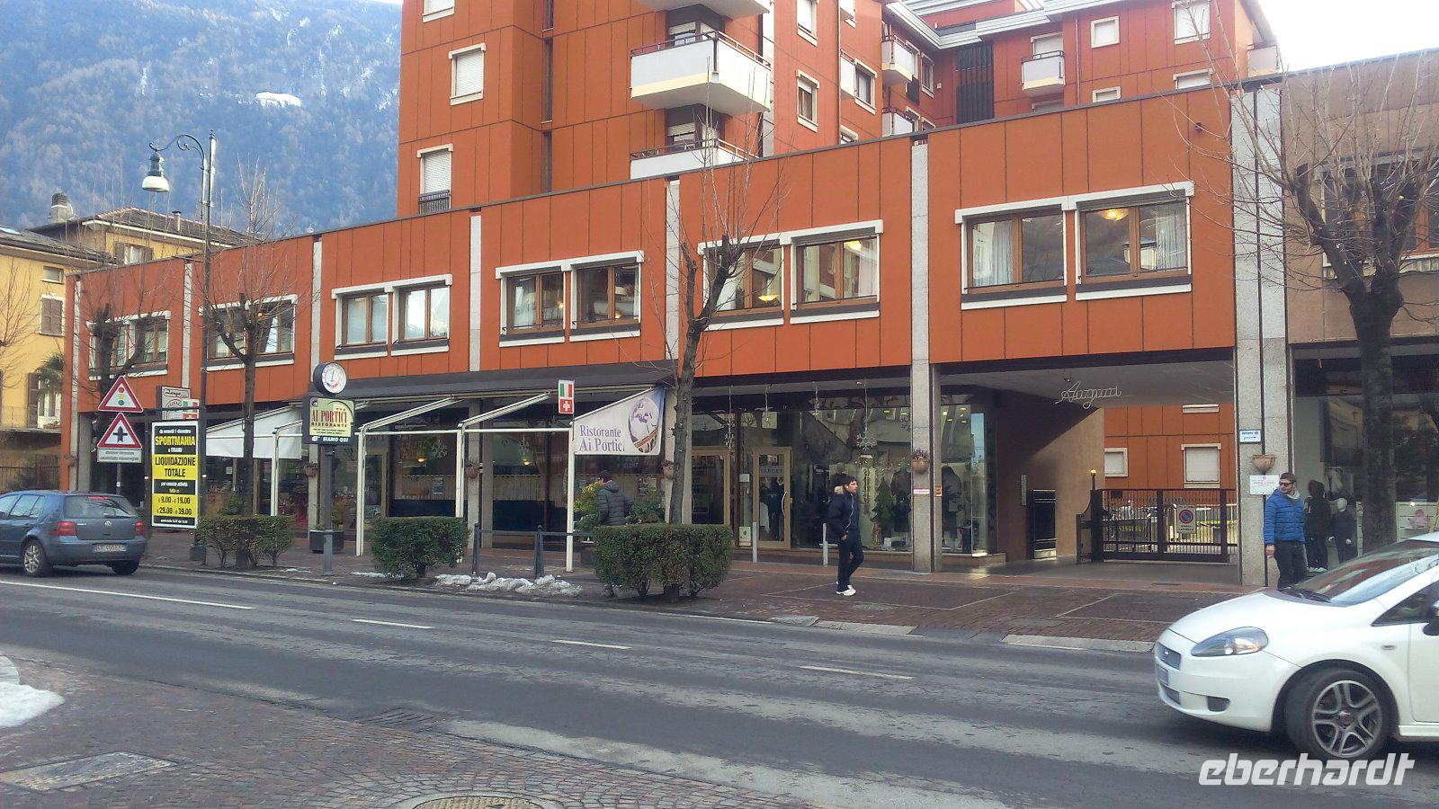 In Tirano angekommen probieren wir erst einmal die italienische Küche im Restaurant „Al Portici" und die ist gut. Natürlich auch der italienische Wein. Freude kommt auf, als endlich auch Jörg die Strecke durch den Schnee geschafft hat und noch rechtzeitig zum Essen im Restaurant eintrifft.