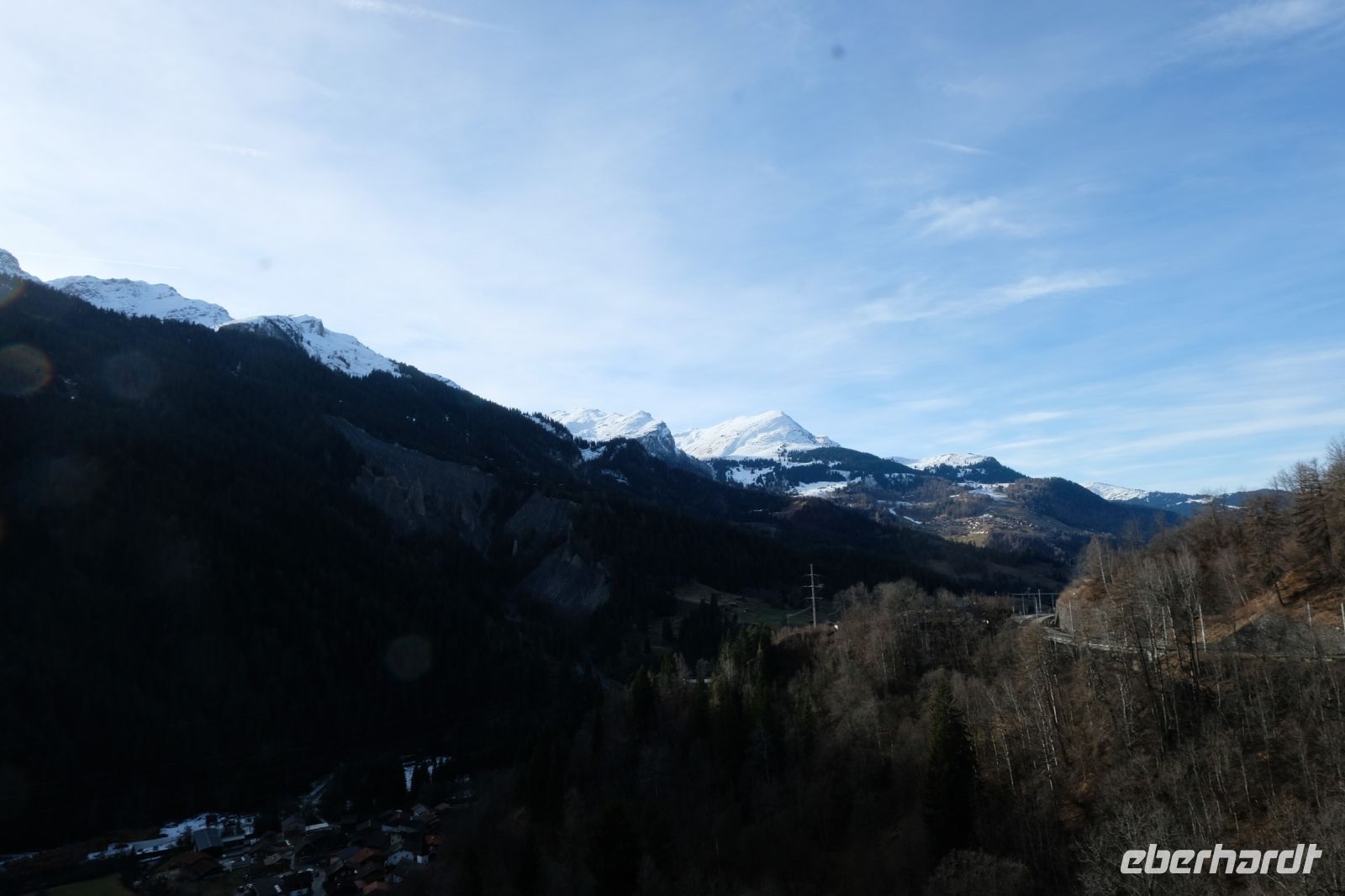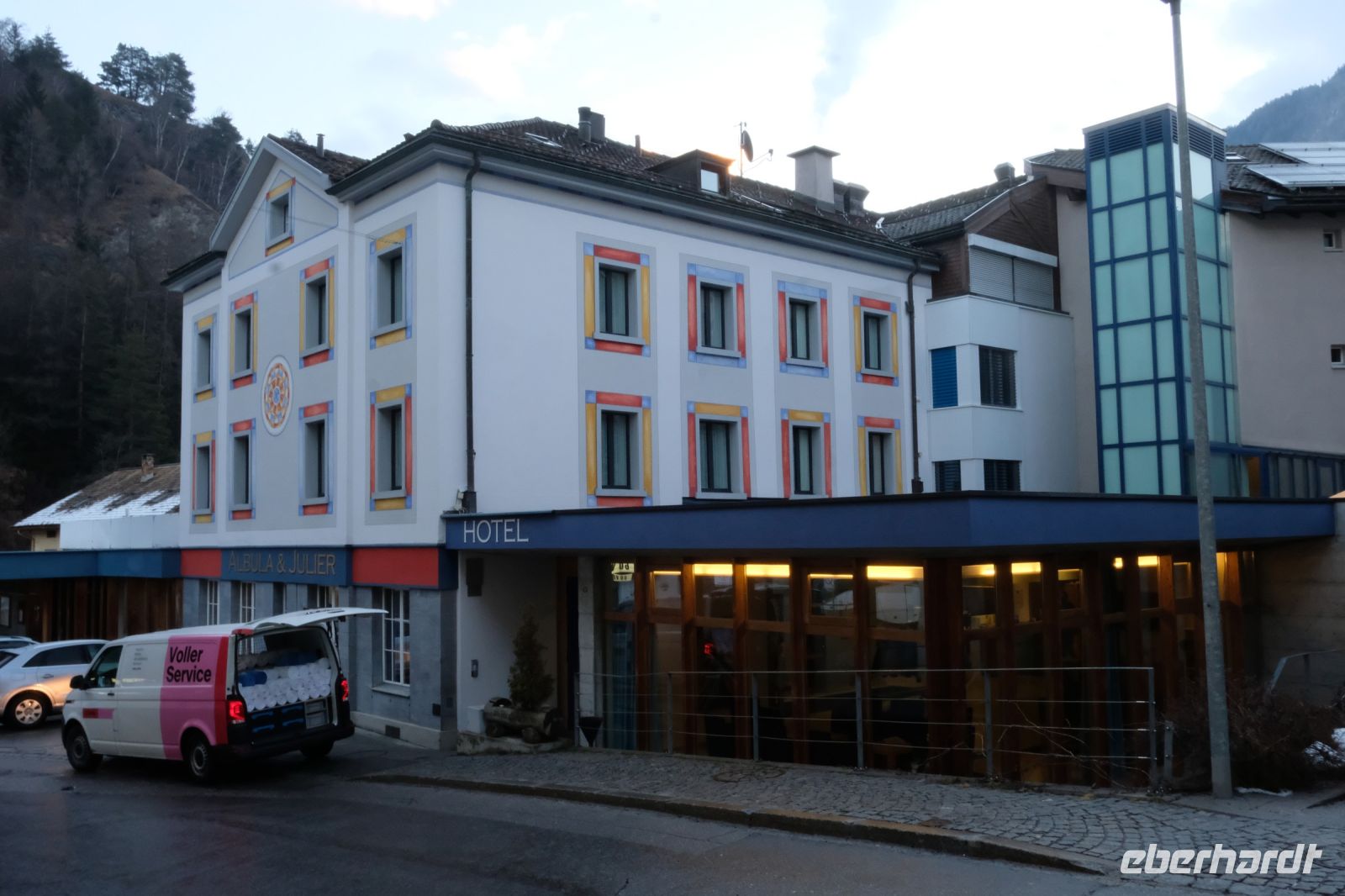 6.00 Uhr am Morgen starteten 17 reiselustige Gäste vom Flughafen Dresden zu einer Silvesterreise mit den Schweizer Bahnen. Unsere Fahrt führte uns über Nürnberg, Ulm, Lindau vorbei am Fürstentum Lichtenstein direkt nach Tiefencastel. Obwohl der Jahreswechsel bevorstand waren die Autobahnen verhältnismäßig leer, und ohne große Unterbrechungen erreichten wir unser Ziel am späten Nachmittag. Das Hotel Albula & Julier erwartete uns schon und so konnten wir unsere Zimmer für die nächsten 4 Nächte einrichten. Am Abend trafen wir uns zu einem schmackhaftem 4 -Gänge-Menü im Restaurant. Nach einem langen Anreisetag war die Nachtruhe sehr willkommen.
