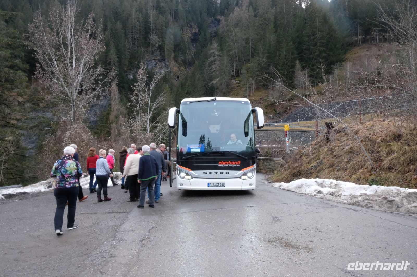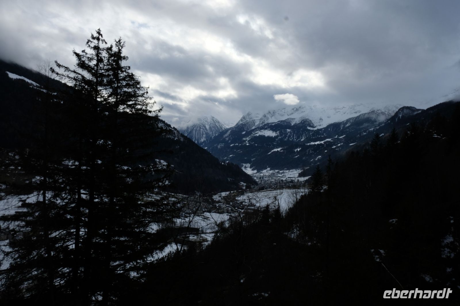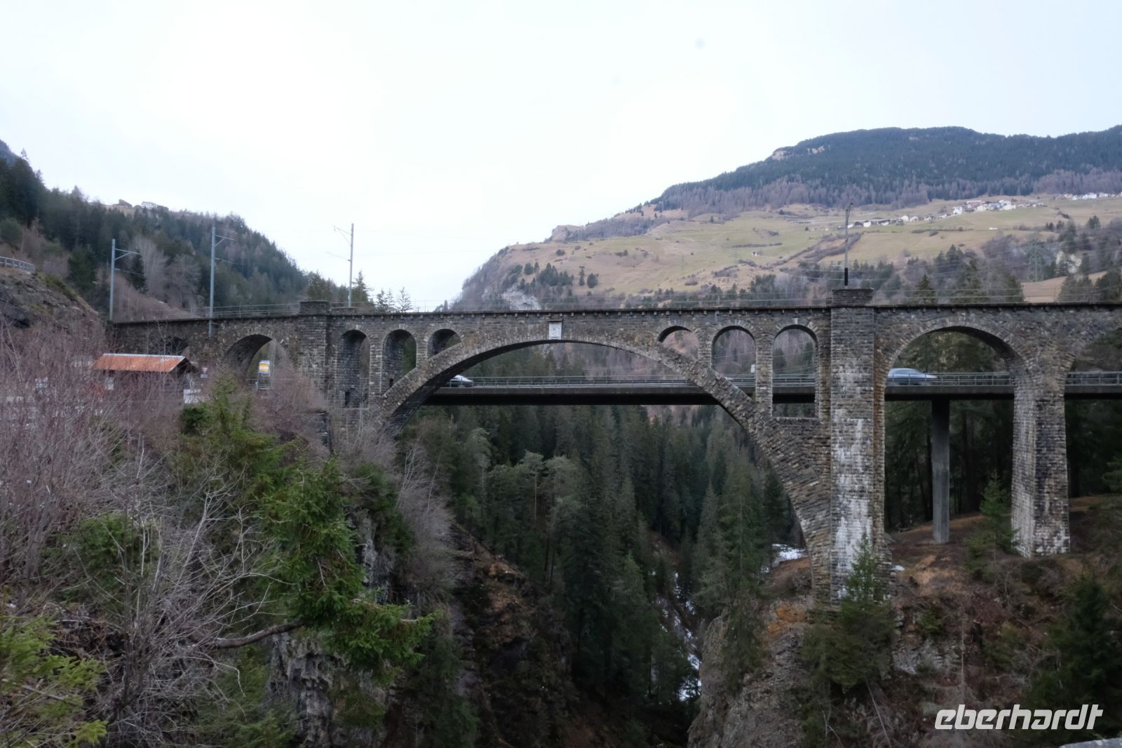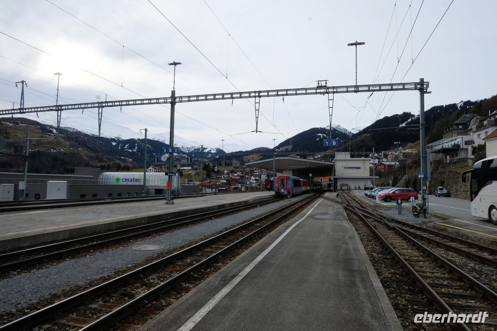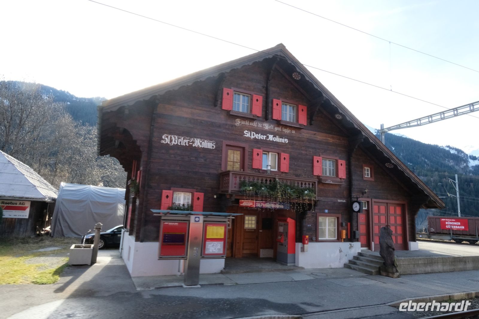 Nach dem Frühstück unternahmen wir einen kleinen Spaziergang zum nahegelegenen Bahnhof Tiefencastel. Dort angekommen fuhren wir mit dem Bernina-Express die legendäre Bahnstrecke bis zum Endpunkt in Tirano. Vorbei an Pontresina, dem immer kleiner werdenden Morteratschgletscher erreichten wir Alp Grüm. Hier hielt der Bernina Express länger und wir hatten Gelegenheit, auszusteigen und zu fotografieren. Leider war der Nebel hier oben so stark, sodass wir nichts sahen. Danach ging es wieder bergab, und der Nebel verzog sich. Am Kreisviadukt in Brusio erlebten wir die hohe Kunst der Eisenbahntechnik, denn hier ermöglicht das angelegte Viadukt eine künstliche Streckenausweitung auf engsten Raum, damit die Bahn den Höhenunterschied meistern kann. Schnell ging es über die schweizerisch-italienische Grenze und kurz danach erreichten wir Tirano. Leider lädt dieser Ort im Winter nicht zum Verweilen ein. Unser Busfahrer Daniel wartete bereits, und so konnten wir sofort in Richtung St. Moritz zurückfahren. Der Nebel nahm wieder zu und so hatten wir auf dem Bernina-Pass zwar keine Sicht, aber der Bordservice kam zum Einsatz. In St Moritz konnten wir uns 2 Stunden Zeit nehmen um den Ort ein wenig kennenzulernen. So kurz vor Silvester waren die Einkaufsstraßen und die Cafes gut gefüllt. Die Weihnachtsdekoration war in der Abendstimmung besonders zu genießen. Zurück über der Julierpass, ging die Fahrt zum Hotel. Zum Abendessen wurde uns wieder ein vorzügliches 4-Gang-Menü von freundlichen Mitarbeitern gereicht, was den gelungenen Tag abrundete.