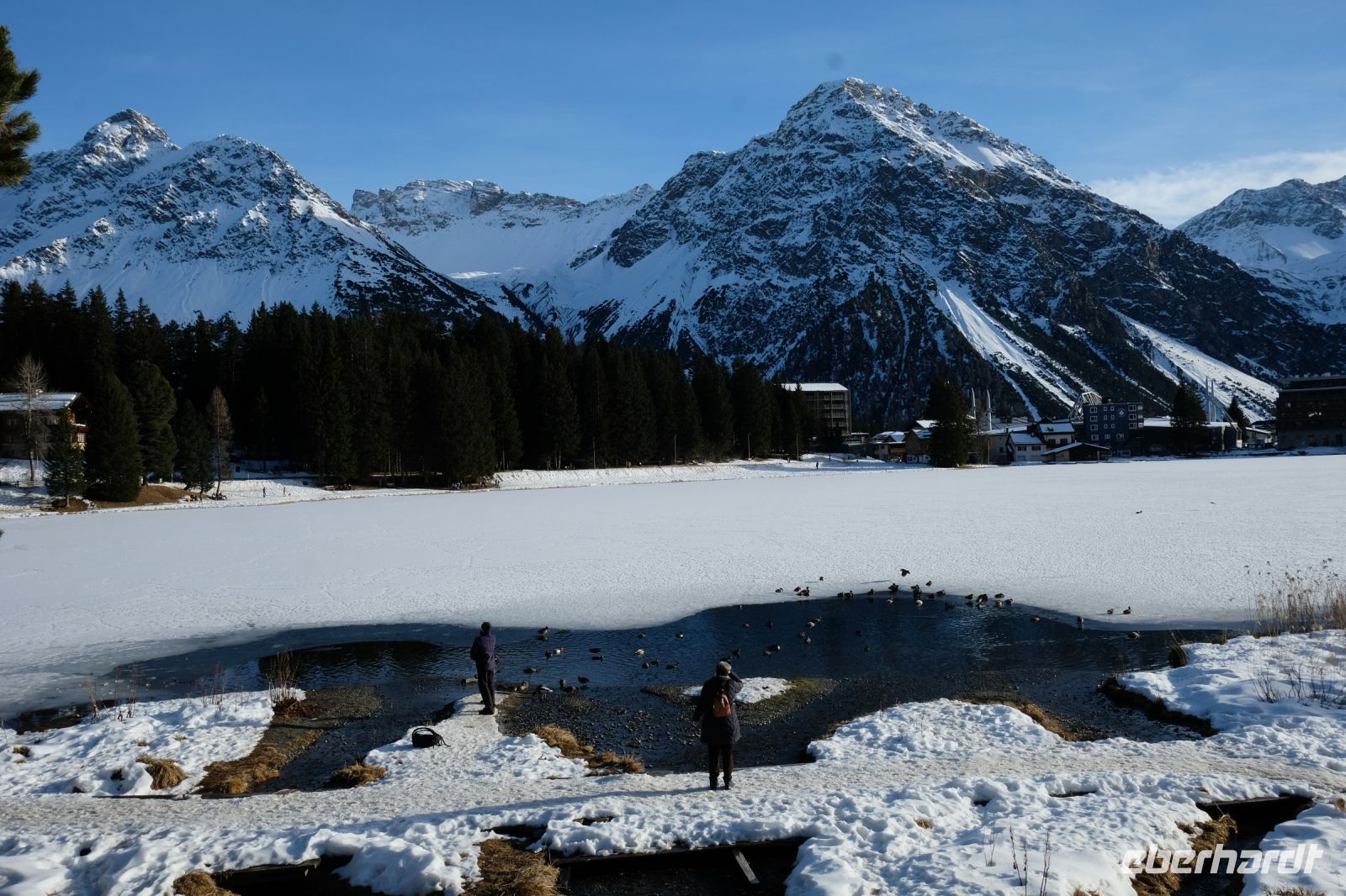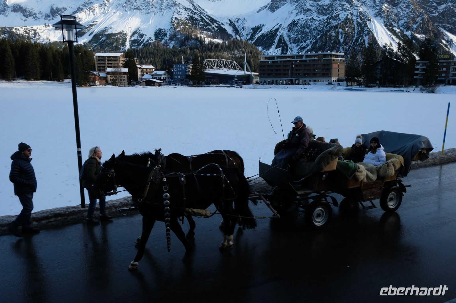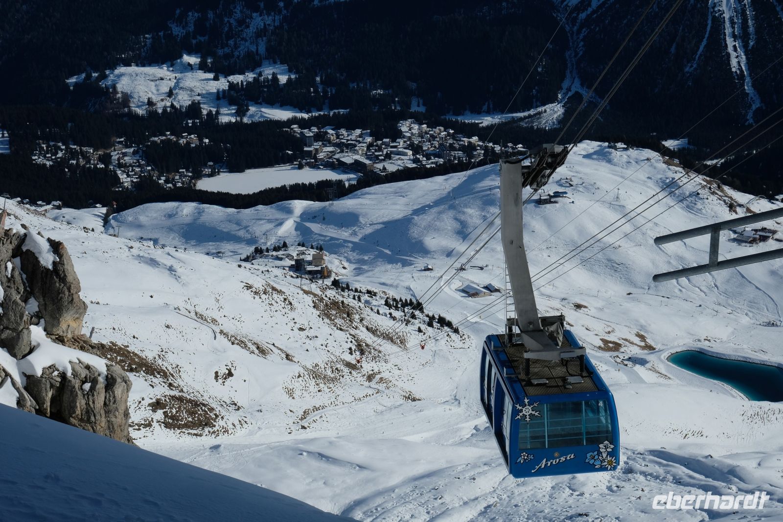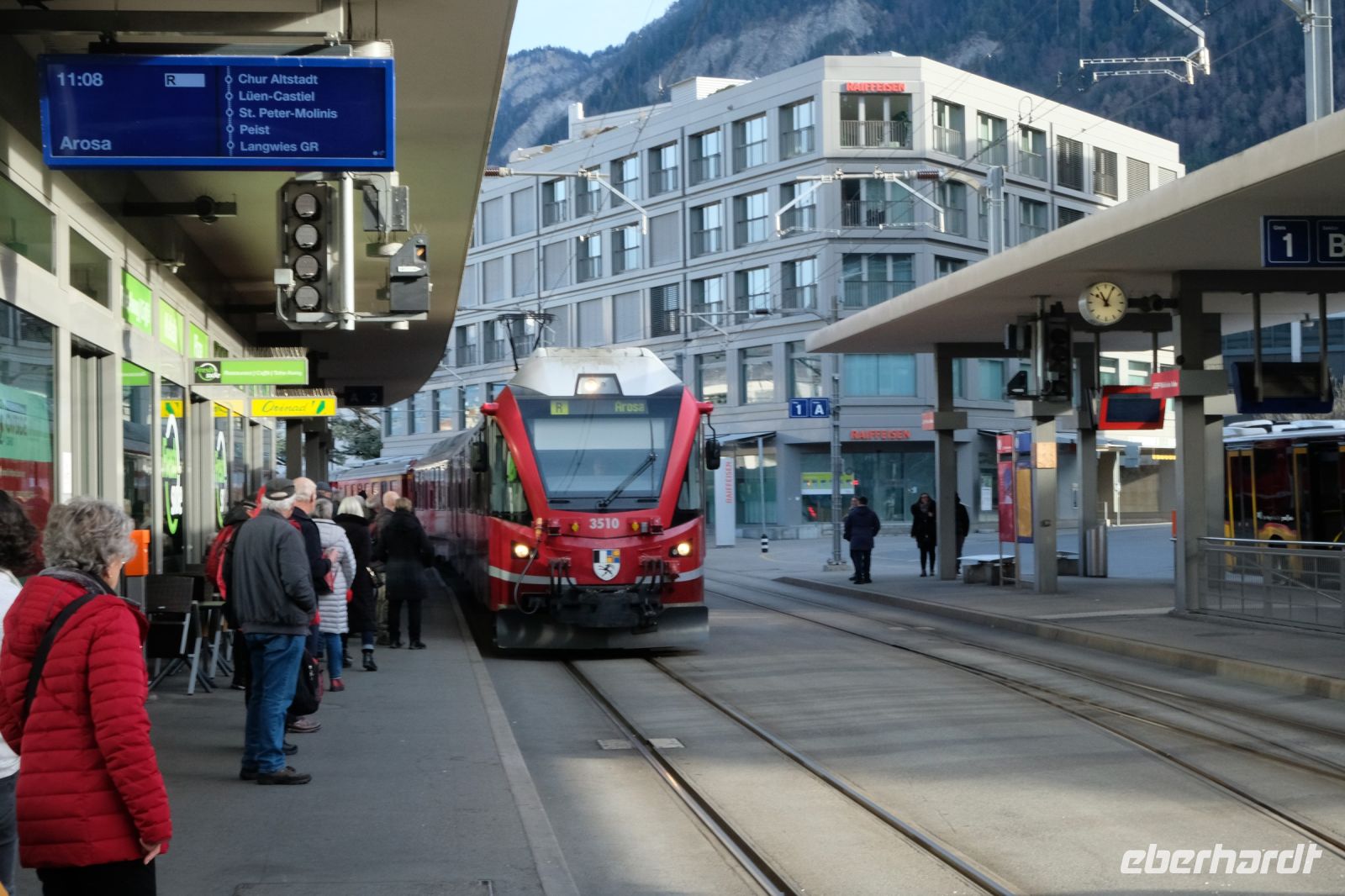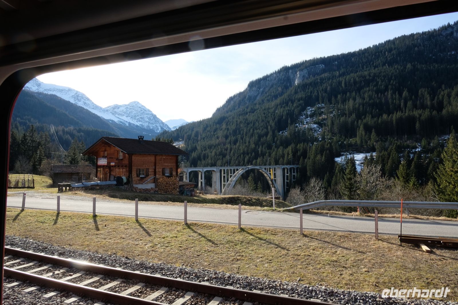 Nach unserem Frühstück ging unsere Fahrt heute mit dem Bus nach Chur. Pünktlich fuhren wir mit der Arosa-Bahn bis nach Arosa. Gemütlich wie eine Straßenbahn fuhr dieser Zug durch Chur, der Hauptstadt von Graubünden. Doch schon bald war es vorbei mit dem "Stadtbummel auf Schienen". An der Stadtgrenze wandelte sich die Arosa-Bahn, die bis 2007 Arosa-Express hieß, zur Gebirgsbahn und wandte sich durchs wilde Schanfigger Tal hinauf nach Arosa. Nur zweieinhalb Jahre hat der Bau der knapp 27 km langen Strecke gedauert, die im Jahre 1914 eröffnet wurde. Ein bedeutender Ort auf dieser Fahrt ist Langwies. Das Langwieser Viadukt ist 284 m lang und 62 m hoch. Es zählt es zu den bekanntesten Brücken der Schweiz. Nach einer einstündigen Fahrt erreichten wir den Bahnhof von Arosa. Alle Gäste fuhren sofort mit der Kabinenbahn auf das Weisshorn. Dort oben, auf 2653 m, erwartete uns purer Sonnenschein mit einem atemberaubenden Blick auf viele Berge in der Umgebung. Unsere Reisegruppe genoss den Ausblick und die wärmenden Strahlen der Sonne. Zurück zum Tal machten einige Gäste noch Halt auf der Mittelstation, und einen Braunbären im „Bärenland“ konnten sogar einige Gäste sehen. Leider war im Tal rund um den See kaum noch Schnee zu sehen. Den Tagesabschluss bildete wieder das mit viel Liebe und frisch zubereitete 4-Gang-Menü. Nach diesem ereignisreichen Tag war die Bettschwere bei allen schnell erreicht.