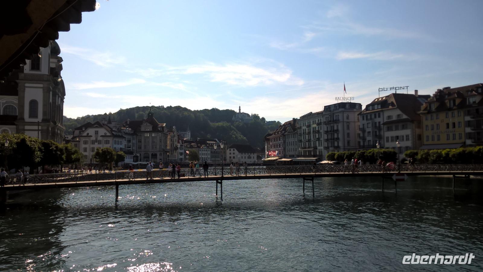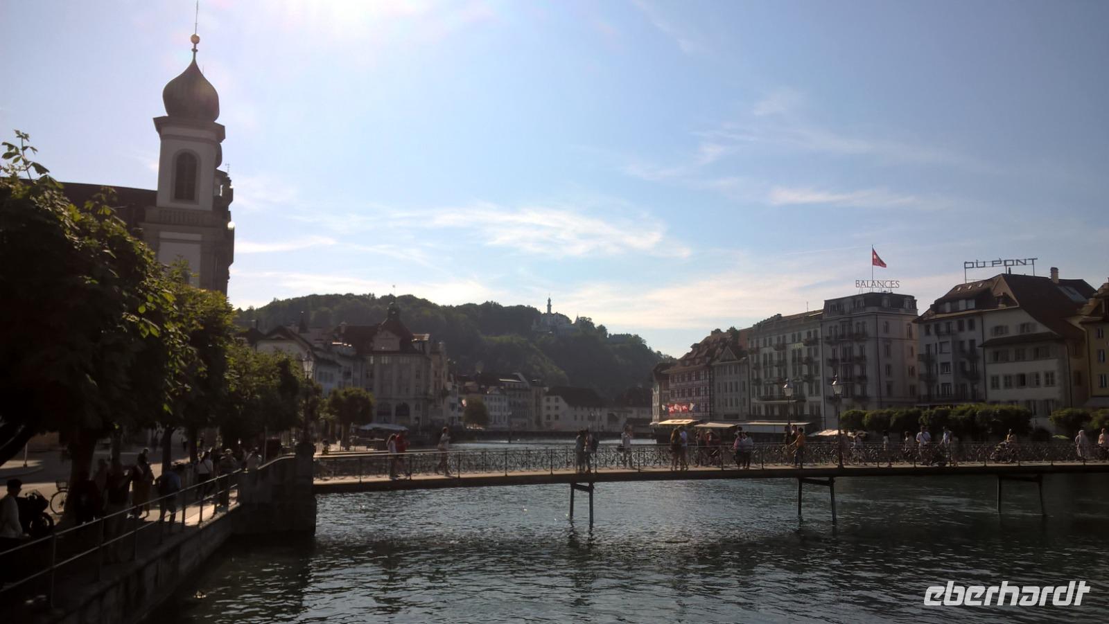 Nach dem Frühstück begeben wir uns gemeinsam auf den Weg in Richtung Bahnhof. Heute führt unser Weg bereits weiter in Richtung Luzern. Mit dem Zug fahren wir von St. Gallen über Zürich entlang des hübschen Thurgaus bishin nach Luzern. Auf dem Weg von Zürich nach Luzern zeigen sich uns bereits die ersten Schweizer Gipfel. Über dem Zugersee erblicken wir die Rigi und auch den Pilatus. Luzern ist wohl eine der hübschesten Städte der Schweiz. Mit unserer Ankunft in der Stadt am Vierwaldstättersee begeben wir uns direkt auf Stadtrundgang. Die Stadt zu beiden Seiten der Reuss bietet viele Sehenswürdigkeiten. Wir lernen die Altstadt mit der Jesuitenkirche, dem Weinmarkt, dem Kornmarkt und der berühmten Kapellbrücke kennen. Der Nachmittag steht jedem von uns zu einem individuellen Bummel durch die schmalen Gassen von Luzern zur Verfügung. Einige nutzen auch das schöne Wetter, um etwas Zeit am See zu verbringen. Am Abend treffen wir uns im hoteleigenen Restaurant und lassen den Tag mit Blick auf die Kappellbrücke ausklingen.