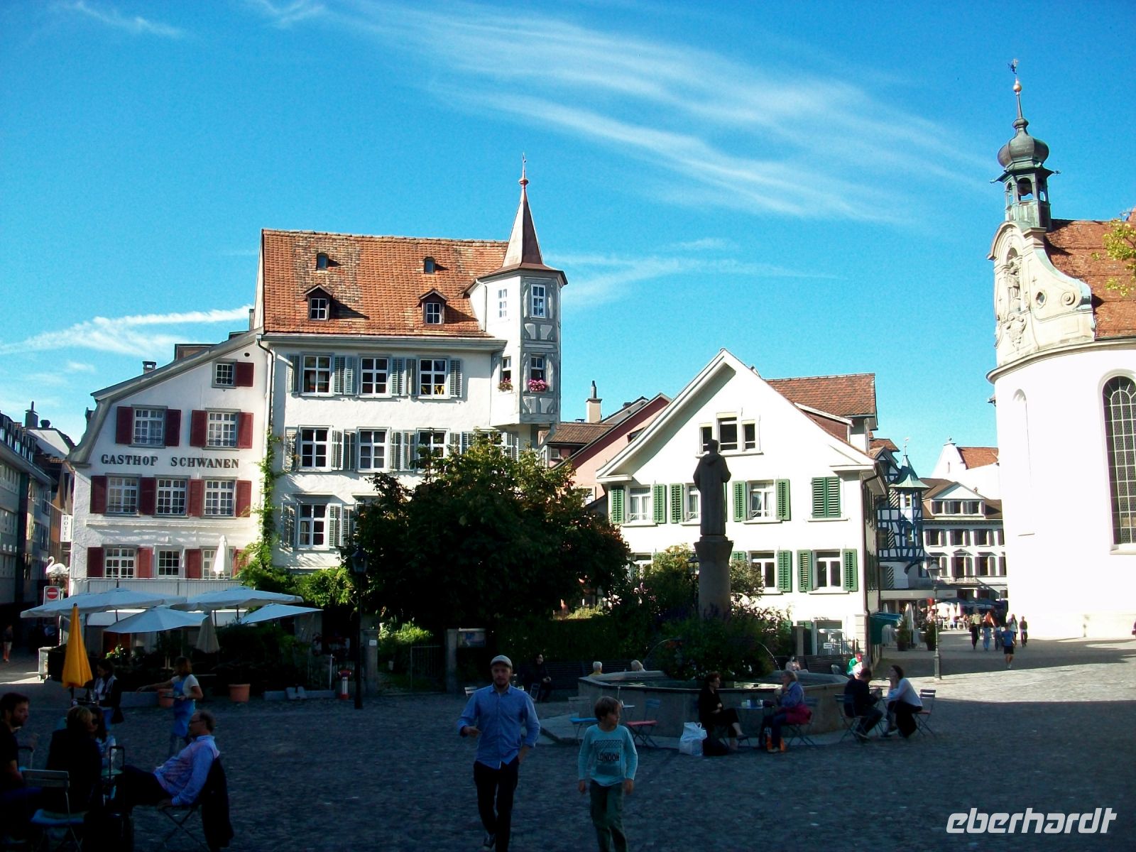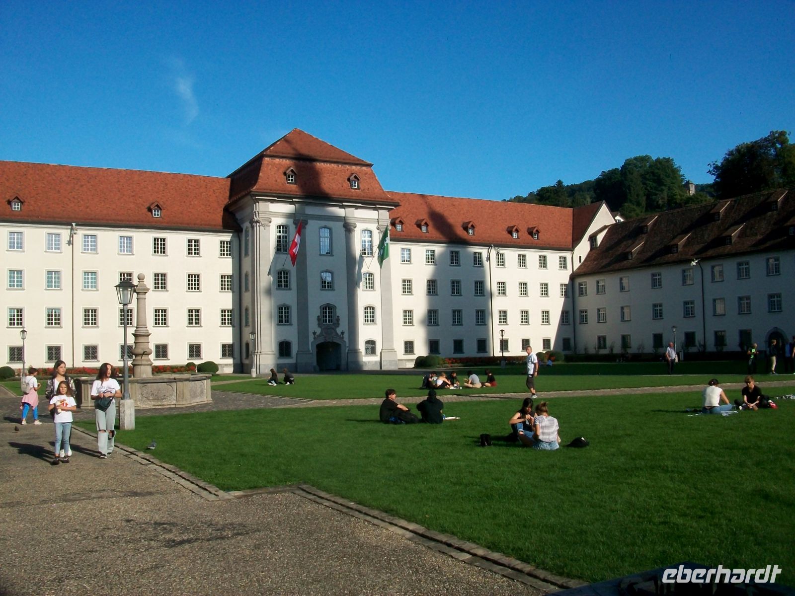 Nun heißt es warten; schließlich wollen wir hier unsere Fluggruppe zusammenführen was uns dann auch ganz gut gelingt. Ein kleiner Imbiss am Flughafen, dann wartet schon die erste Zugfahrt auf uns. Zunächst im Tunnel, dann aber mit Blick auf die grüne Landschaft, so verläuft unsere Fahrt im Voralpenbereich in nordöstlicher Richtung. Durch die historische Landschaft des Toggenburgs geht es in Richtung Sankt Gallen, hier haben wir nun unser heutiges Ziel erreicht. Noch liegt ein kleiner Fußweg zum Hotel vor uns; hier, vor den Toren der Altstadt, können wir auch die Gäste aus München begrüßen. Am Nachmittag schauen wir uns bei einer Stadtführung das historische Sankt Gallen mit all seinen gepflegten Häusern, malerischen Plätzen und urigen Gassen an.