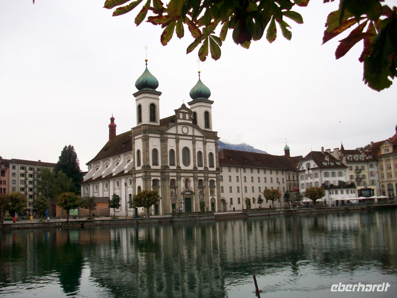 19.8.2021. Der Morgen beginnt zunächst noch mit etwas Sonne, die Prognose für heute sieht aber eher trüb aus. Aber das hindert uns nicht das geplante Programm durchzuführen; gegen halb zehn macht sich unsere nun komplette Reisegruppe zum Bahnhof auf, die heutige Zugfahrt wird uns in die Zentralschweiz bringen. Die Schweizer Bahnen sind pünktlich und verlässlich, so auch der Zug nach Luzern. Da wir uns hier noch nicht direkt in den Alpen befinden, heißt diese Verbindung auch der „Voralpenexpress“ und der Name ist Programm. Schnell haben wir die Häuser von Sankt Gallen verlassen; das schöne Land zieht an den Fenstern des Zuges schnell vorbei und wir genießen die Fahrt in den weichen Sitzen. Dann kommt der Zürichsee in Sicht; an seinem Ufer entlang gelangen wir nach Rapperswil, wenig später kreuzen wir den See über den Damm nach Pfäffikon um bald zum Vierwaldstätter See und zu unserem Ziel in Luzern zu gelangen. Leider hat Petrus schon während der Fahrt seine Schleusen geöffnet und er wird sie heute auch nicht mehr schließen. Dennoch, die geplante Stadtführung lassen wir uns nicht entgehen, und mit ihr lernen wir eine der schönsten und geschichtsträchtigen Orte der Schweiz kennen. Entlang der Reuss sehen wir uns Kapellbrücke, Jesuitenkirche und etwas später den historischen Stadtkern an; hier, an all den schönen Plätzen haben sich seinerzeit unter anderem schon Goethe und Wagner recht wohl gefühlt, so auch wir – wenn der Regen nicht wäre.