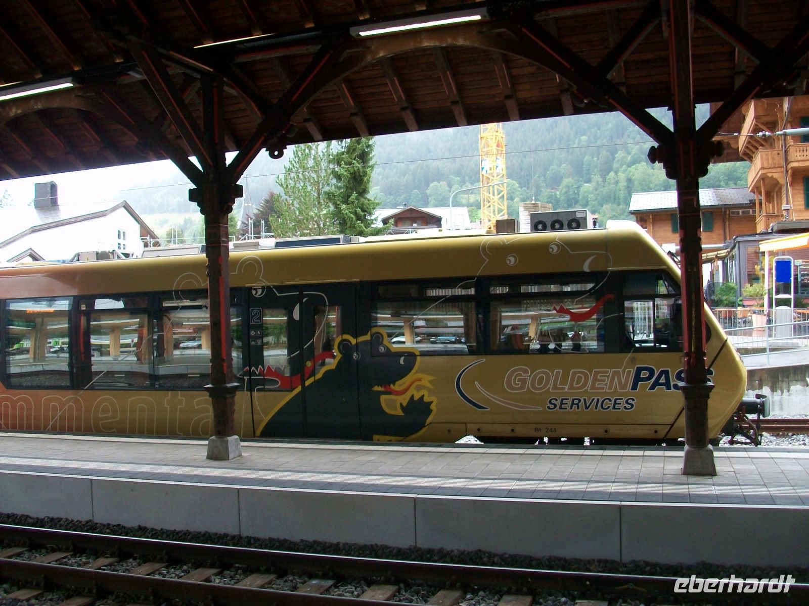 20.9.2021. Dunkle Wolken verdecken die Sonne, aber an diesem Vormittag bleibt es trocken. Nach dem der Kofferdienst unsere Sachen abgeholt hat gönnen wir uns noch etwas Zeit in Luzern und können diesmal trockenen Fußes durch die Stadt schlendern. Kurz nach elf aber sitzen wir im Zug der uns zunächst nach Interlaken bringen wird, in dieser ersten Etappe auf schmaler Spur. Schnell lassen wir Luzern hinter uns und vorbei am Pilatus, dem mächtigen Hausberg der Stadt, geht es noch ein Stück entlang des Vierwaldstätter Sees. Ein kleiner Aufstieg und wir rollen am Ufer des Sarner Sees in Richtung Giswil. Hinter dem Ort zeigt uns ein kleiner Ruck an dass wir nun mithilfe von Zahnrad und Zahnstange die Höhen erklimmen werden. Über den Brünigpass geht es hinunter in das Berner Oberland; schon von oben sehen wir einen Fluss der seine grünen Wasser dem Brienzer See zusendet – es ist die Aare. Steil steigen die Berge bei Meiringen an, so mancher Wasserfall donnert hier zu Tal und bald führt uns die Fahrt entlang des Brienzer Sees; Endstation ist zunächst der Ort Interlaken. Hier wechseln wir Spur und Zug; nach kurzem Aufenthalt geht es weiter entlang des Thuner Sees in Richtung Zweisimmen, einem weiteren Umstieg entgegen. Weiterhin malerisch verläuft die Fahrt durchs Simmental, leider bedeckt sich der Himmel immer mehr und es fängt wieder an zu regnen, schade.