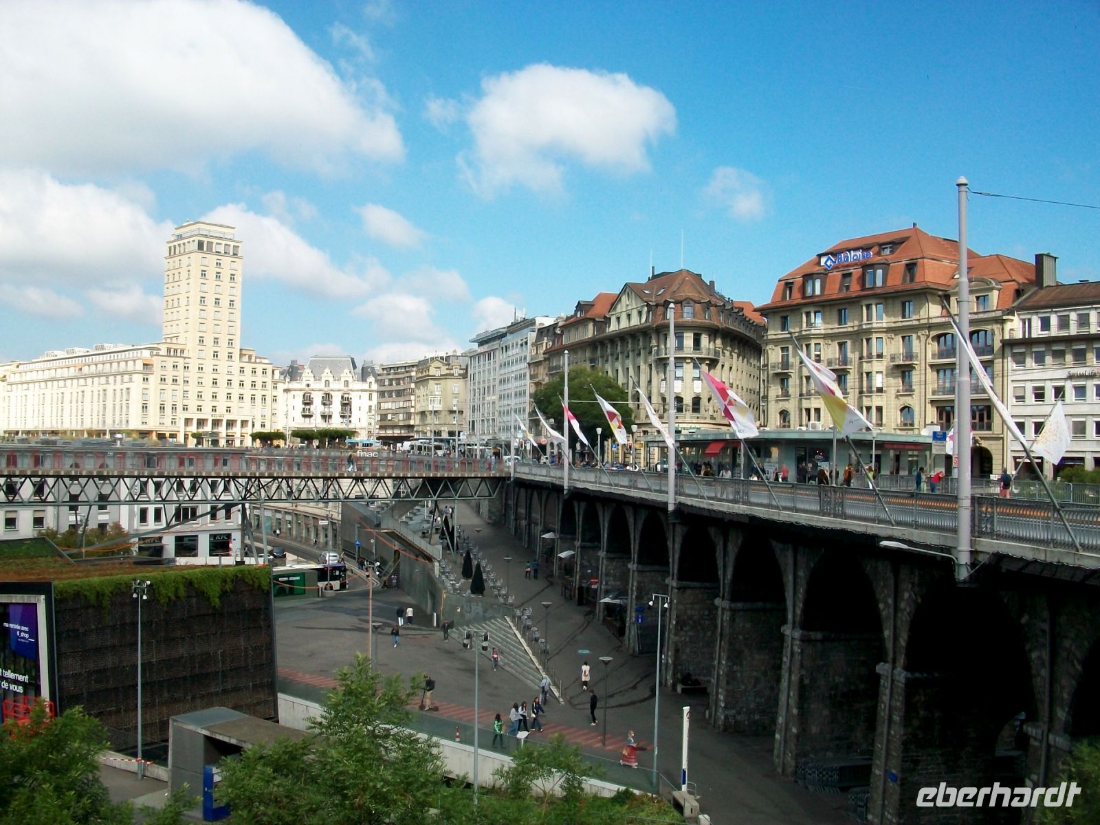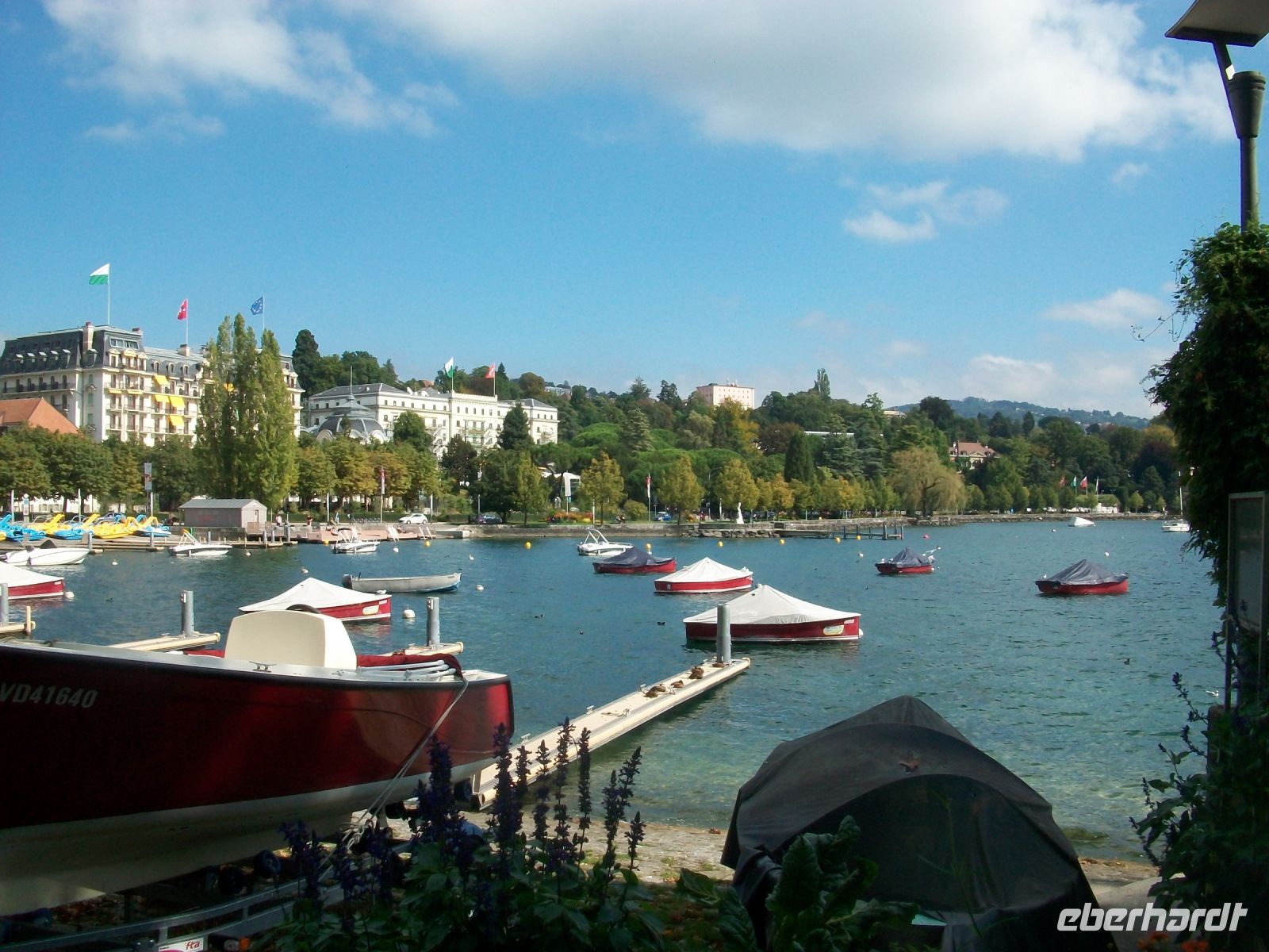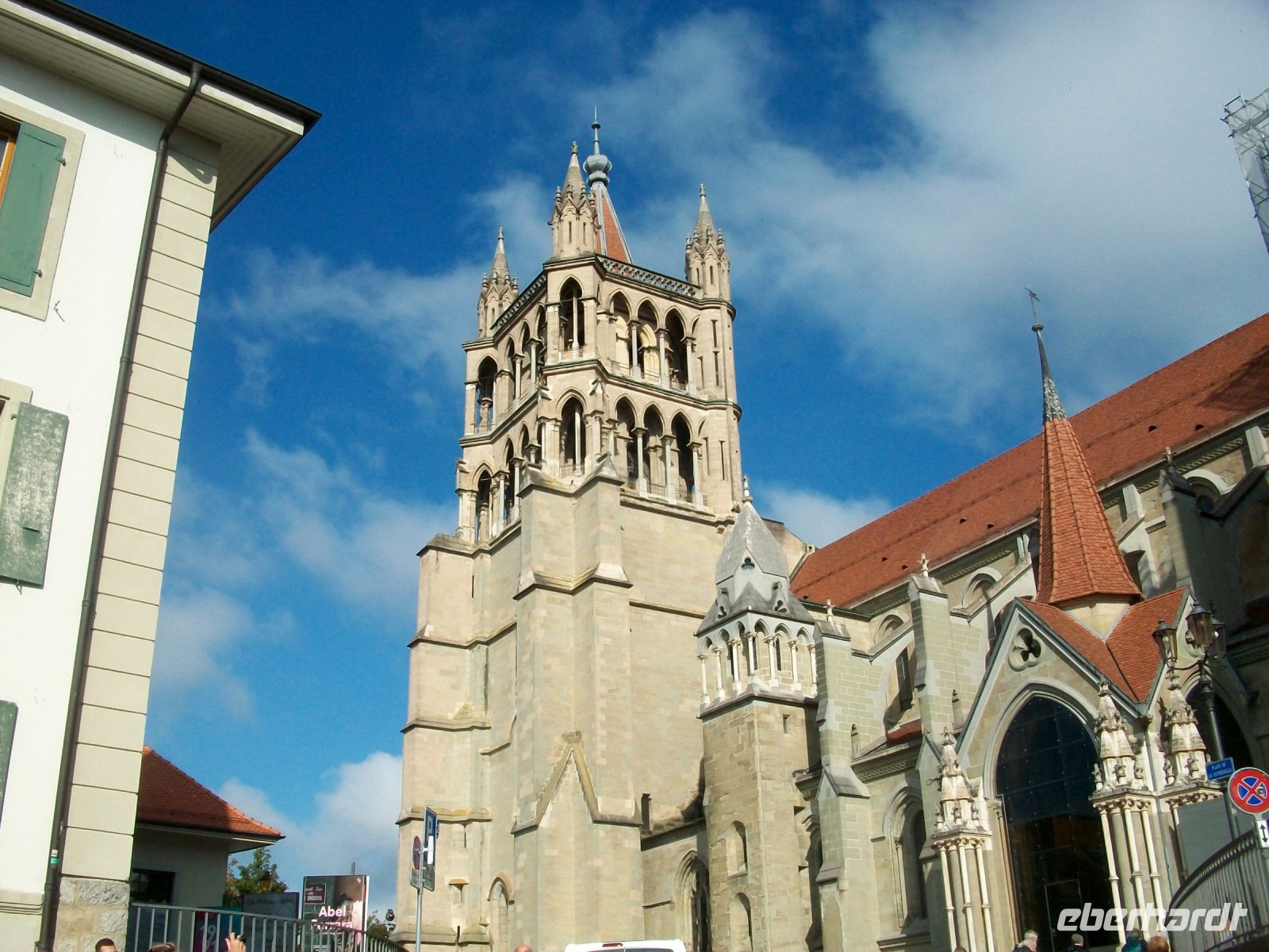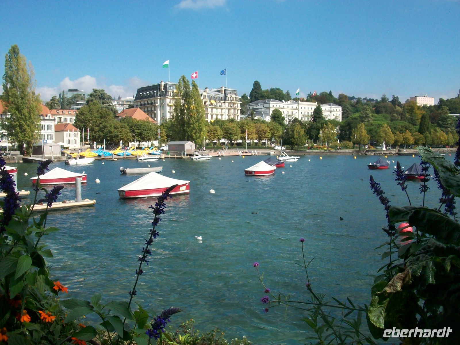 Ab Zweisimmen geht es auf Schmalspur weiter; wir haben hier in einem bequemen Panoramawagen des „Golden Pass“ platzgenommen und mit ihm gelangen wir immer weiter westlich. Bald künden uns die französischsprachigen Schilder an, dass wir über die Sprachgrenze gekommen sind und nach einiger Zeit sehen wir von oben die mächtige Wasserfläche des Genfer Sees vor uns, leider im Dunst, liegen. Ein letzter Umstieg in Montreux – dann bringt uns der Zug unserem heutige Ziel entgegen, dem schönen Ort Lausanne; am morgigen Tag werden wir hier auf Erkundungen gehen.