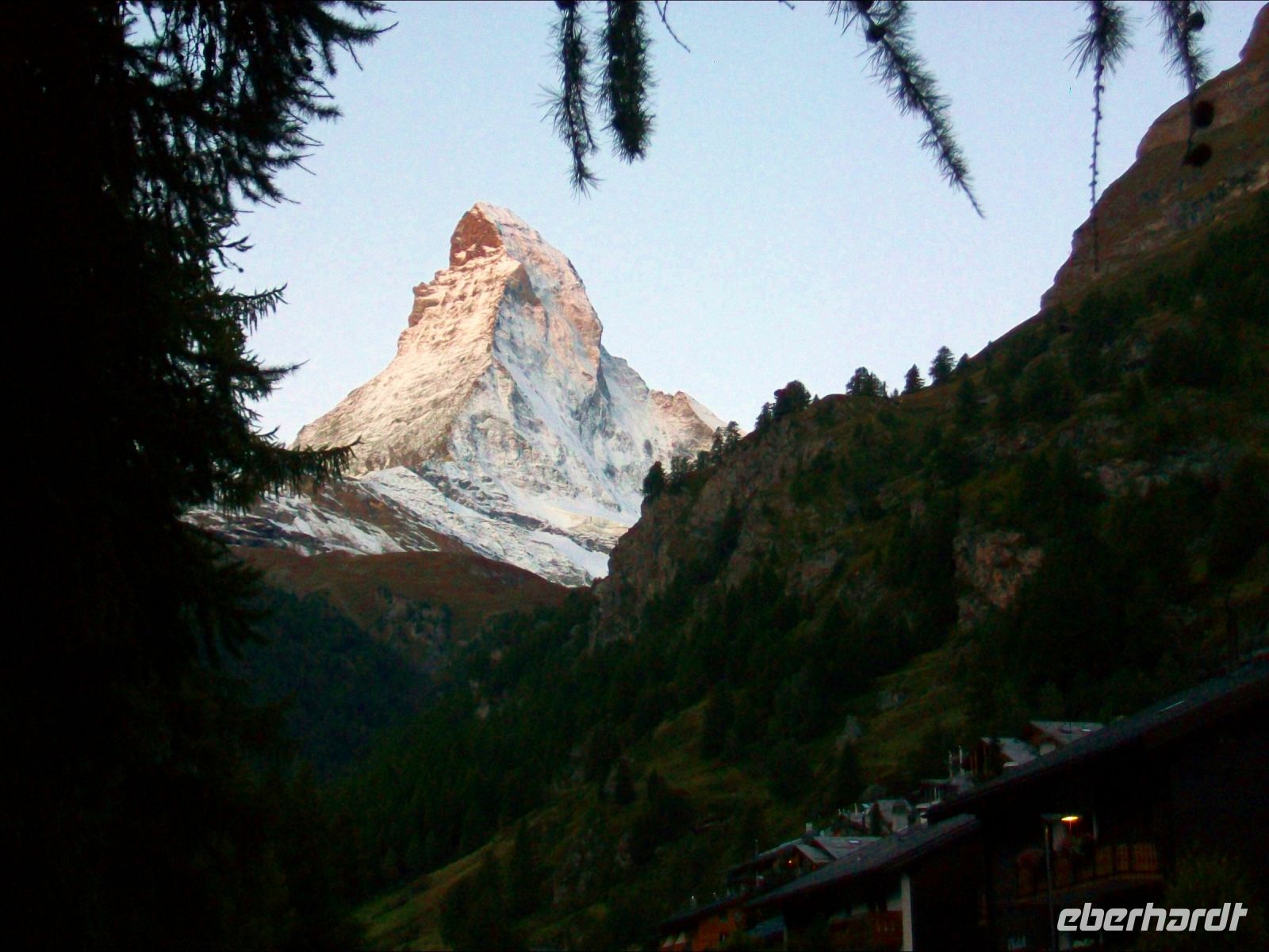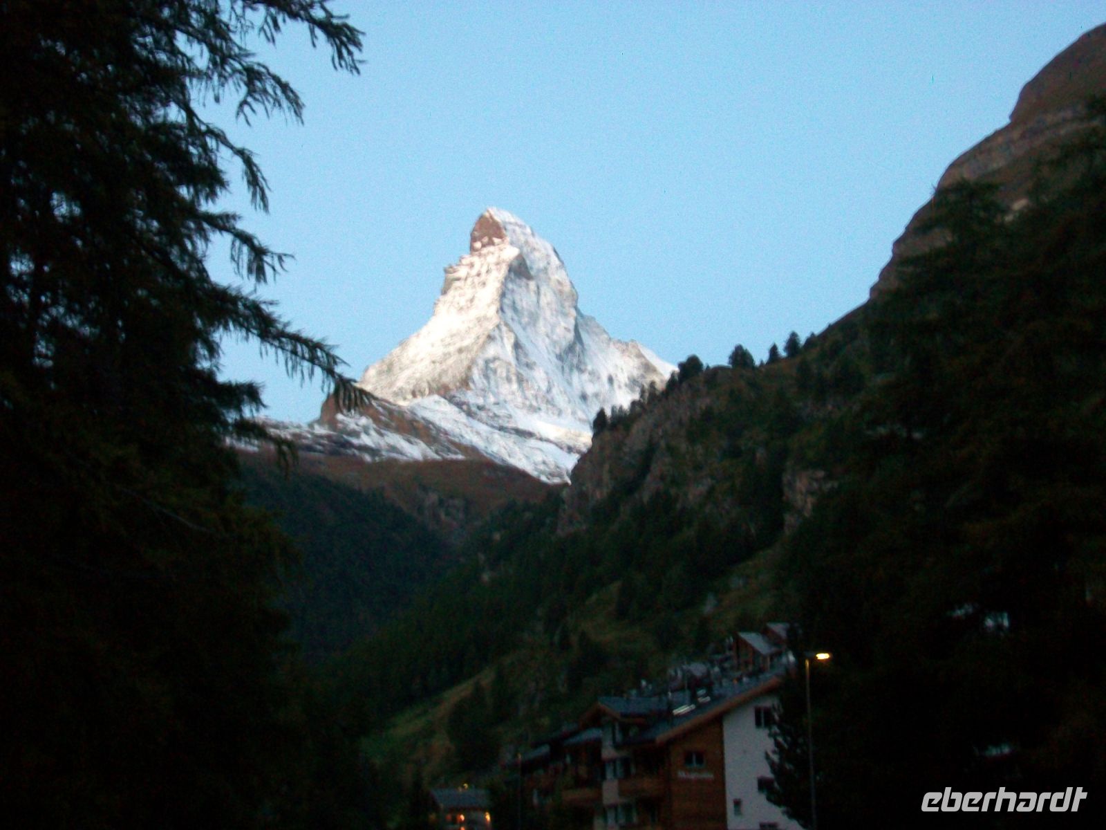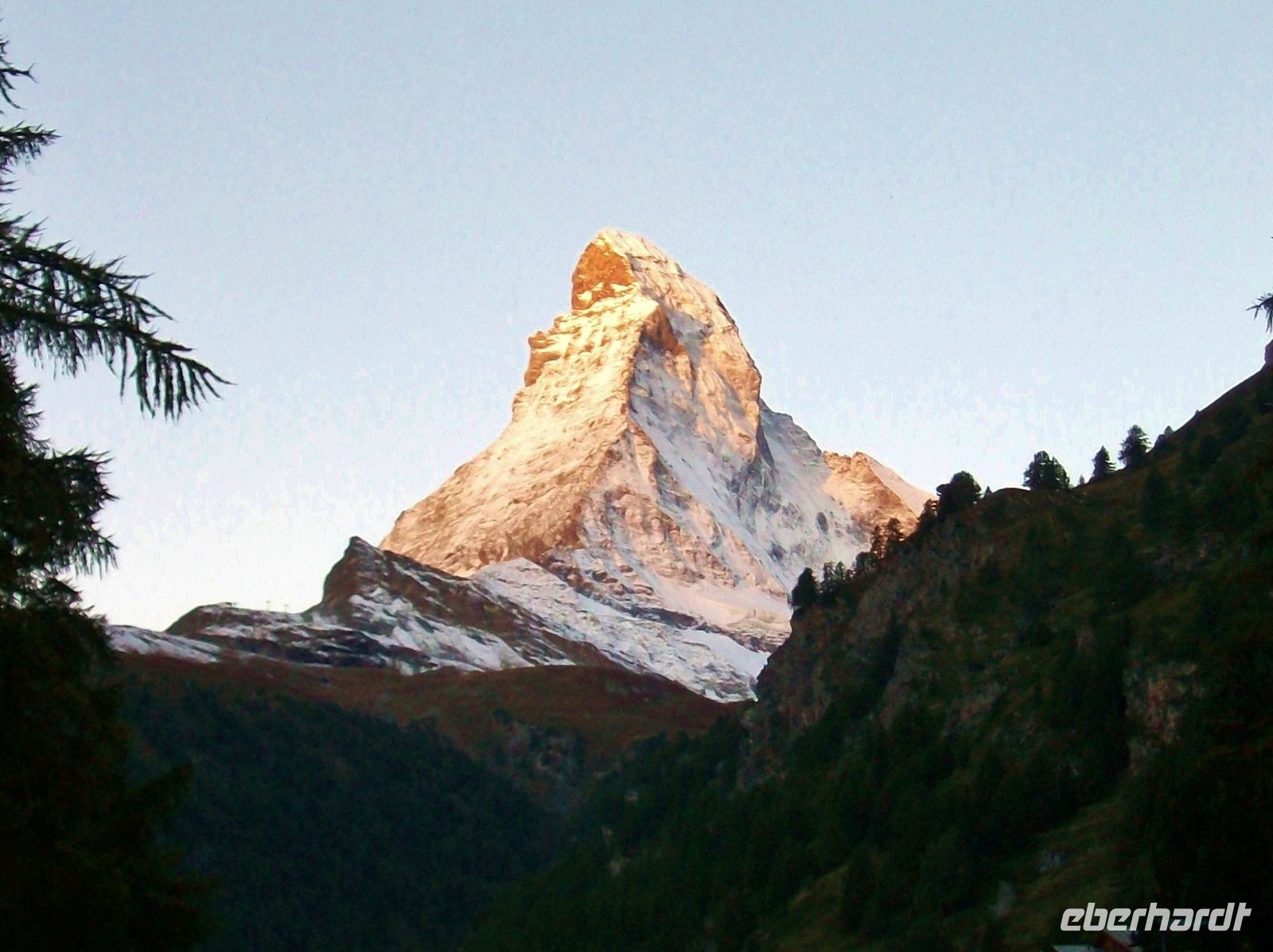 22.9.2021. Fotografen haben sich entlang der Vispa aufgestellt; noch hüllt sich in der Morgendämmerung das Matterhorn in Düsternis, aber kurz nach sieben, mit dem Sonnenaufgang, beginnt es langsam zu erstrahlen und der Berg zeigt sich uns im magischen Licht – wie von Kupfer übergossen. Zahlreiche Kameras halten diesen Augenblick für alle Zeiten fest.