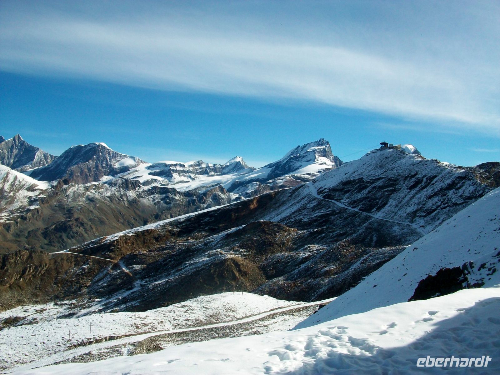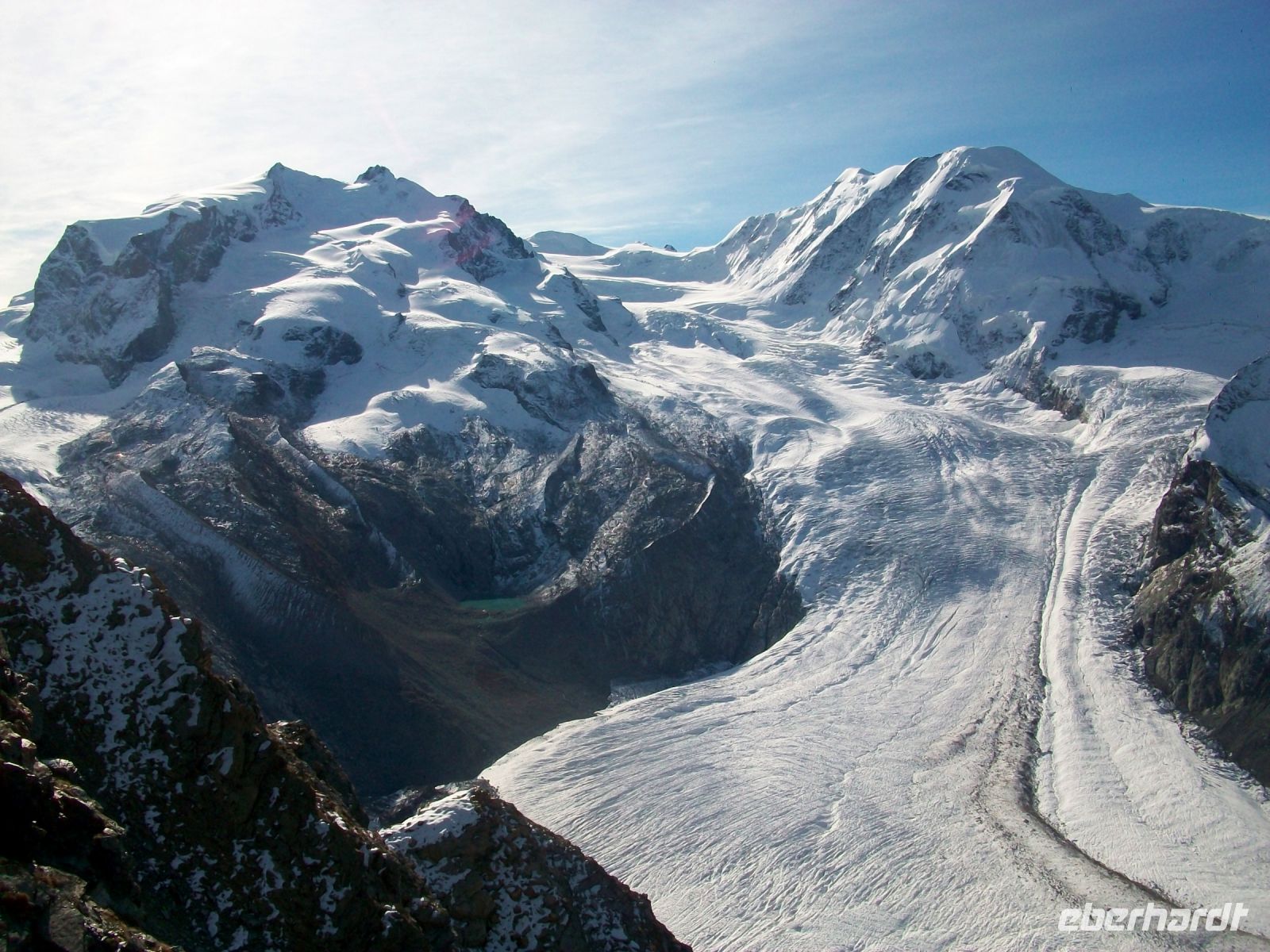 Ein schöner Tag erwartet uns heute in Zermatt, nur leichte Wolkengespinste liegen vor den Bergen als uns die Zahnradbahn zu den Höhen des Gonergrates bringt. Über zahlreiche Windungen verläuft die Fahrt; wir sehen die Bäume eines gesunden Waldes entlang der Fahrstrecke, doch bald treten sie zurück, wir befinden uns nun über der Baumgrenze. Mit jedem Meter den wir an Höhe gewinnen, zeigt sich uns ein immer fantastischeres Panorama; und, als wir unser Ziel über 3 000 Meter erreicht haben, kommen wir aus den Staunen nicht mehr heraus. Die unberührte Bergwelt erstrahlt im Weiß des ewigen Schnees, Bergdohlen ziehen über dieser Naturkulisse ihre einsamen Bahnen und unten im Tal zeigt sich uns ein Gletscher. Zeit der Besinnung und des Nachdenkens wie klein wir Menschen im Angesicht dieser mächtigen Natur sind; dann laden zahlreiche Wanderwege zu Aktivitäten ein die wir lange nicht vergessen werden.