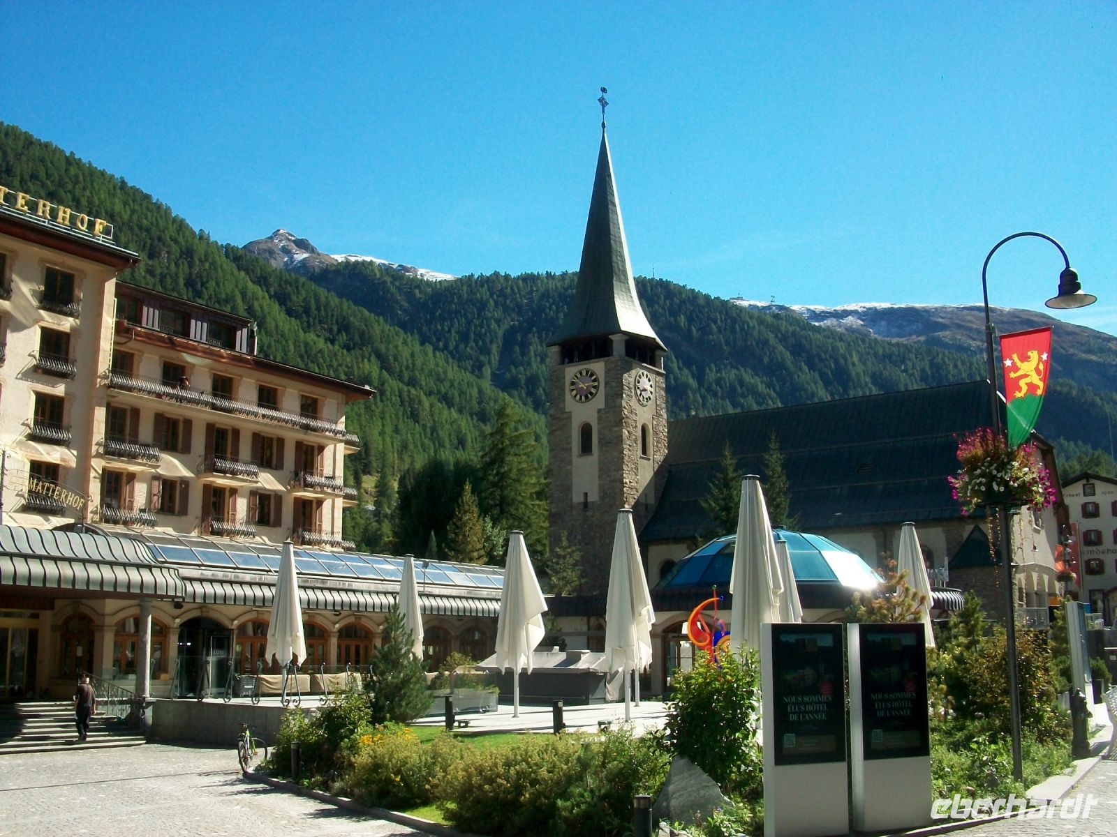 Am Nachmittag verbleibt noch genügend Zeit für Entdeckungen im malerischen Gebirgsdorf Zermatt. Ein Bummel über die belebte Bahnhofstraße mit den zahlreichen Boutiquen und Restaurants, ein Blick hinein in Kirche und auf den Bergsteigerfriedhof um schließlich dem alten Bauerndorf mit den erhalten gebliebenen wettergebräunten Holzhäusern einen Besuch abzustatten.