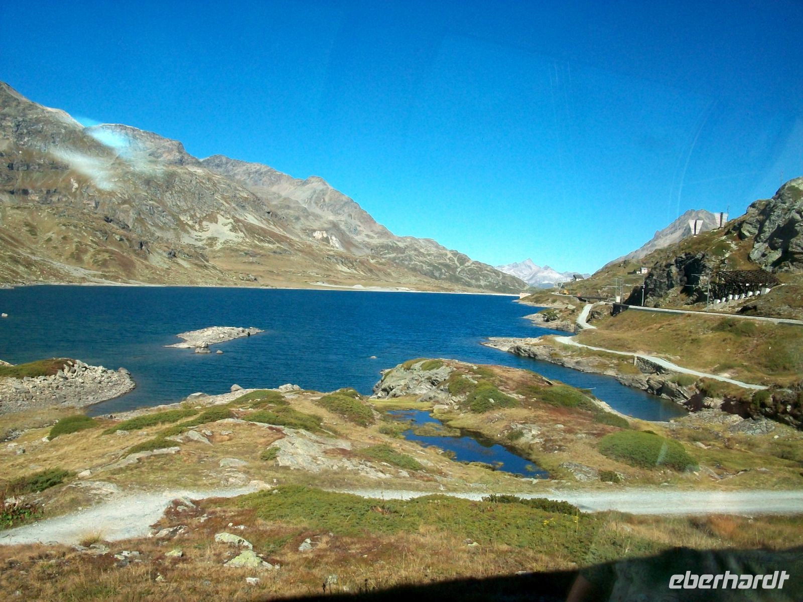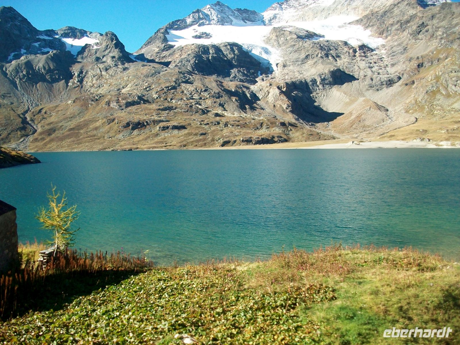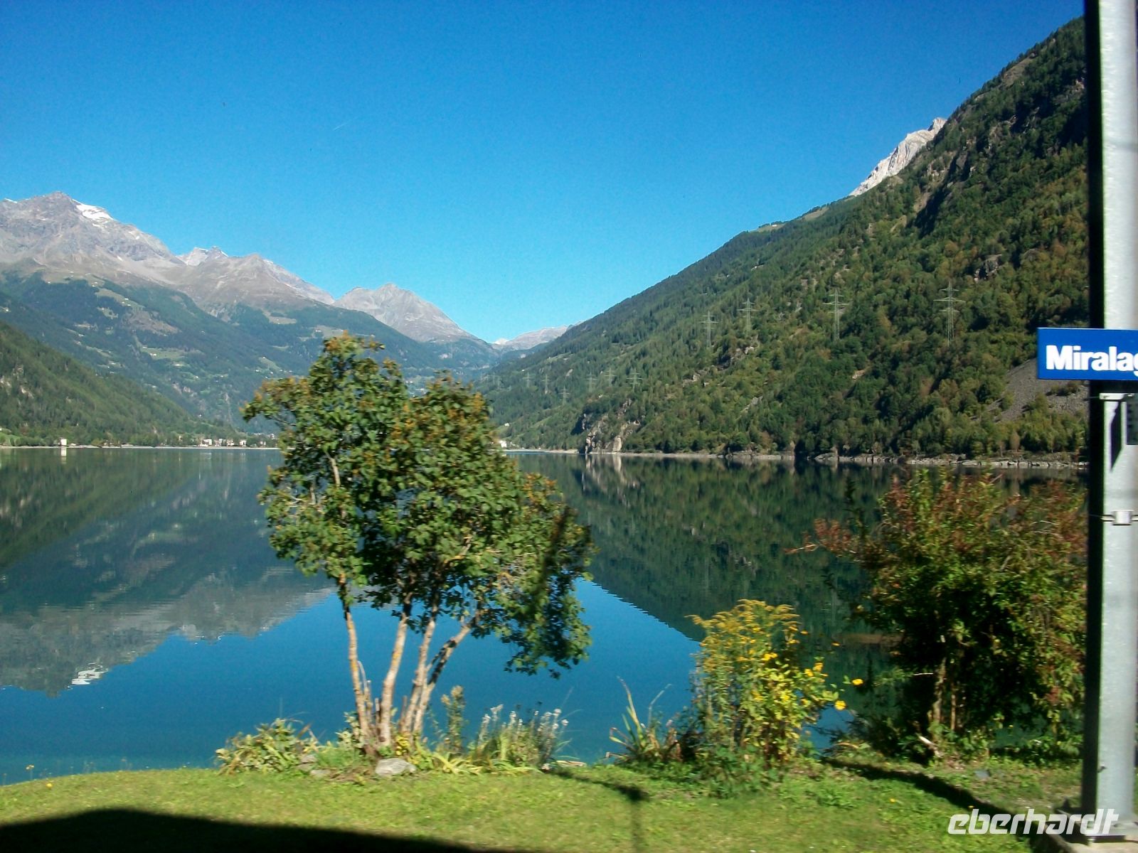 Der Morgen ist hier oben, Sankt Moritz liegt bei 1 800 Metern über dem Meer, schon recht kühl und lässt den Herbst erahnen als wir gemütlich und von Sonne begleitet hinunter zum See und am Ufer entlang in Richtung Bahnhof gehen. Der Zug steht schon bereit und wir können es uns auf den bequemen Sitzen gemütlich machen. Pünktlich geht es los und erneut tauchen wir in die wunderbare Natur der Schweiz ein. Bald zeigt sich uns auf der rechten Seite die Eiszunge des Morteratschgletschers, wenig später sind wir über der Baumgrenze im kargen Hochgebirge des Berninapasses unterwegs. Majestätisch grüßen uns die eisbedeckten Viertausender, ab sofort senkt sich die Strecke ab und eine gute halbe Stunde später haben wir das alpine gegen das mediterrane Klima ausgetauscht. Hier hat sich nun die Vegetation grundlegend verändert – eine Besonderheit dieser Tour. Am üppigen Grün vorbei drehen wir uns einmal im Kreis am berühmten Kreisviadukt von Brusio und wenig später sind wir in der Lombardei angelangt und sind zunächst von der Schweiz nach Italien gelangt.