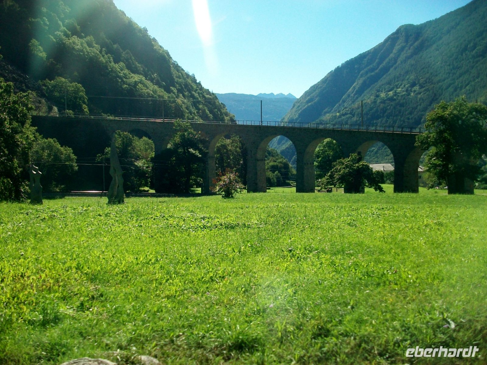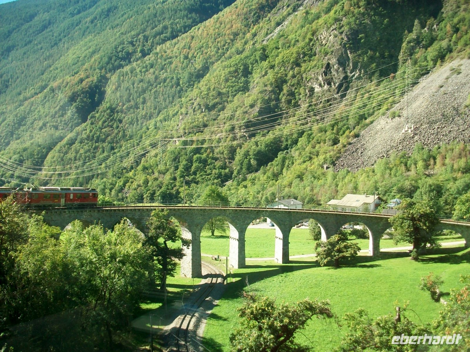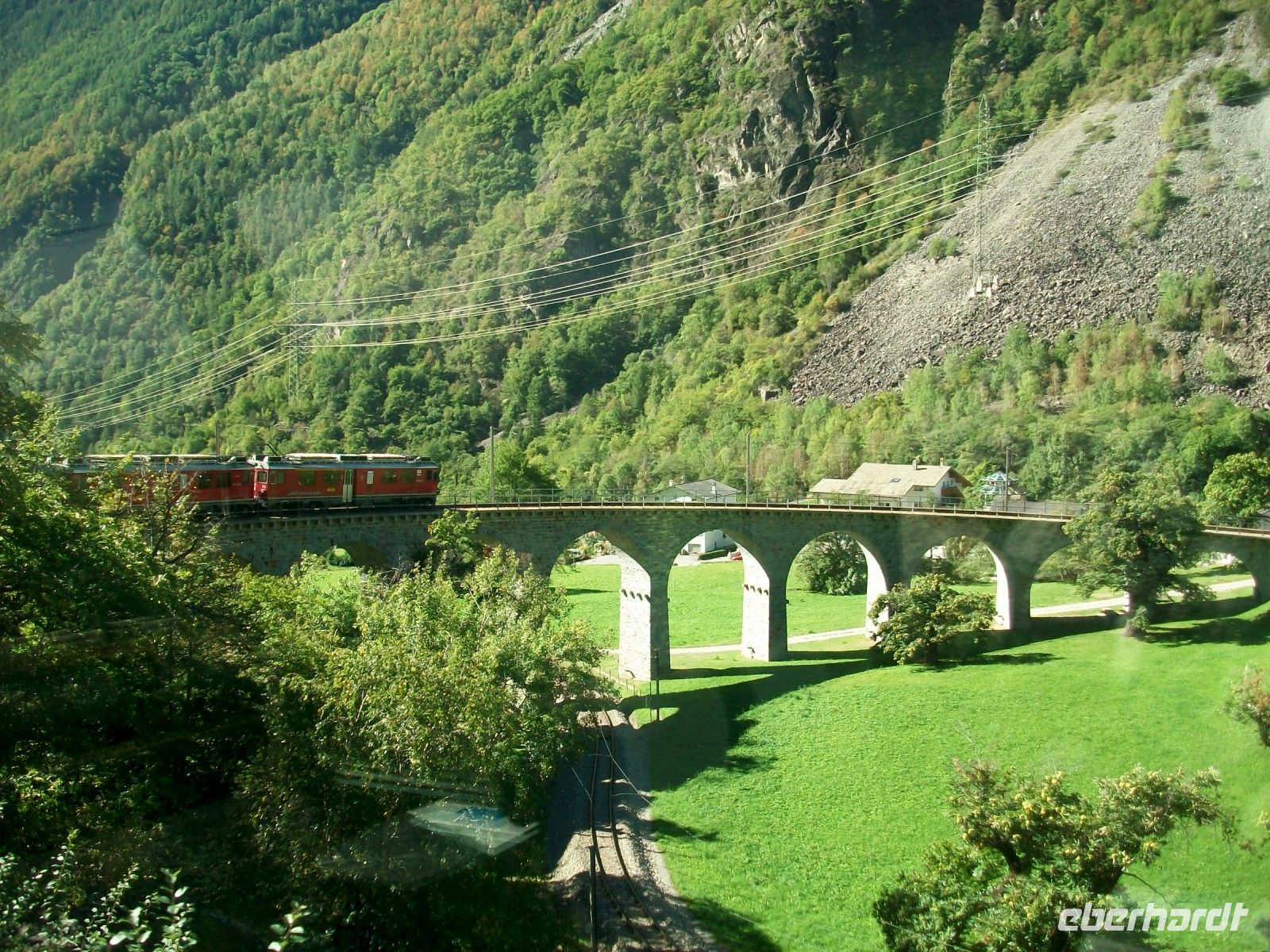 Der Nachmittag ist schon vorangeschritten als wir nun auf der UNESCO - Strecke der Albula - Linie unterwegs sind, sie bringt uns einen letzten großen Höhepunkt: Die Fahrt über das Landwasserviadukt. Diese gigantische Brücke beschreibt einen kleinen Bogen nach rechts und somit können wir beobachten, wie der Zug direkt in den nachfolgenden Tunnel einfährt; einmal mehr staunen wir über die Schweizer Ingenieurskunst im Eisenbahnbau.