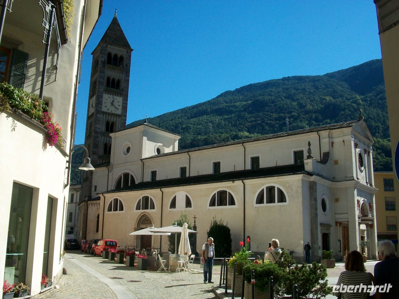 Zur Mittagszeit laden hier im Ort Tirano zahlreiche Restaurants zum italienischen Mahl ein; am Nachmittag aber steigen wir in den Bus, dieser wird uns nach Lugano bringen.