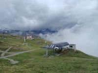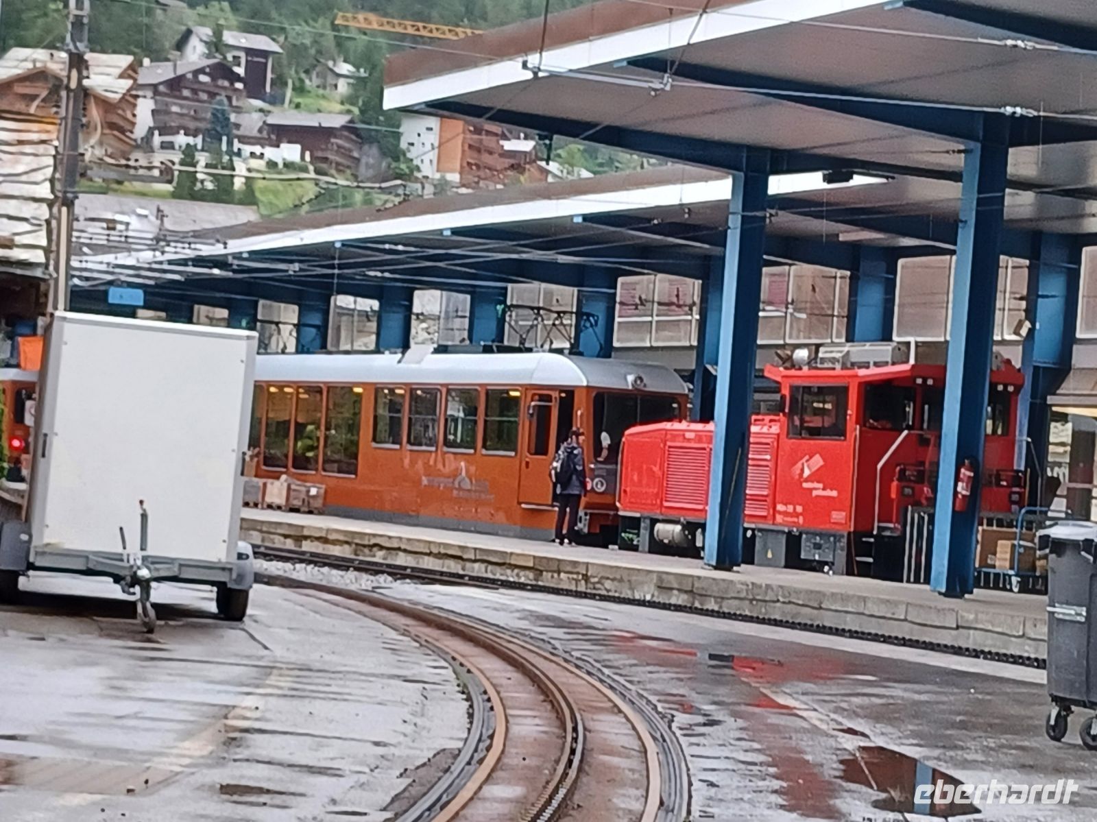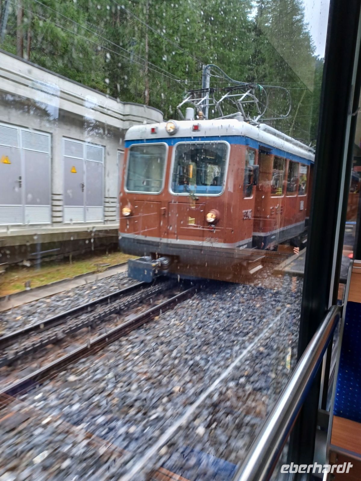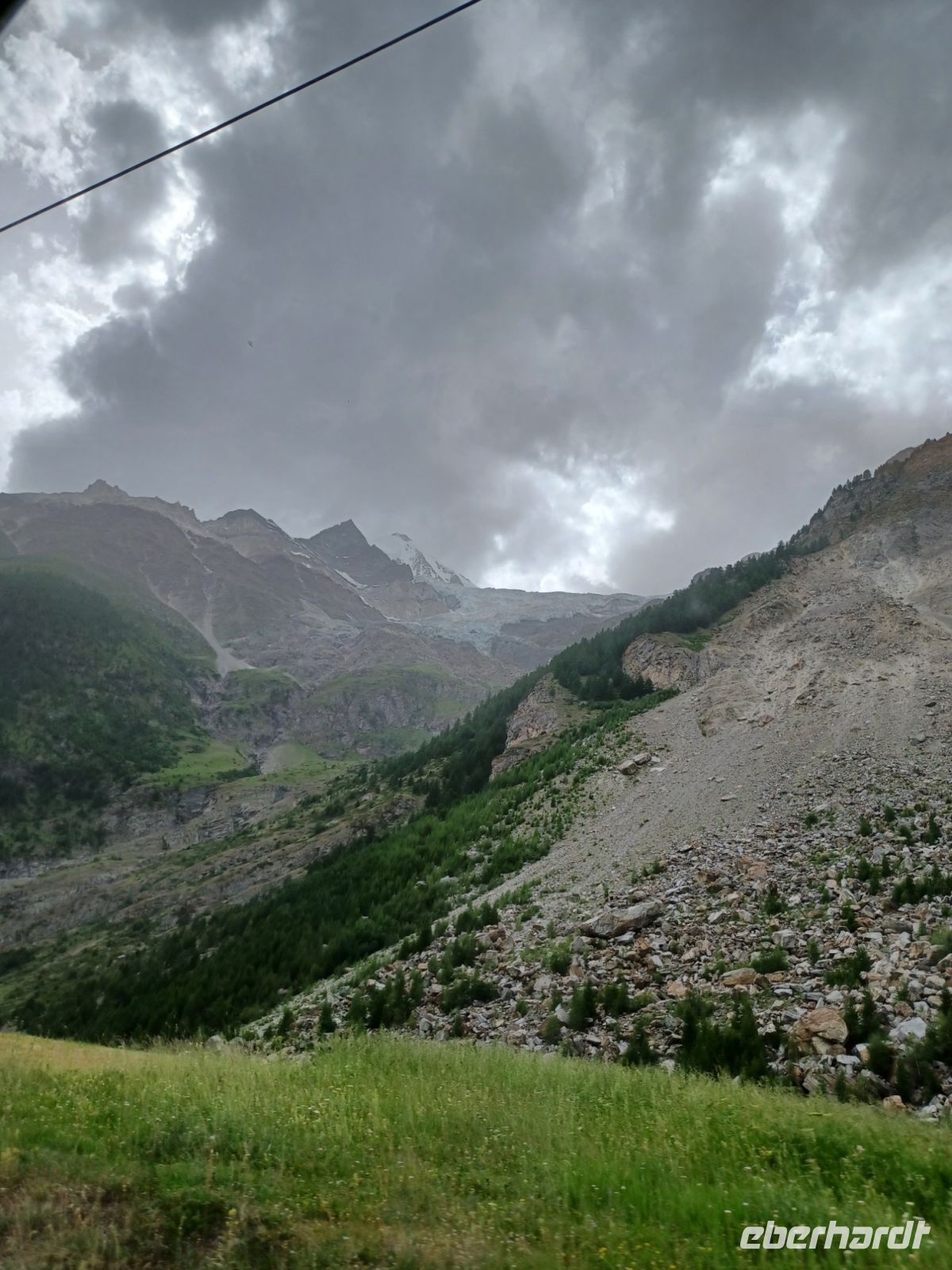Lagebesprechung um 9 Uhr: der Radarschirm zeigt bis Mittag Regen an, dann soll es sich Aufhellen. Also starten wir mit einem individuellen Rundgang durch Zermatt: die alten dunklen Häuser aus Lärchenholz, die Englische Kirche, das Gemeindehaus, das Matterhornmuseum, der städtische Friedhof im Stadtzentrum. Über die touristische Einkaufstrasse gelangen wir zur Talstation der Gornegratbahn.