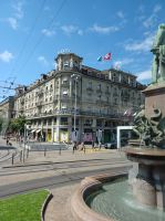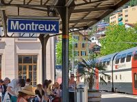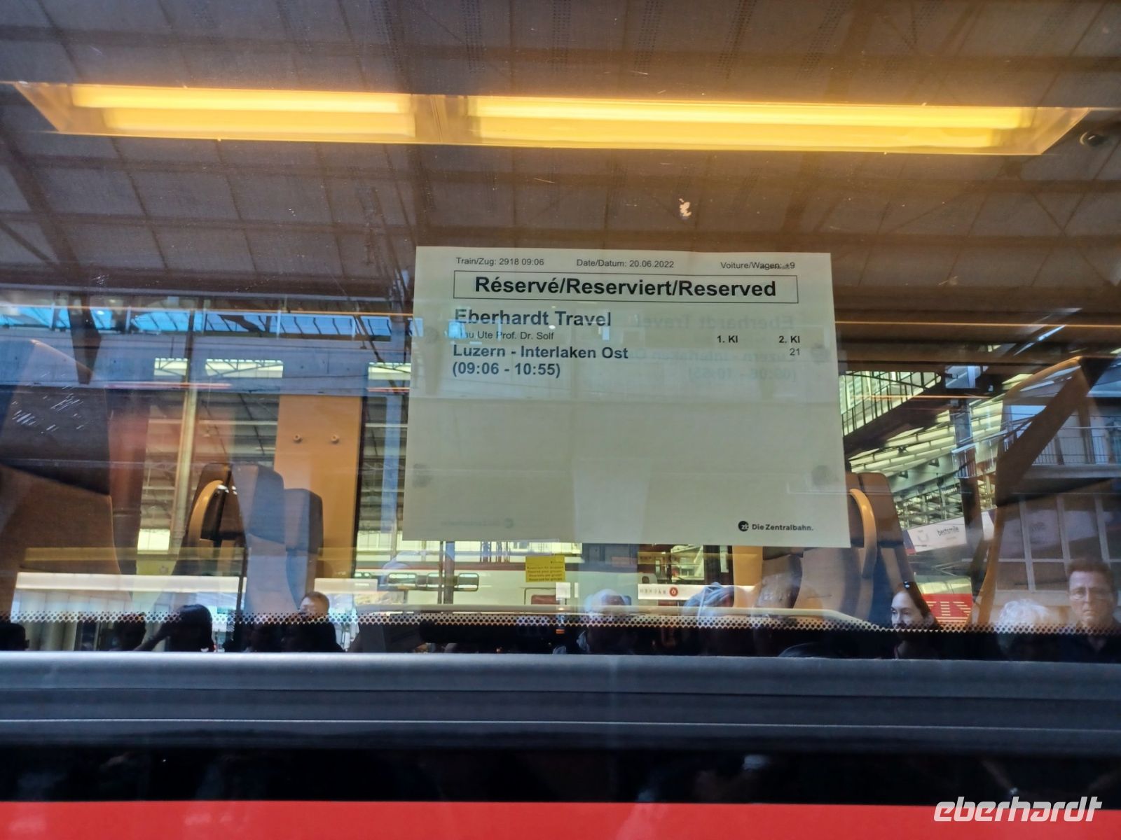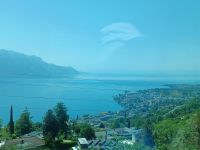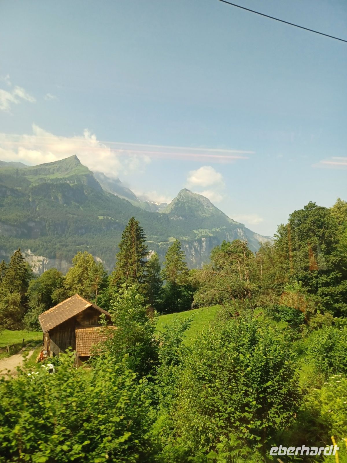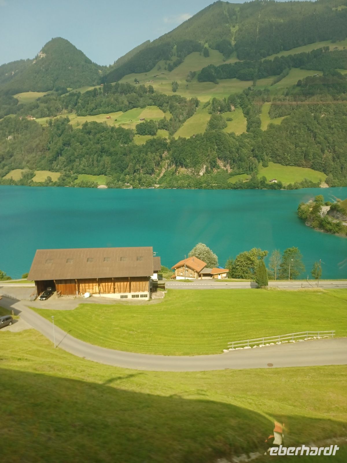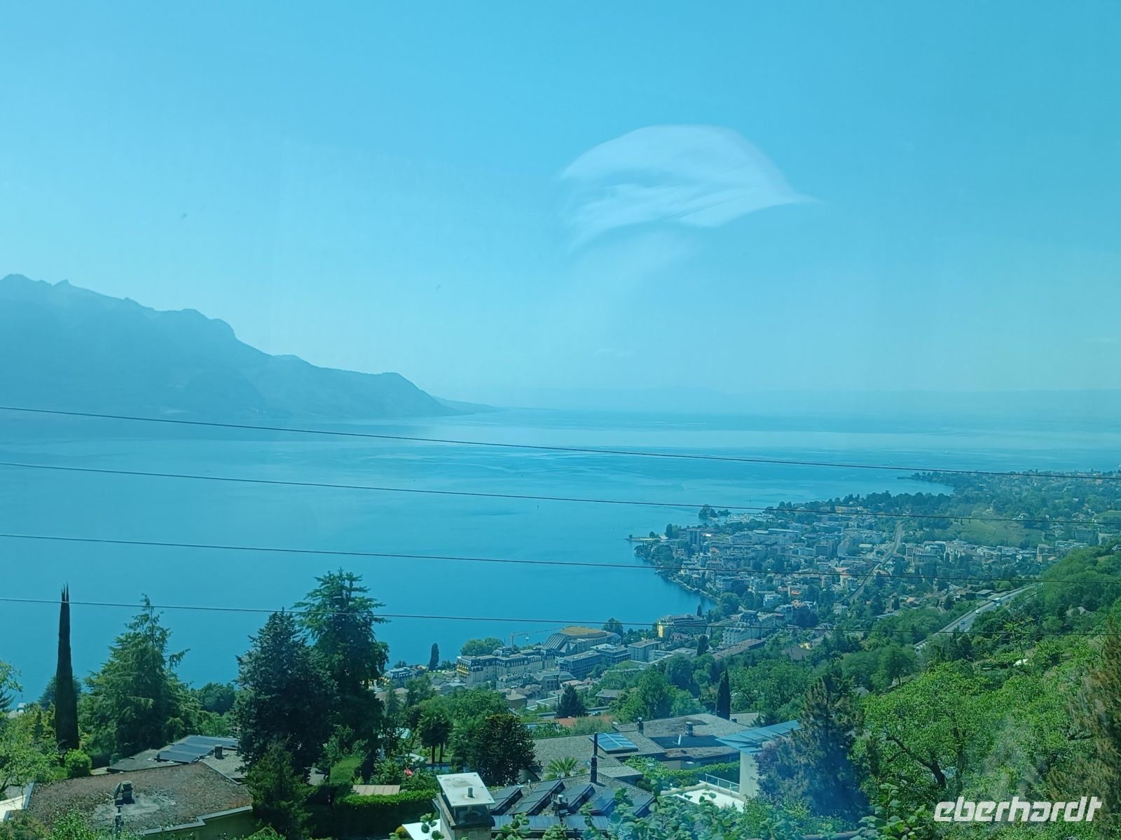 heute heißt es Abmarsch um 8:15 Uhr. Wir nehmen den Linienbus ab Hotel zum Bahnhof u. fahren mit 4 Umstiegen nach Lausanne. Der Luzern-Interlakenexpress bringt uns die 74 km in 2 h nach Interlaken Wir passieren den Vierwaldstättersee, den Brienzersee u. bei Spiez den Thunersee. Umstieg in Spiez nach Zweisimmen. Von dort mit der GoldenPass -Linie bis Montreux am Genfer See. Wir sind in der französisch sprachigen Schweiz. Ein letzter Zugumstieg u. wir fahren entlang des Genfer Sees bis Lausanne. Der Weg vom Bahnhof bis zum Hotel erscheint uns durch die Hitze beschwerlich. Aber die Zimmer sind angenehm kühl u. wir nehmen zum Abendessen im schattigen Garten Platz.