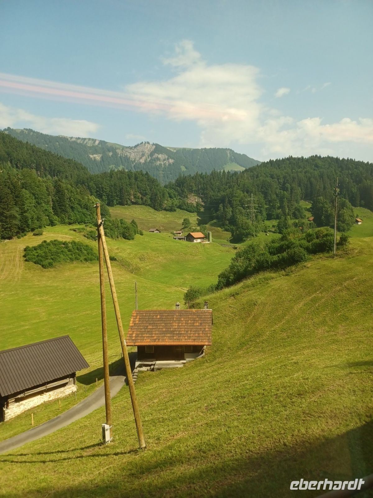 Die Route mit dem Voralpenexpress sowie weitere Bahnrouten der Grand Tour sind vielen bekannt durch die 3sat Fernsehreihe "Die schönsten Bahnstrecken der Schweiz": wir fahren über das Sitterviadukt über die Sitter (Länge 209 m, Höhe 63 m), das bei laufendem Betrieb in seinen Fundamentteilen erneuert wird. Wir durchqueren das Appenzeller Land. Hier werden noch viele Traditionen gepflegt, wie der Almauf-u. abtrieb, die Streichmusik auf dem Hackbrett mit 125 Seiten, das Talerschwingen... Am Ufer des Zürichsee entlang fahren wir über Rapperswill, einen Seedamm über den Genfer See u. durchqueren die größte zusammenhängende Moorlandschaft der Schweiz. Das Moor dient als natürliche Hochwasserregulierung, da es in der Lage ist, Wasser aufzusaugen und abzugeben.