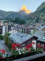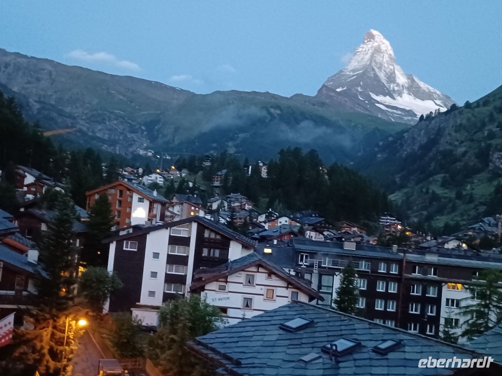 Am Nachmittag steigen wir in den Zug Richtung Zermatt. Das letzte Stück Zugstrecke befahren wir mit Zahnstange u. Zahnrädern. Zermatt liegt 1600m hoch am Fuß des pyramidenförmigen Matterhorns.