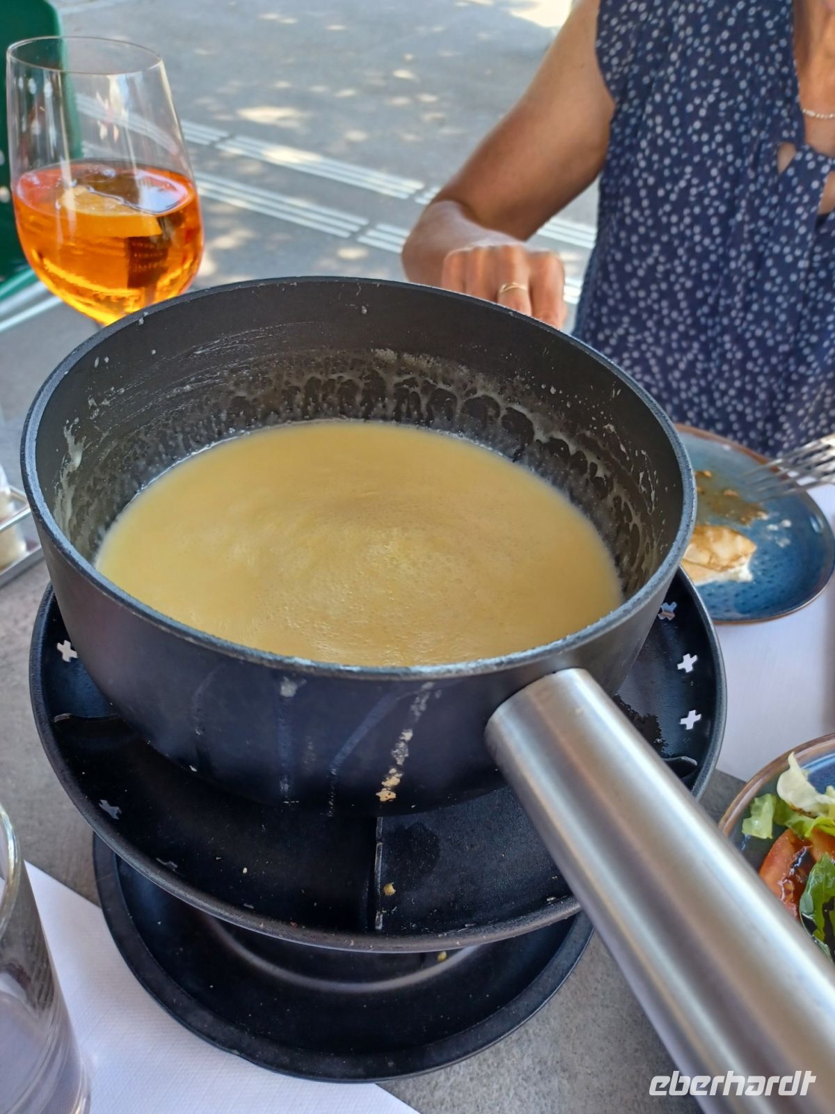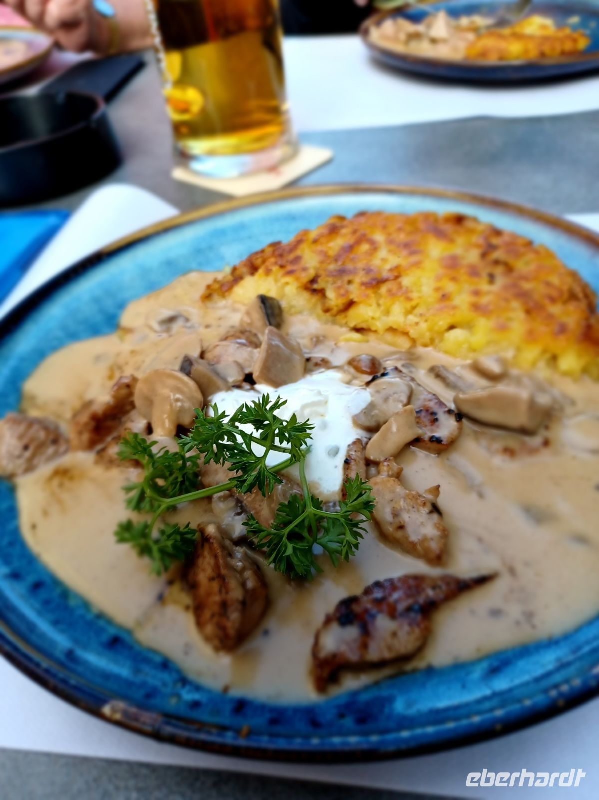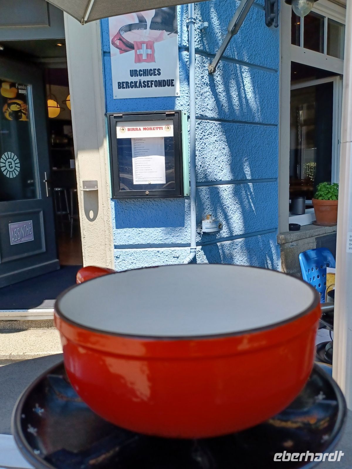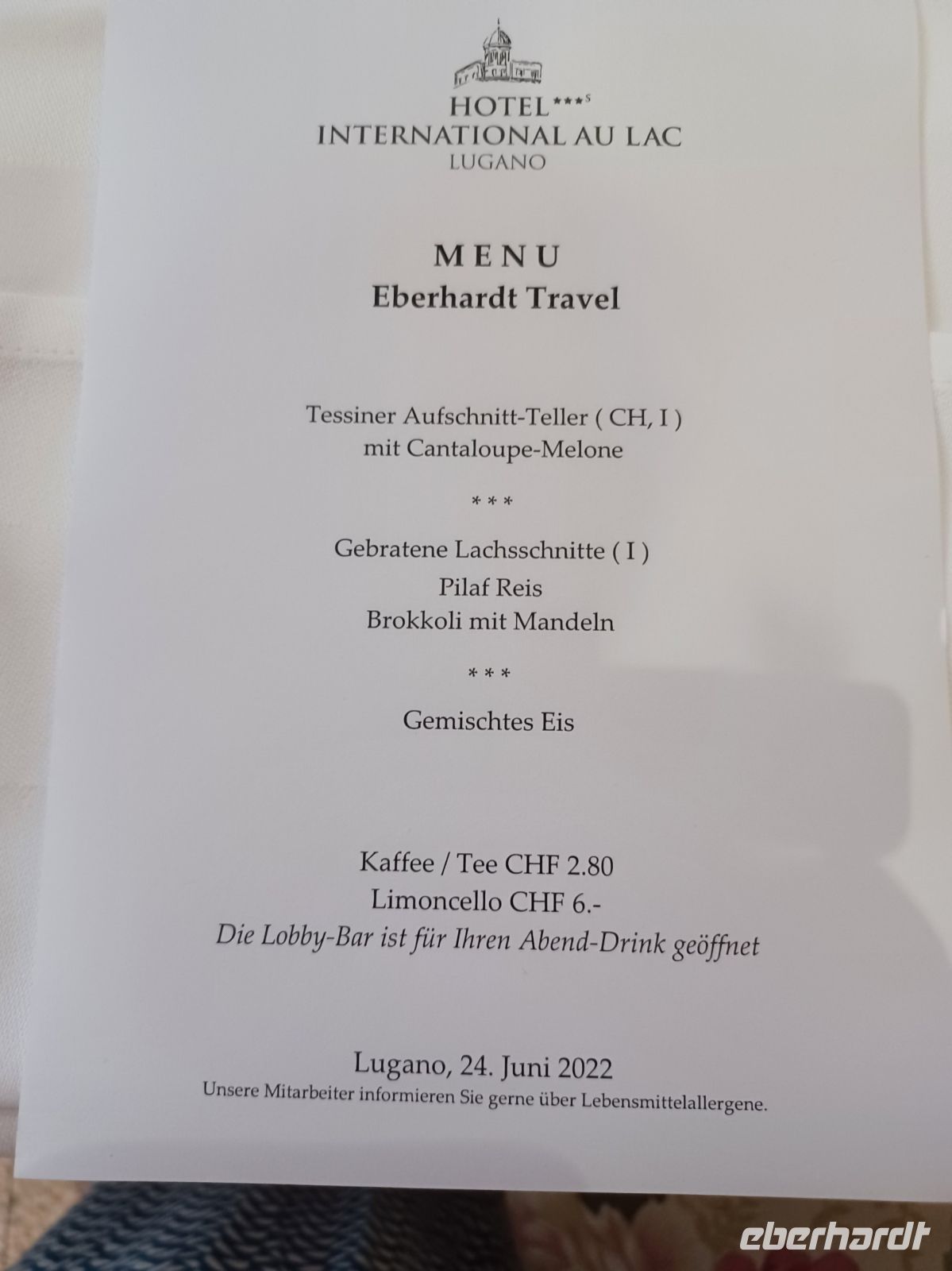 Perfekt in Bahnhofsnähe liegt das Hotel. Unser Abschiedsessen findet im Schatten an einer gedeckten Tafel statt: obendrein präsentiert der gastfreundliche Wirt die regionale Spezialität- Zuricher Geschnelztes an Rösti als Hauptgang. Unsere Reiseleiterin Ute verabreicht einen gesunden Kräuter-um-trunk aus einer "Medizinflasche" des Gasthauses, Restbestand aus dem Depot, aber schmackhaft! Als alle Reisteilnehmer versammelt sind liegt es uns am Herzen einige Abschiedsworte auszusprechen. Die Gruppe und die Reiseleiterin bedanken sich für das tolle Miteinander, für die Aufmerksamkeit, die gegenseitige Rücksichtnahme und das Vertrauen in die Organisation dieser wunderschönen Reise. Wir hatten viele schöne Erlebnisse u. auch Spass miteinander.