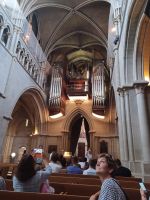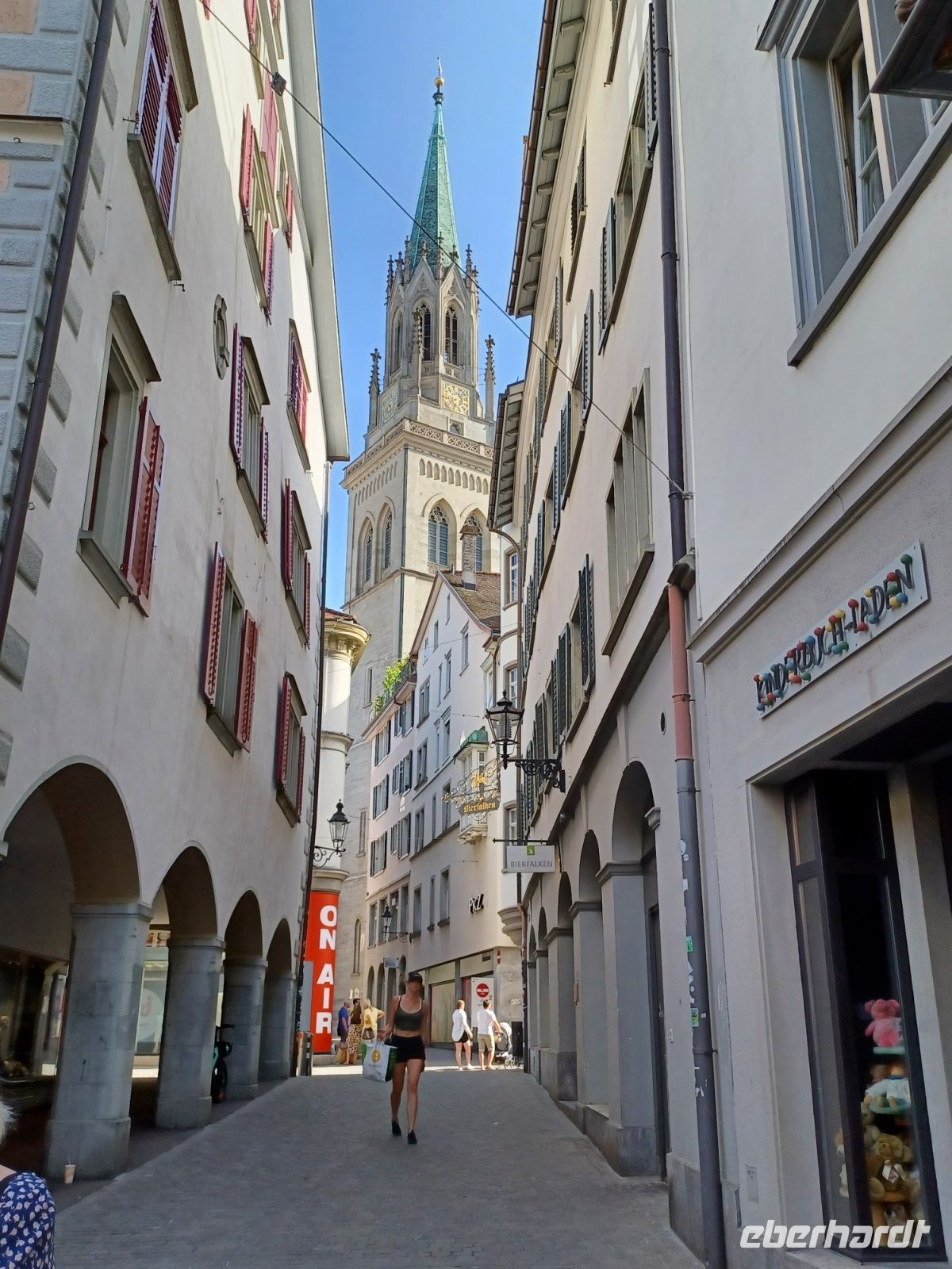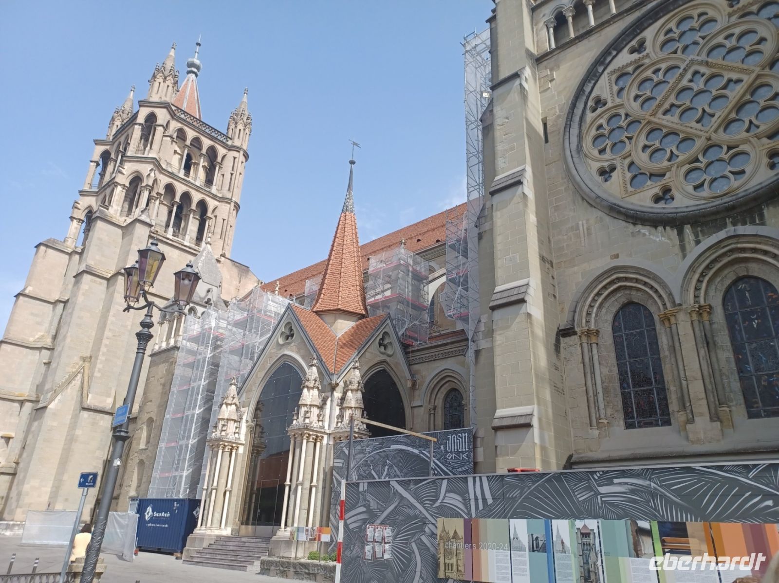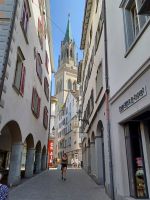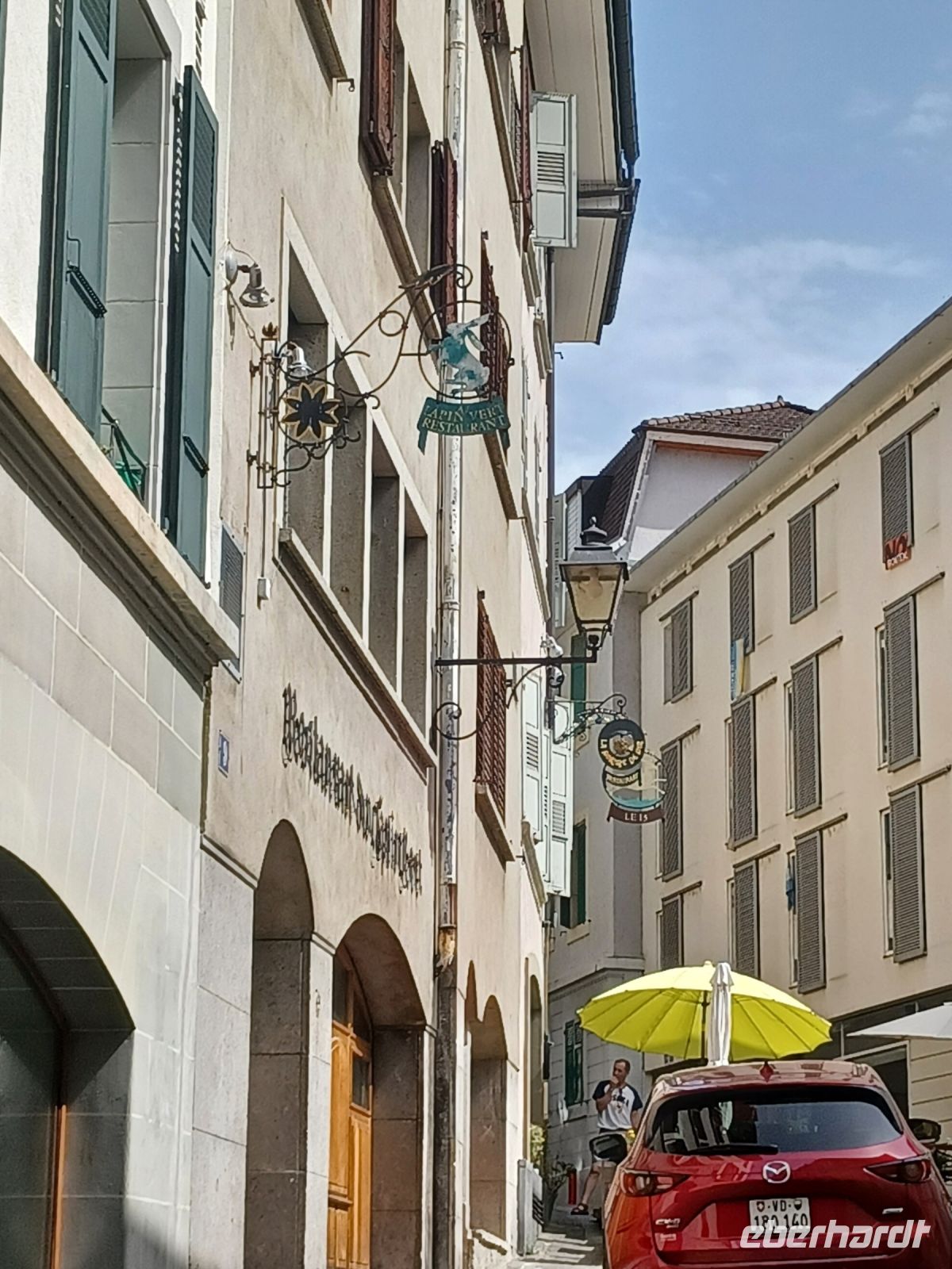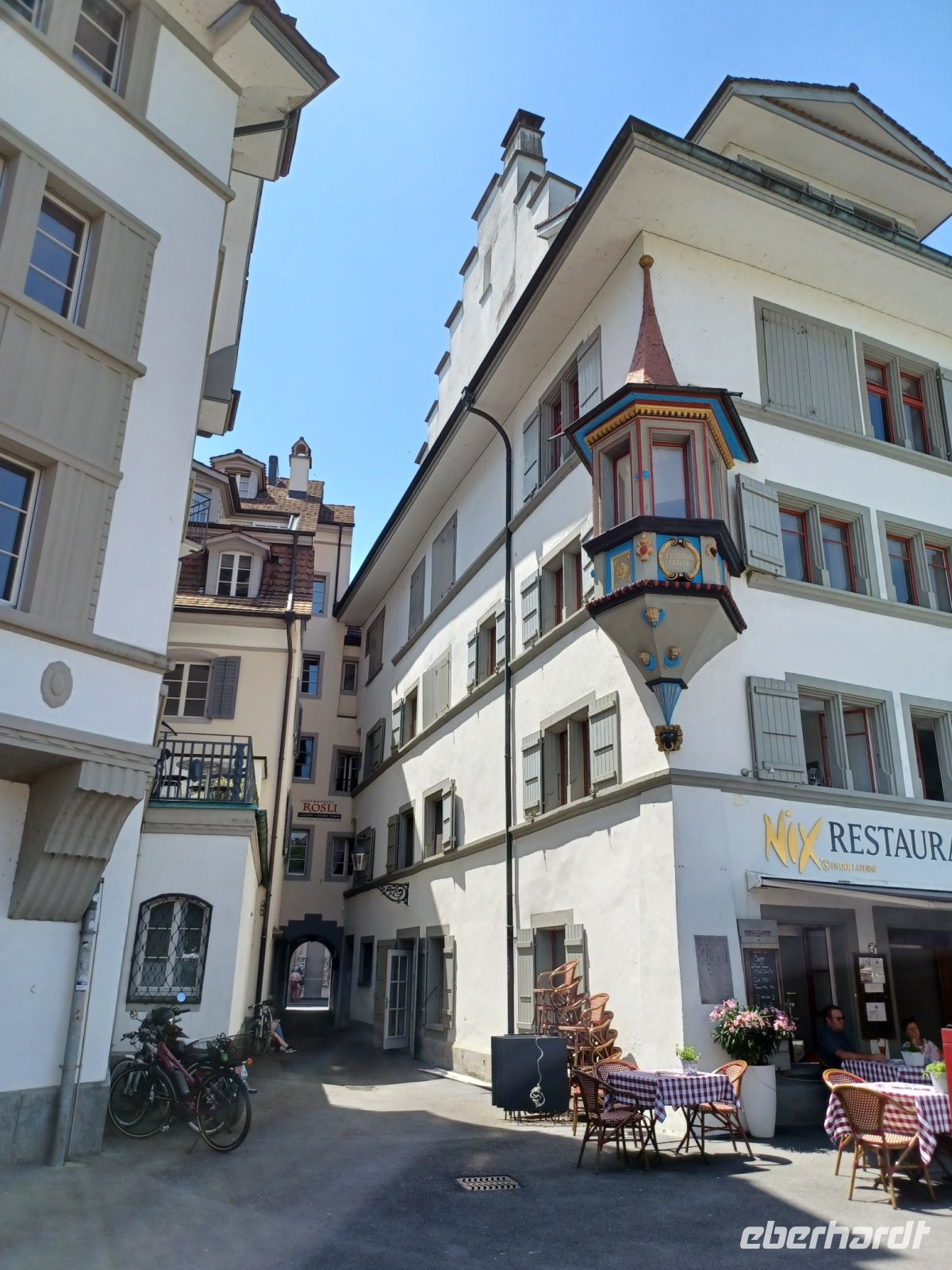 Das Stadtticket benutzen wir auch am Folgetag während unseres Stadtrundganges um hoch in die Altstadt zu kommen. Wir begehen die Altstadt bis zur Kirche Notre Dame, die wir besichtigen u. einer Orgelvorstellungen beiwohnen können. Hauptorgel u. Chororgel werden in ihrem Zusammenspiel vorgestellt. Wir sind verzückt von dem kräftigen Anschlag. Wir sehnen uns nach Schatten. Daher durchwandert unsere Stadtführerin mit uns die prachtvolle Innenhalle des öffentliche Museums zur Stadtgeschichte. Unser Rundgang endet am Hauptbahnhof, von wo aus wir 1,5 h in die Mittagsfreizeit gehen. Die einen bummeln durch die Geschäfte der Altstadt, andere fahren hinunter zum See oder verweilen im Café am Bahnhof.