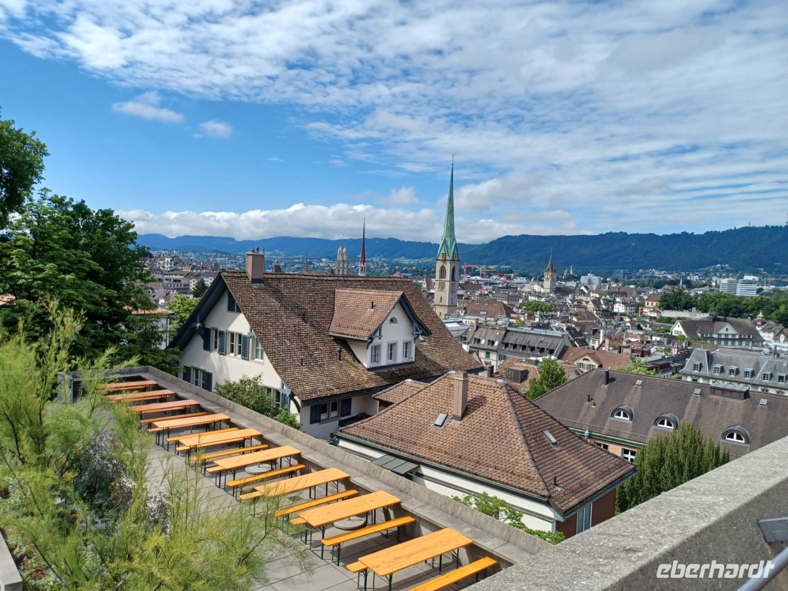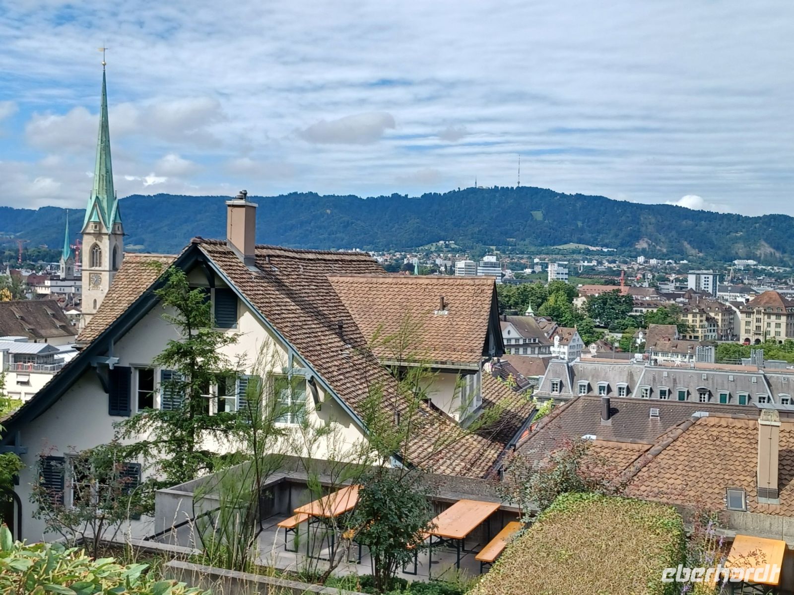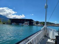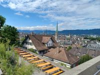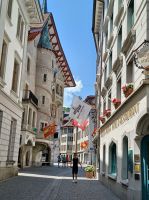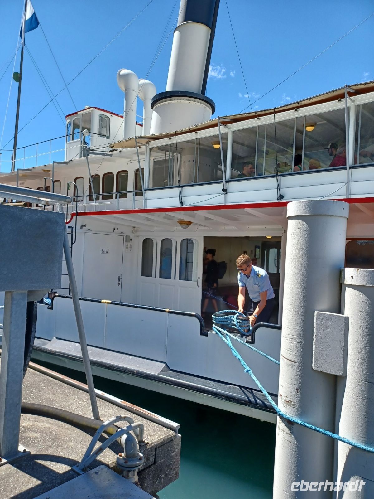 In Flüelen wechseln wir auf das Dampfschiff nach Luzern. Wieder erwartet uns ein technisches Highlight. Der Schaufelraddampfer präsentiert im Innern den Gästen seine arbeitende zischende Dampfmaschine. Rot-Golden angestrichen zieht sie uns in den Bann. Durch ein Schaufenster sehen wir, wie sich das Schaufelrad durch das Wasser arbeitet. An Deck die Seenlandschaften, im Hintergrund die Bergwelt.: Entzückende Anleger mit alten Holzhhäusern, kleinen, in Fels gehauene Kirchen, moderne Wohnquadrate, die wie verglaste Schwalbennester an den Hängen kleben. So fahren wir fast 3 Stunden u. gelangen über den Alpnacher See u. Vierwaldstättersee nach Luzern. Die Berge Pilatus u. der Rigi grüßen uns von den Ufern bei Luzern. 1,5 h Aufenthalt in Luzern-Zeit zum Kaffeetrinken am See. Die Innenstadt am Samstag ist menschengefüllt, es gibt ein Stadtfest. Wir verabschieden uns von der schönen Stadt u. reisen 1 h mit dem Zuge zu unserem letzten Haltepunkt-Zürich.