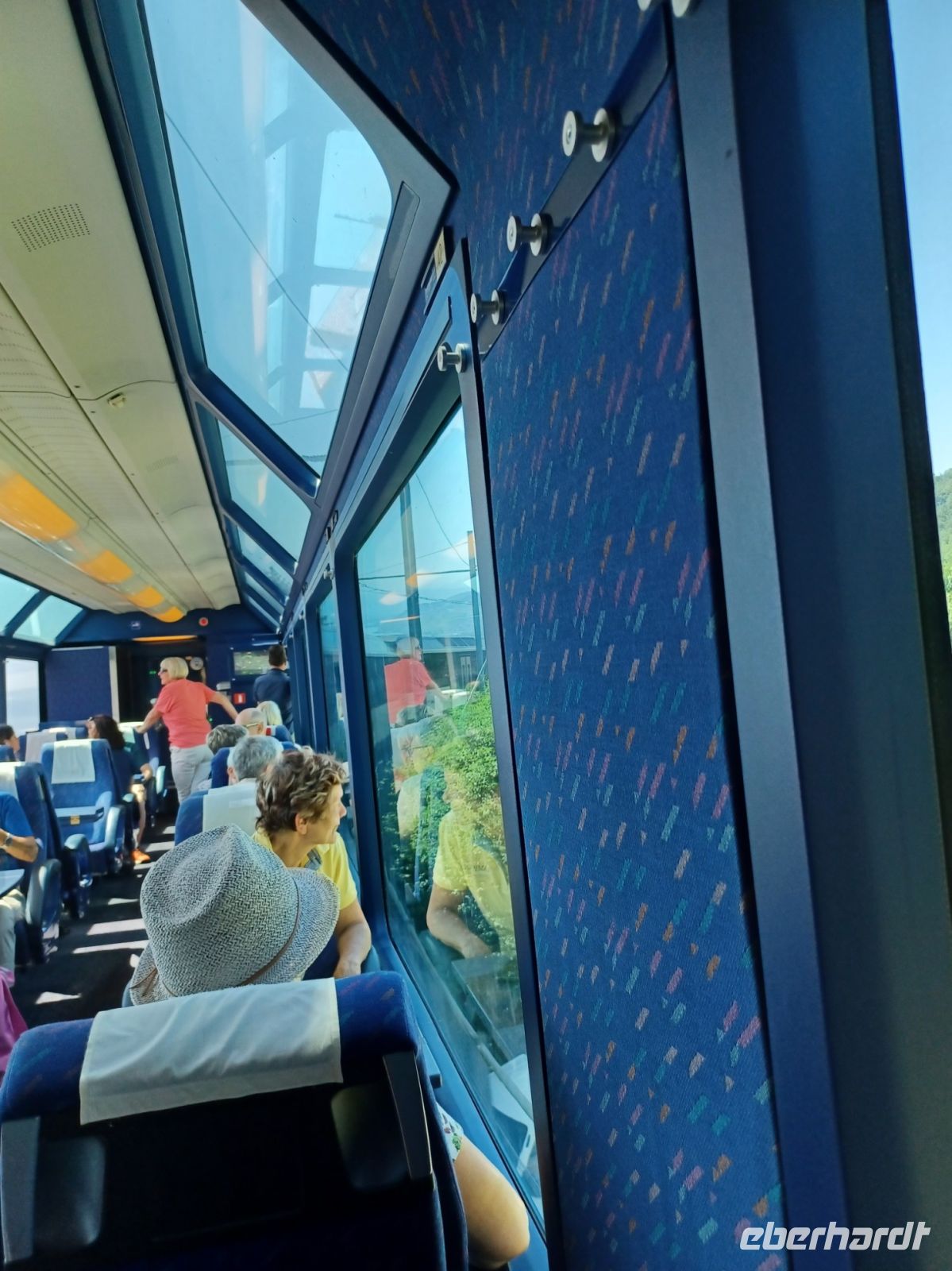 Nach einem exzellenten Frühstück mit sehr gutem Service starten wir die erste gemeinsame Bahnfahrt. Wir vertrauen von nun an unsere Koffer täglich dem Gepäckservice an u. gehen entspannt mit dem Wanderrucksack zum Bahnhof.