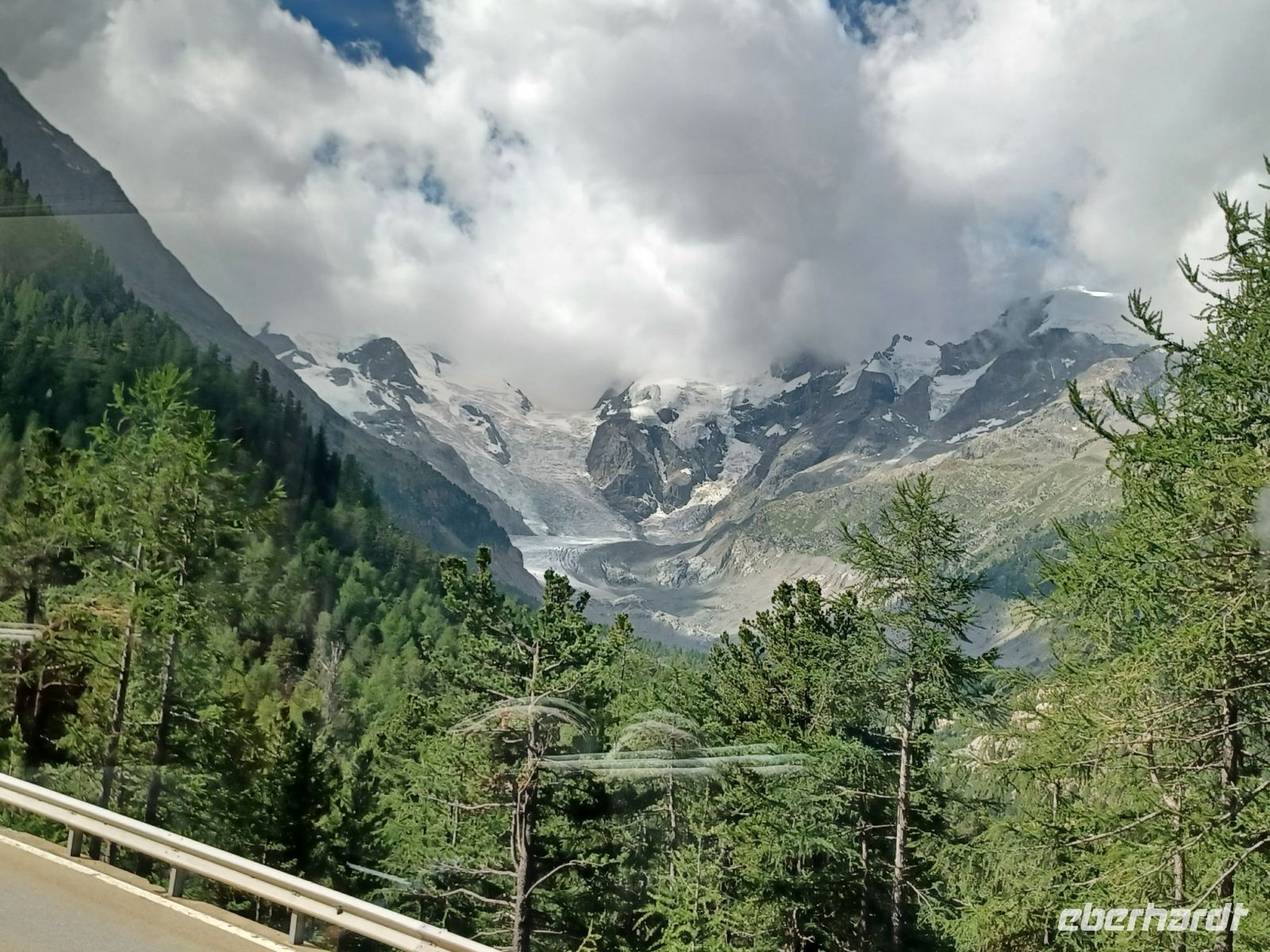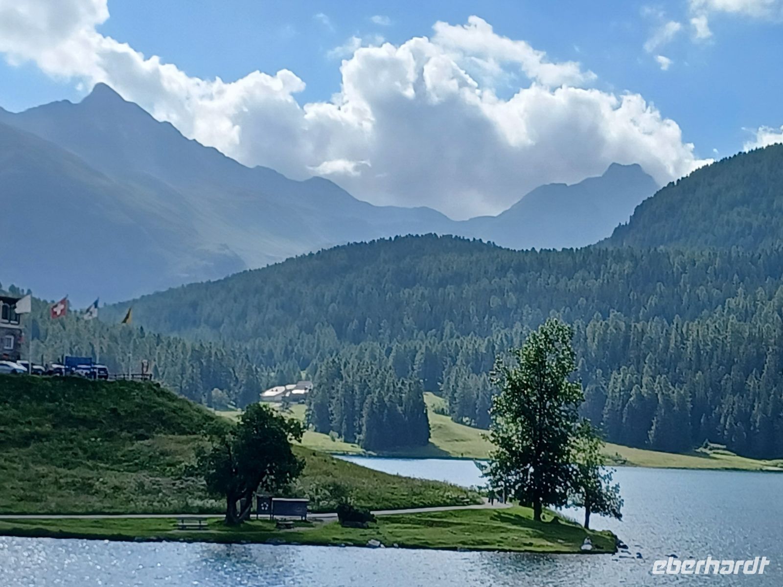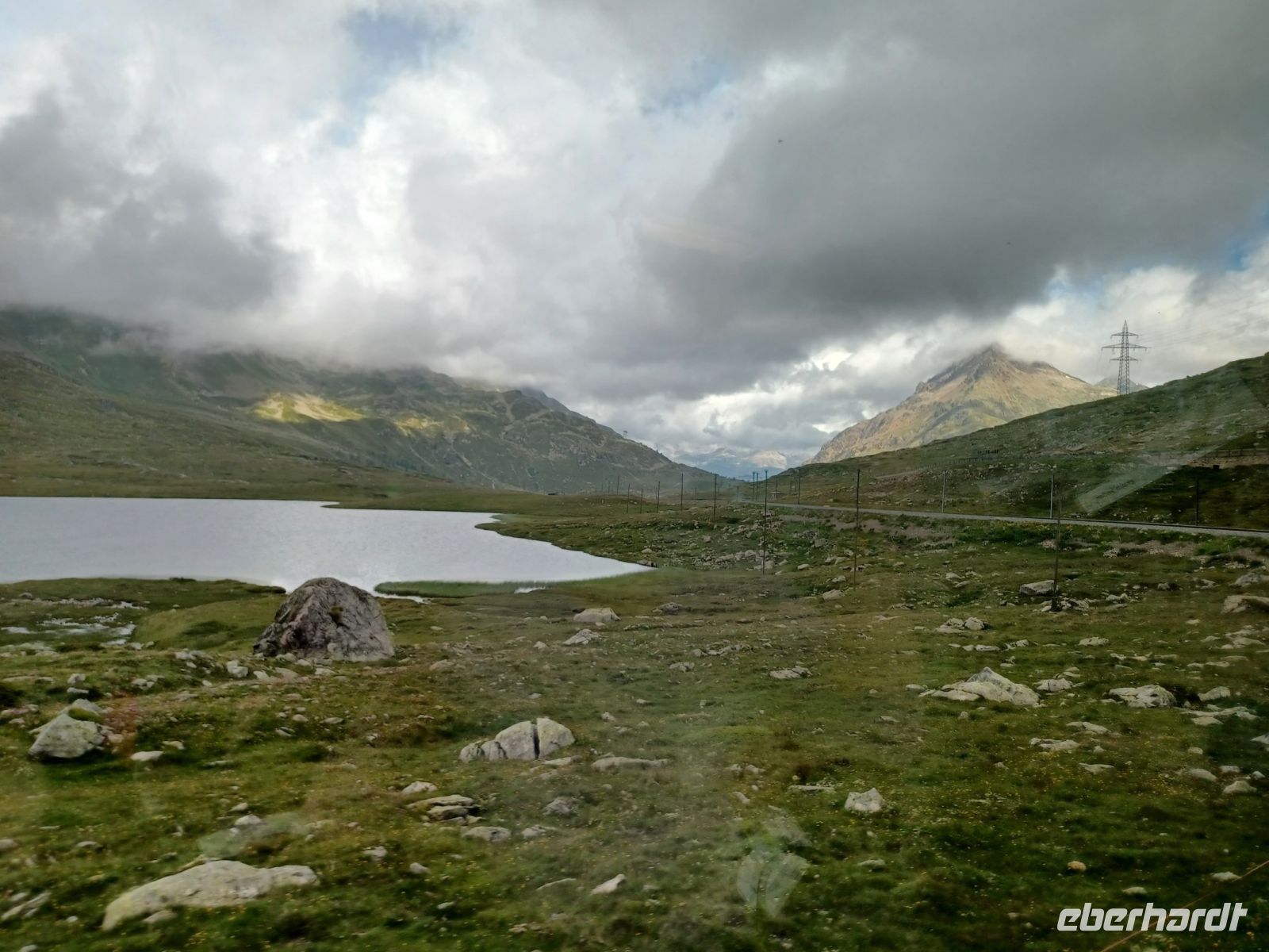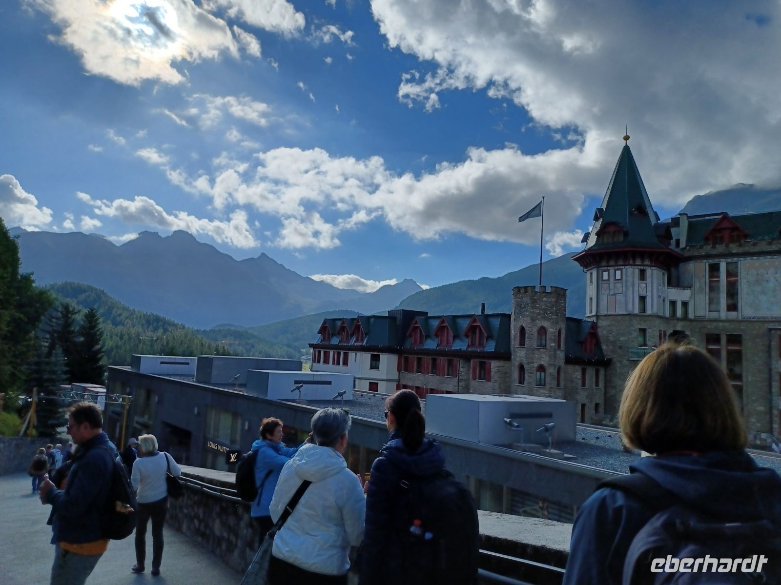 Nach dem langen Sitzen im Zug tut uns der kleine Gang am Moritzer See gut. Leichter Regen u. Wind sind eine gute Erfrischung zur Hitze der letzten Tage. Durch einen kleinen Rundgang durch das eher bescheidene Zentrum von St. Moritz stellen wir uns das mondäne Dorf zur Wintersportzeit vor. Heute wirkt es auf uns eher beschaulich. Wir beziehen unser Hotel, das anlässlich der Olympischen Winterspiele 1928 erbaut wurde. Gegen 22 Uhr schließen Rezeption u. Gastronomie-Zeit auch für uns von diesem eindrucksvollen Tag auszuruhen.