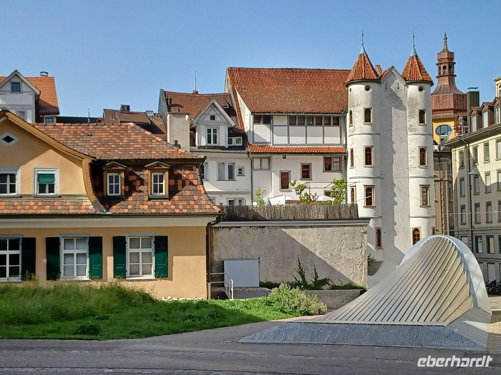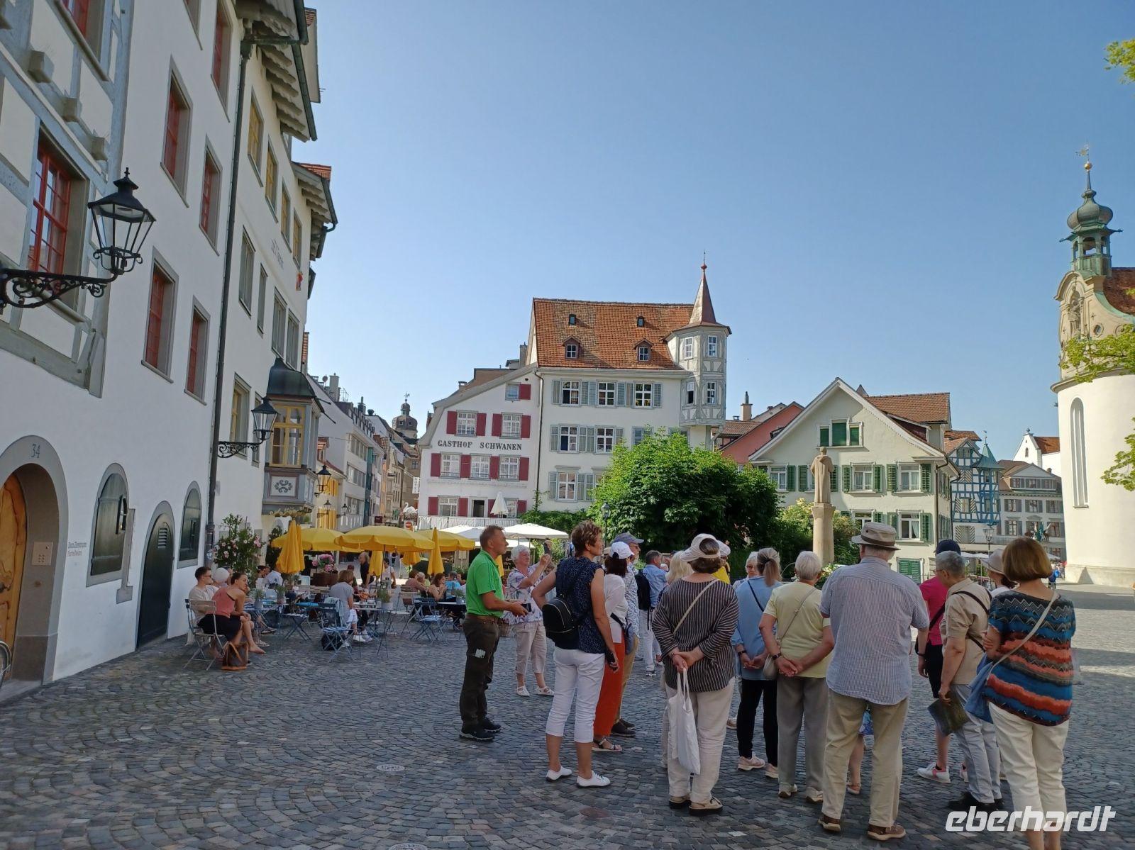 Schade ist, dass die viel erwähnte Stiftsbibliothek zum Zeitpunkt der Stadtführung bereits geschlossen ist. Das bunte Treiben eines Willkommensstadtfestes für Neubürger aus verschiedenen Ländern sowie ein Junggesellenabschied beleben die Innenstadt, die ansonsten am Wochenende einen ruhigen Eindruck macht. In der Freizeit vor dem Abendessen begeben sich einige Gäste noch mit der Mühleggbahn, einem Schrägaufzug als Standseilbahn, hinauf zum Naherholungsgebiet Drei Weiheren mit dem Männerweiher, Bubenweiher u. Frauenweiher (Überwindung von 69 m). Von der Bergstation erreicht man über einen kurzen Fussmarsch einen Höhenweg über den 3 Weihern, der einen wunderbaren Blick auf die Stadt bietet.