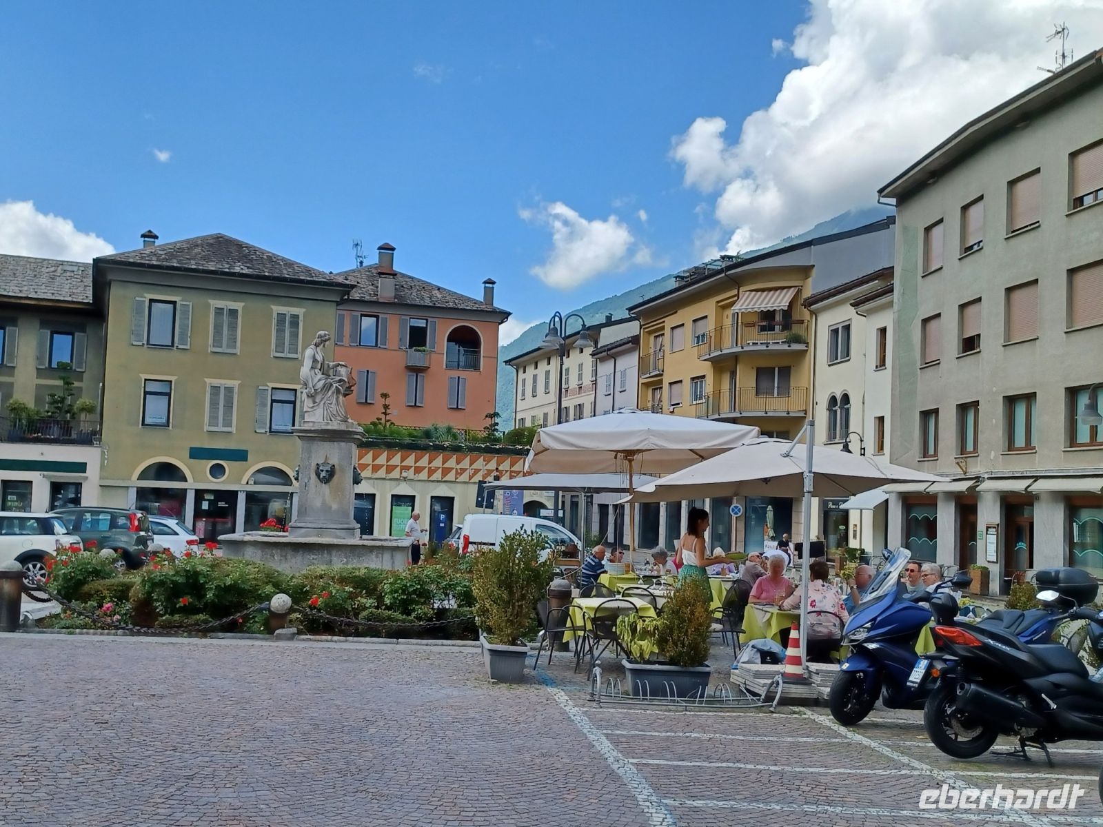 Fast schon regulär planen wir den Weg zum Bahnhof um 8:15 Uhr. Schließlich haben wir uns an diese Frühzeit gewöhnt. Wir folgen dem allgemeinen Wunsch den Eindruck von Lugano noch einmal aufzufangen. Daher nehmen wir den Weg am See entlang und biegen in die Altstadt zum wohl bekanntesten Platz, dem Piazza della Reforma ein. Hier befindet sich das Rathaus; bunte Hausfassaden mit klappbaren Fensterläden u. Strassencafés säumen den Platz. Wir schlängeln uns durch die autofreie Innenstadt wieder zur kürzesten Seilbahn der Welt mit 3 Minuten Fahrtzeit. u. besteigen am Kopfbahnhof den Gotthard Express in der 1. Klasse. Nicht nur der Wagen gehört uns, sondern auch der Zugbegleiter René, der uns witzig u. voller Streckeninformationen unterhaltsam begleitet. Wir erfahren Details zur Geschichte des Tunnelbaus durch St. Gotthard, lauschen den Geschichten über die Entwicklung des Bahnwesens der Schweiz u. bewundern die ingenieurtechnischen Meisterwerke. Unsere Hochachtung gilt den Unternehmern, die hier ihr Risikokapital einbrachten sowie den Hunderten von Bauleuten, die unter schweren Bedingungen die Tunnel bauten, darunter viele ihr Leben ließen.