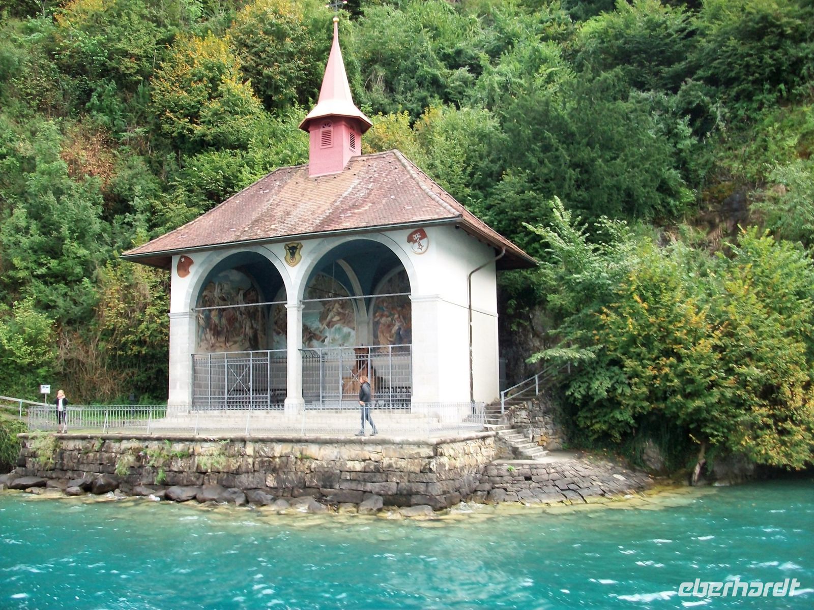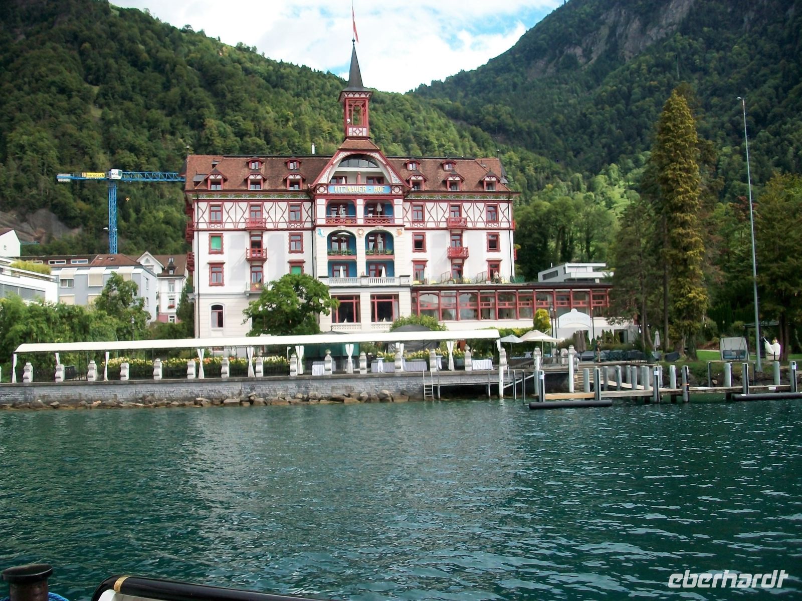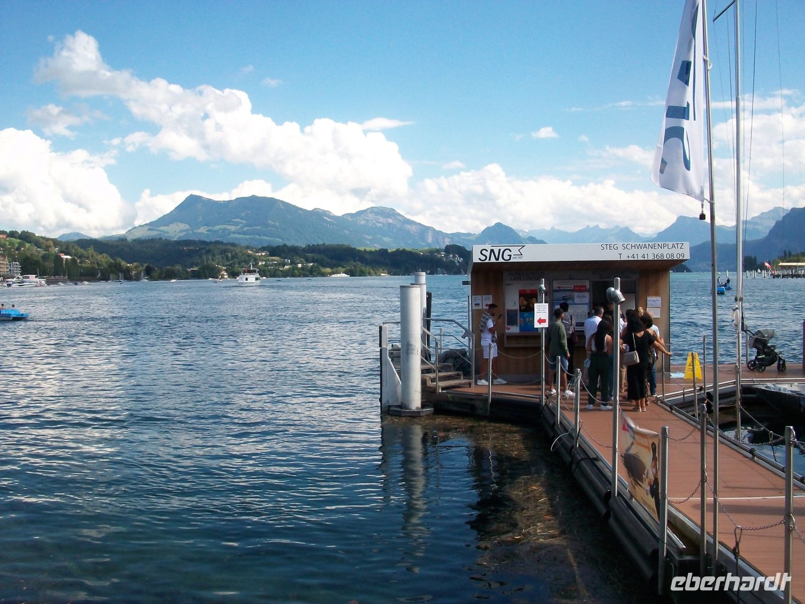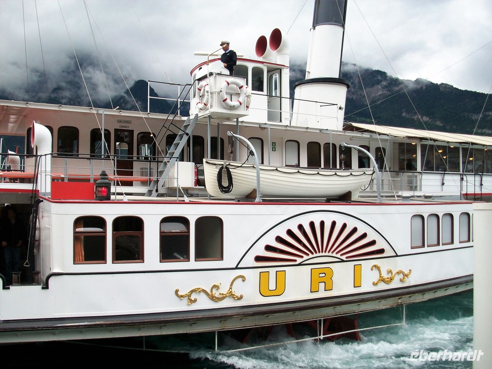 In Flüelen endet die Zugfahrt; unsere Reiseleiterin auf dem Zug verabschiedet sich und schon nach knapp einer halben Stunde kommt der Dampfer angeschnauft der uns ans andere Ende des Vierwaldstätter Sees, nach Luzern bringen wird.