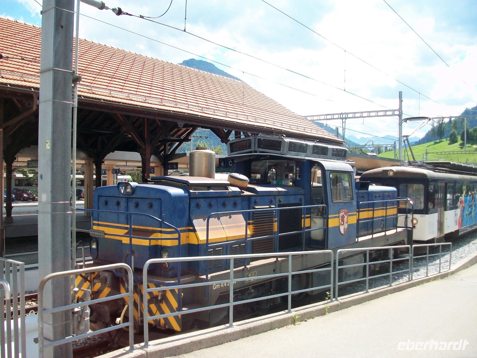 Weiter geht die Fahrt; hinter dem malerischen Ort Andermatt erklimmen wir die Höhen des Oberalppasses, uns umgeben die schneebedeckten Gipfel schroffer Berge und als wir zu Tal fahren, legen wir einen Halt in Disentis ein; hier wird die Lok gewechselt.