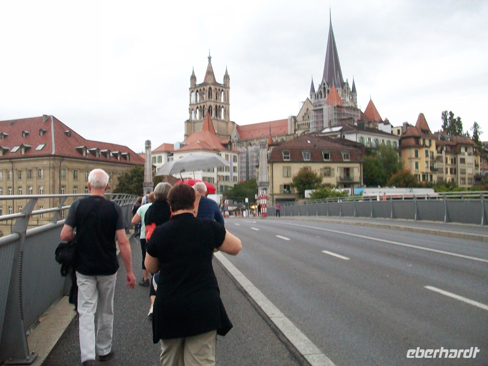 6.9.2022. Nun haben wir an diesem Vormittag noch Zeit, Lausanne, die Stadt am Genfer See, zu erkunden. Zu diesem Zweck dürfen wir Irene begrüßen; sie wird uns mit viel Charme ihre Heimatstadt näherbringen. Allerdings hat sich an diesem Vormittag der Himmel bezogen und, als wir zur Metro laufen, zucken vereinzelte Blitze über dem See. Dann geht es hinauf zur oberen Stadt; unser erstes Ziel ist die berühmte Kathedrale: Notre Dame.