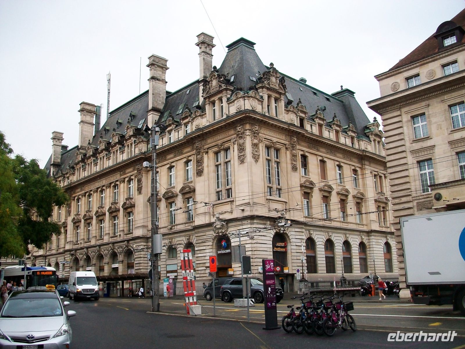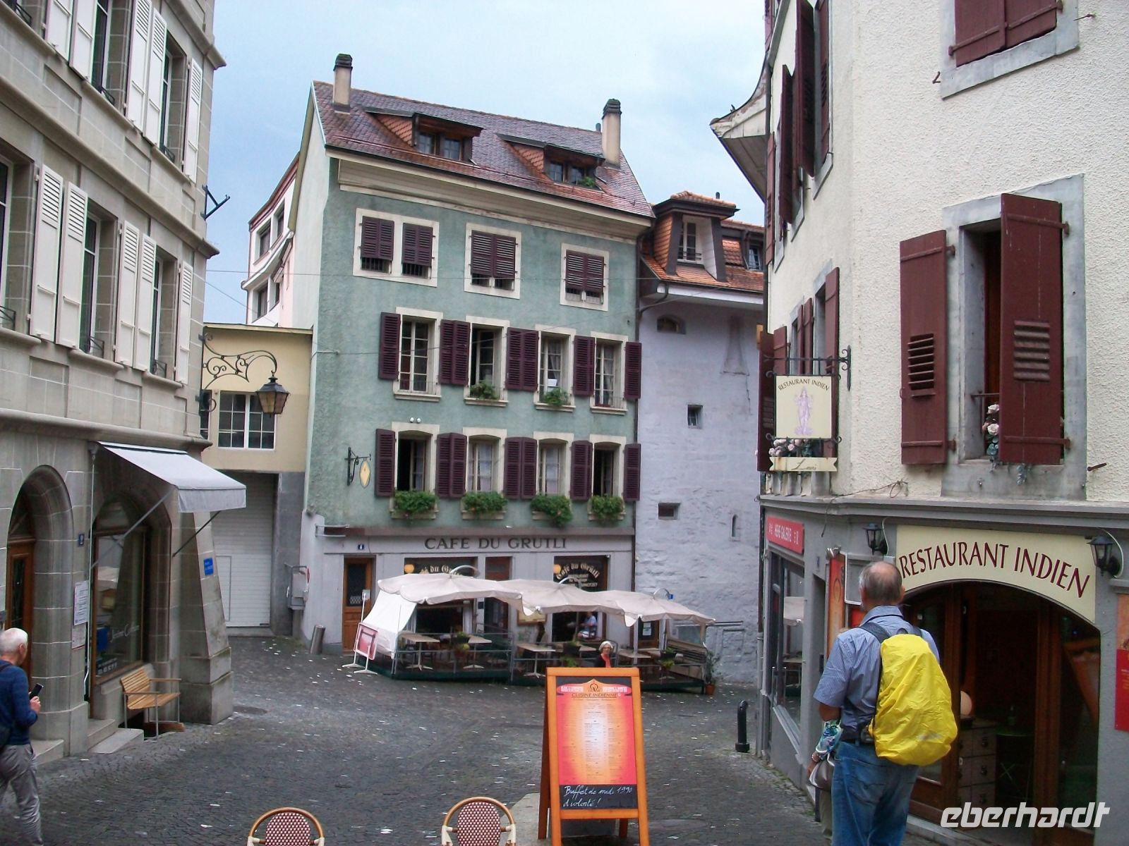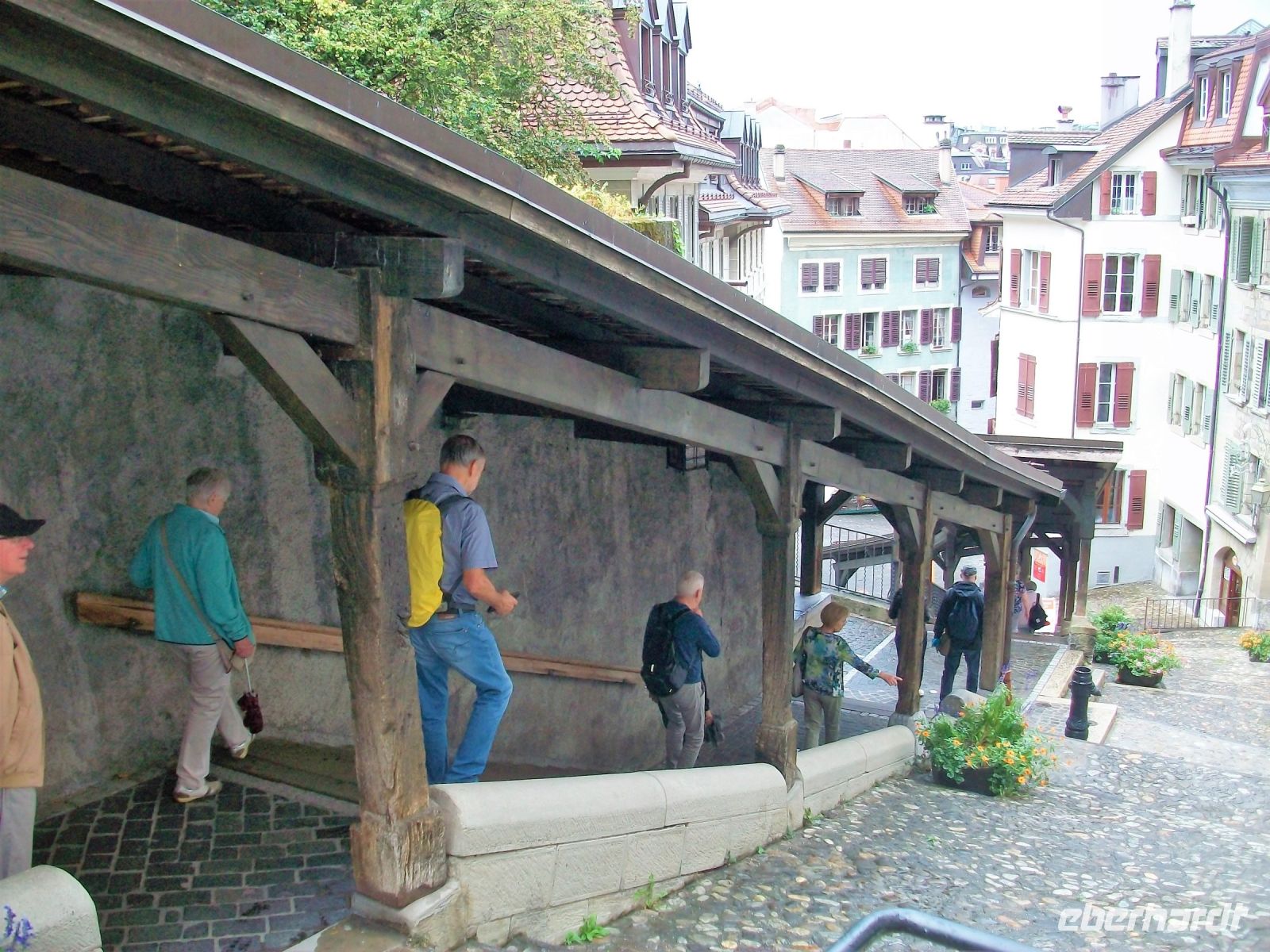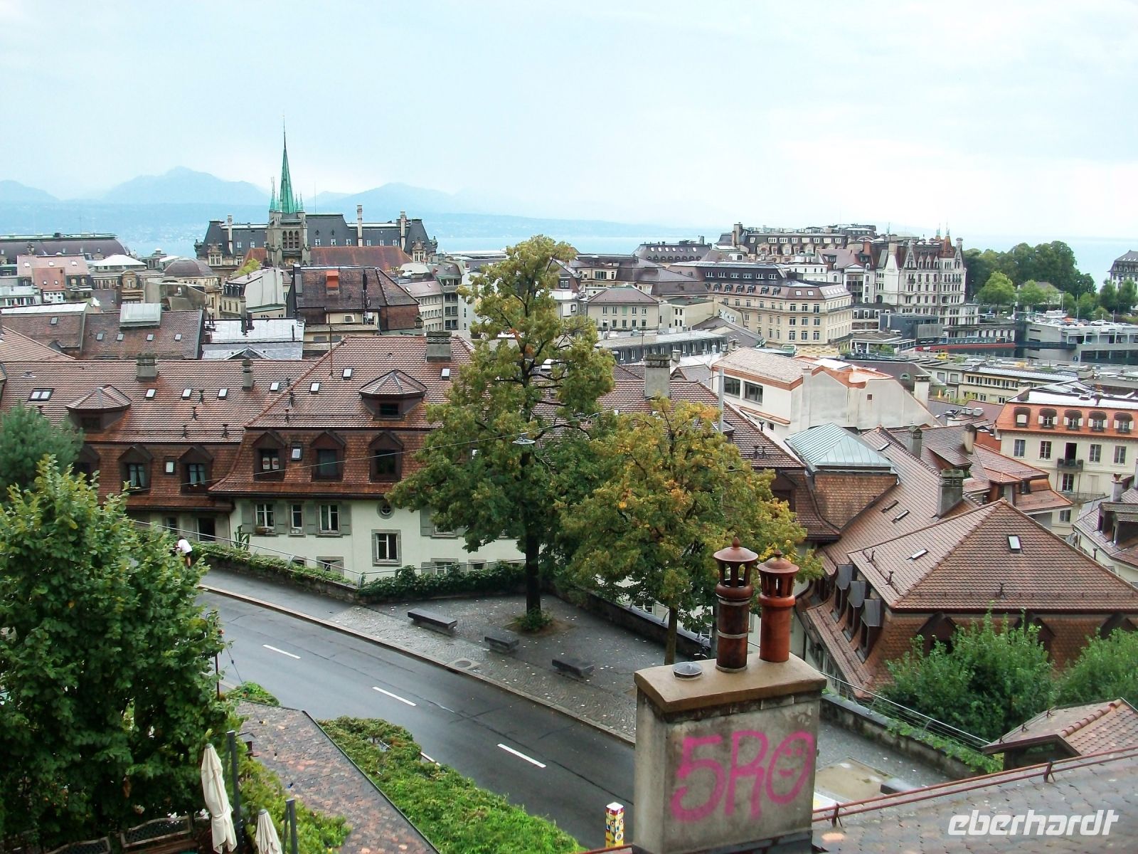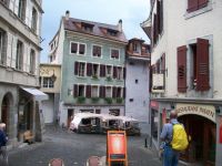 Als wir die Kathedrale verlassen, tröpfelt es nur noch leicht und die Sonne kämpft tapfer gegen die Wolken an. Hier oben genießen wir ein wunderschönes Panorama über Lausanne und den Genfer See von welchem die Berge steil ansteigen. Eine uralte überdachte Treppe führt uns dann hinunter zum Markt, auch hier gibt es noch sehenswerte Häuser und Kirchen. An diesem malerischen Ort verabschiedet sich Irene von uns und nun können wir noch etwas Freizeit in Lausanne bis zum zeitigen Nachmittag verbringen.