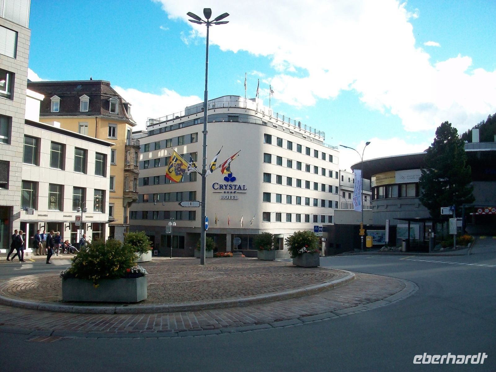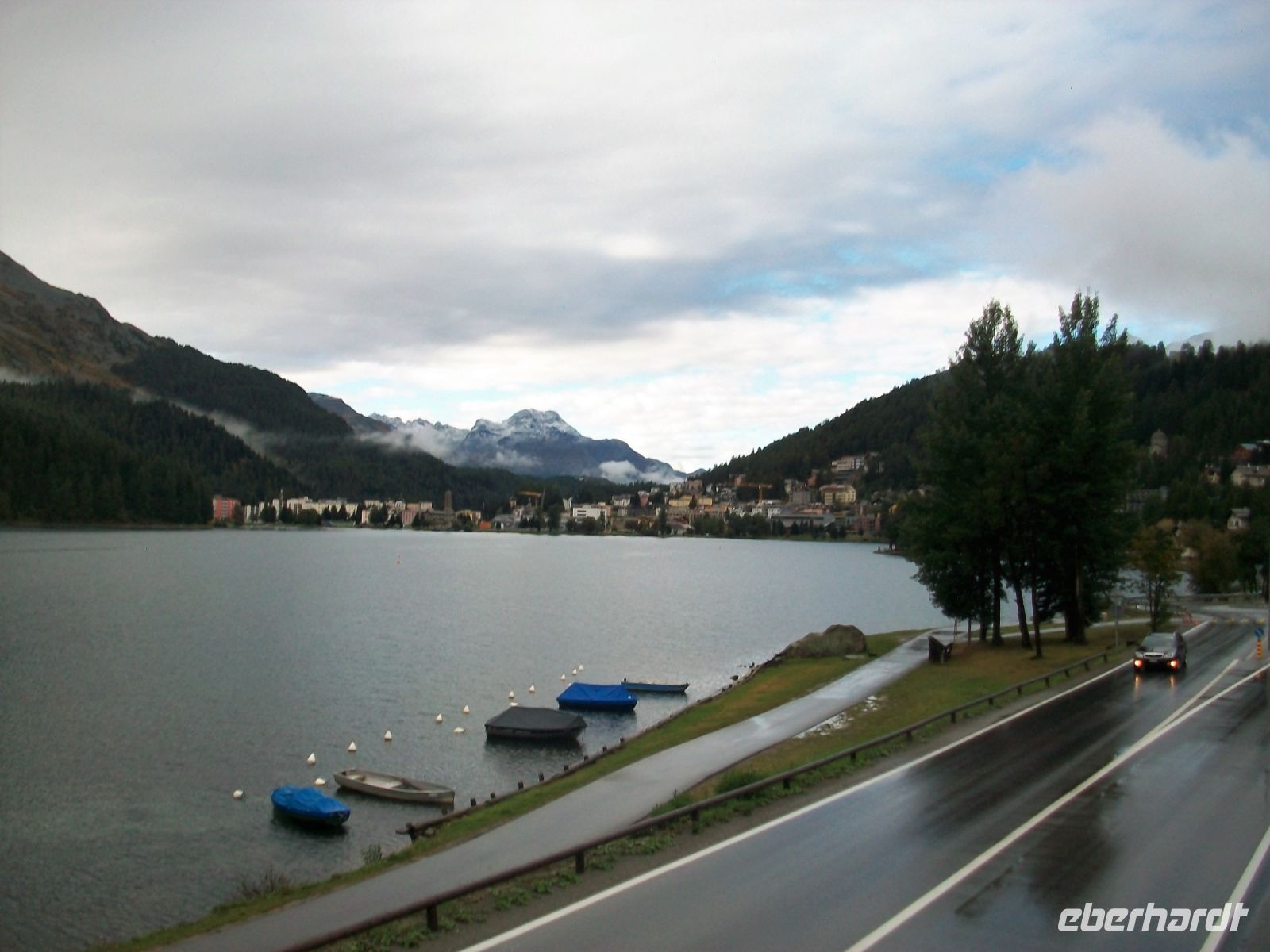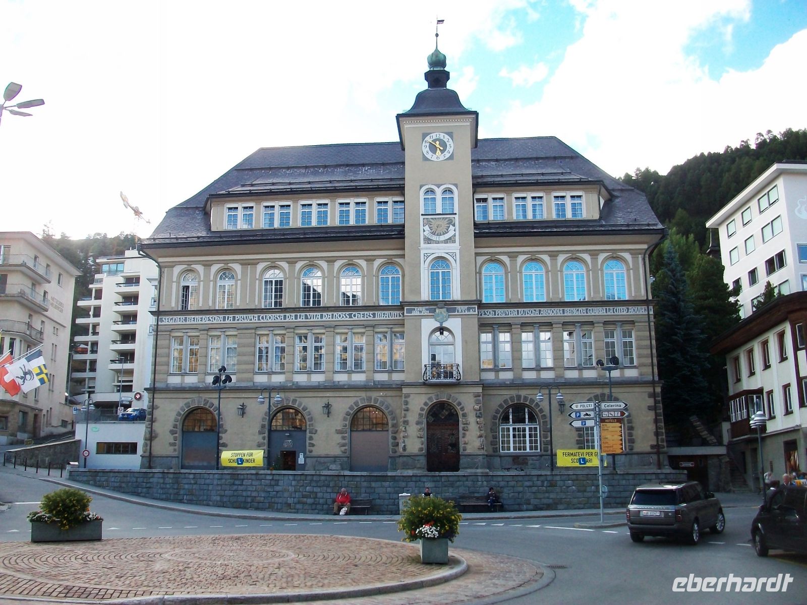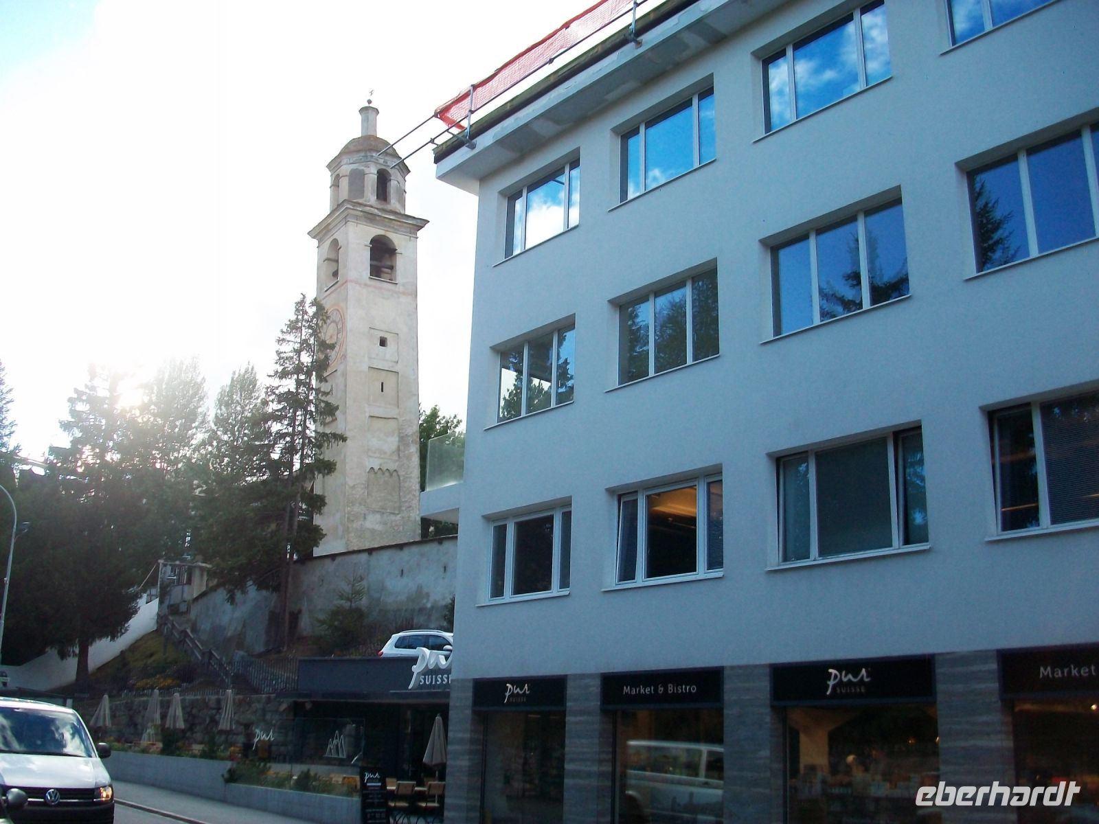 Als wir an unserem Ziel Sankt Moritz aussteigen begleitet uns die Abendsonne auf dem Weg zu unserem schönen Hotel.