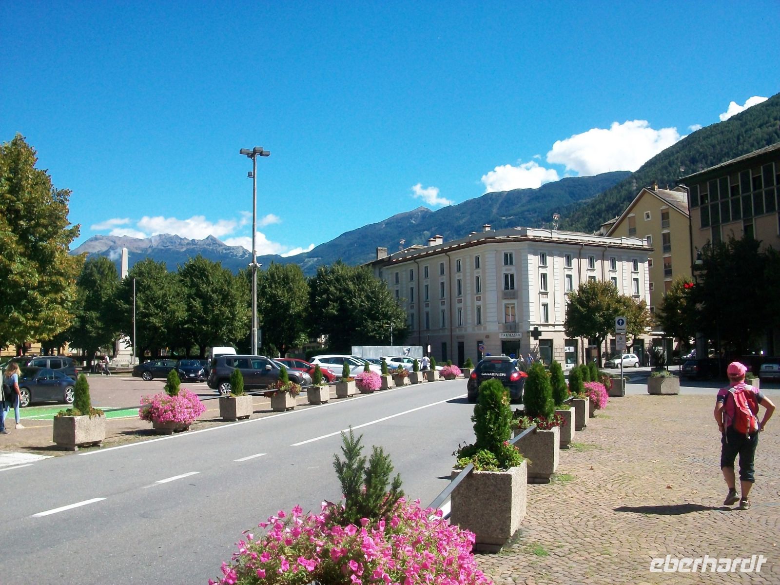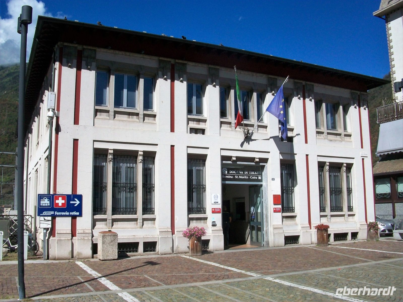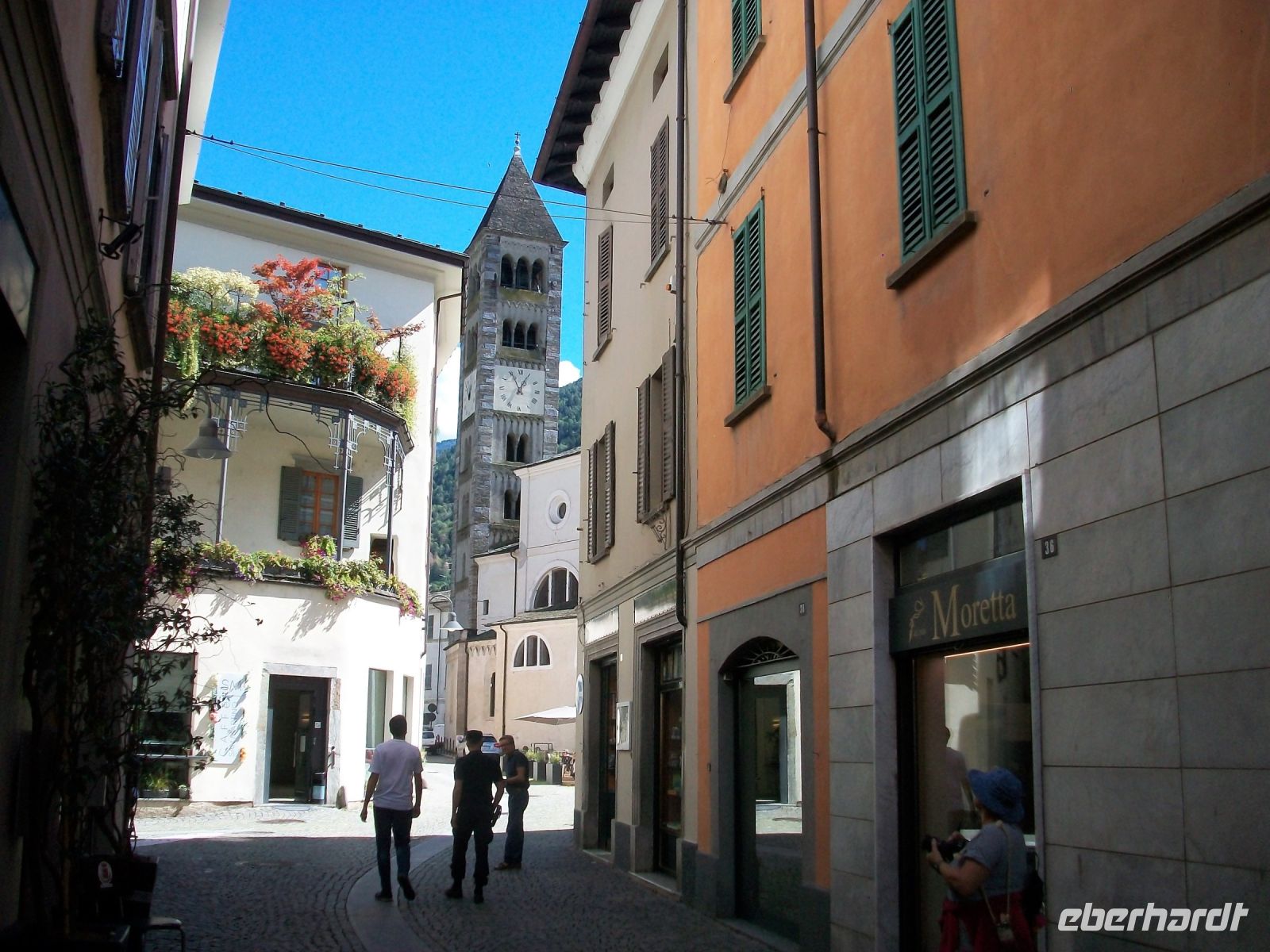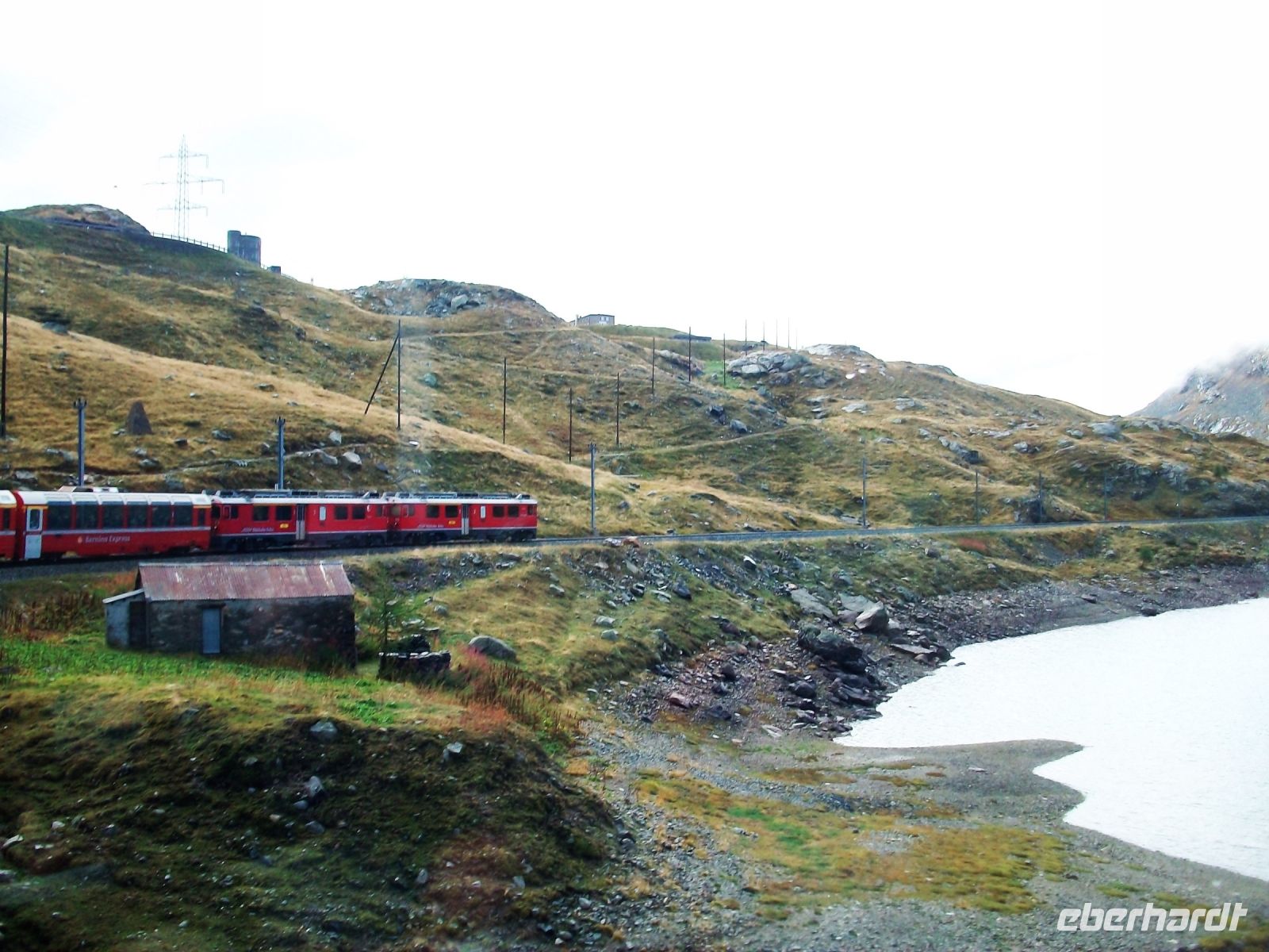 9.9.2022. Als ich an diesem Morgen aus dem Fenster blicke, netzt leichter Regen die Straße vor dem Hotel. Nach kräftigendem Frühstück hat sich unsere Reisegesellschaft erwartungsvoll versammelt und ab geht es durch die feucht - kühle Morgenluft des Gebirgsdorfes hinunter zum Bahnhof. Entlang des romantischen Sees gelangen wir zum Bahnsteig und wenig später haben wir es uns auf den weichen Polstern des Bernina - Express bequem gemacht. Am heutigen Tag werden wir mehrere Klimazonen kennenlernen. Gleich nach dem Bahnhof Pontresina ist rechts der mächtige Morteratsch - Gletscher zu sehen. In Schleifen steigen wir nun an und als wir die Passhöhe des Bernina erreicht haben, befinden wir uns in der kargen Landschaft des Hochgebirges. Aber hier halten wir uns nicht lange auf; über zahlreiche Kehrtunnel geht es nun hinunter nach Süden in das mediterrane Klima. Viel gibt es auch hier zu sehen: Den Ort Pontresina mit seinen uralten Häusern, gefolgt vom gleichnamigen malerischen See und nach weiteren Kilometern gelangen wir über das Kreisviadukt bei Brusio. Nach Überschreiten der Grenze nach Italien endet die Fahrt im lombardischen Nest Tirano, hier verbleibt genügend Zeit für ein leckeres Essen beim Italiener.