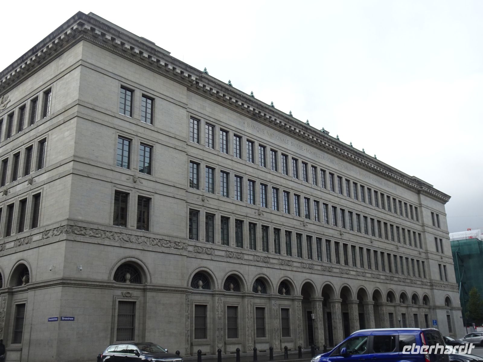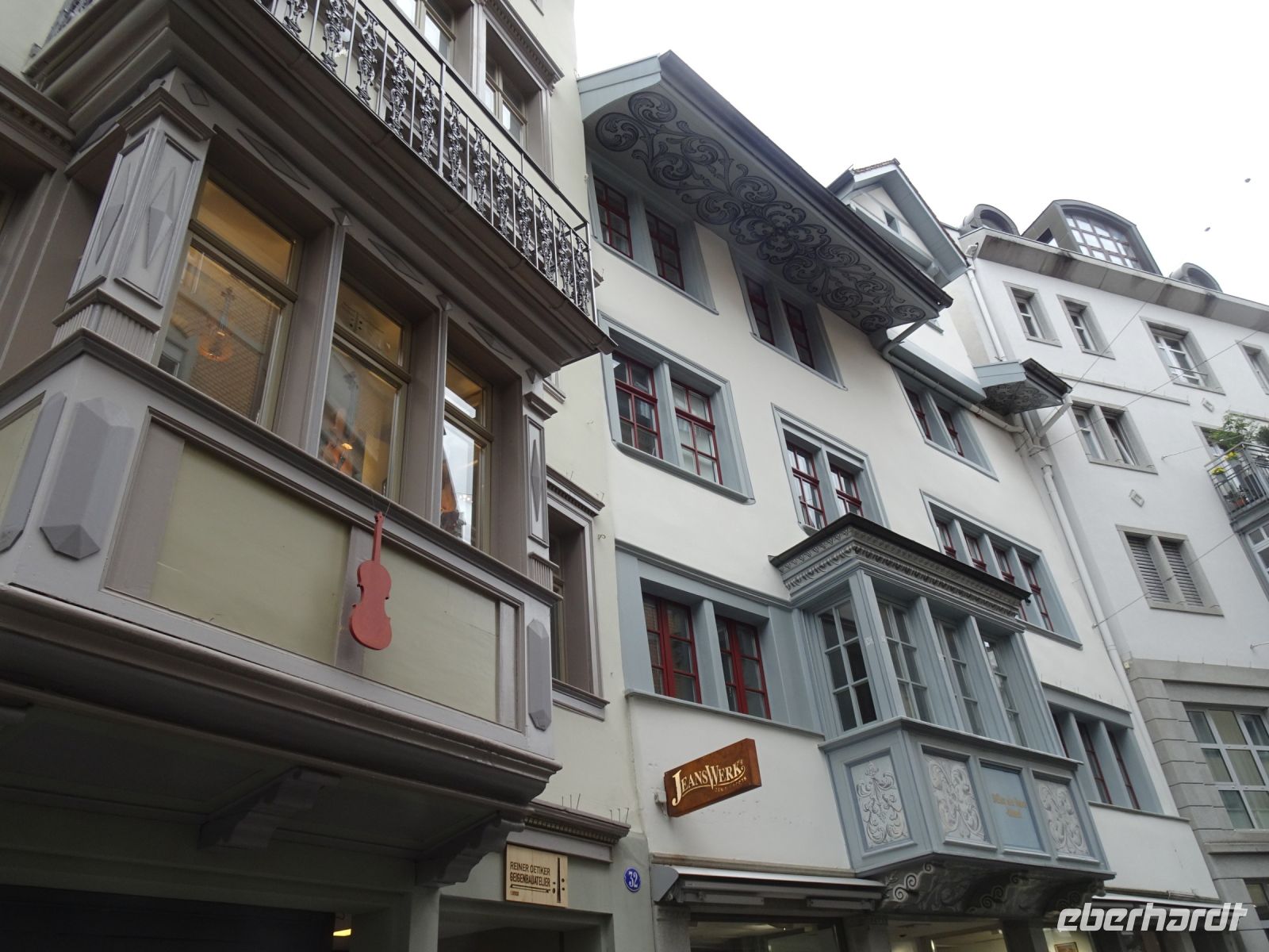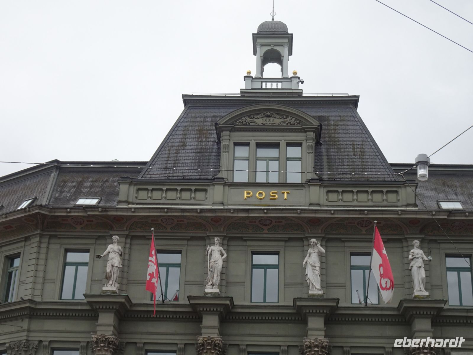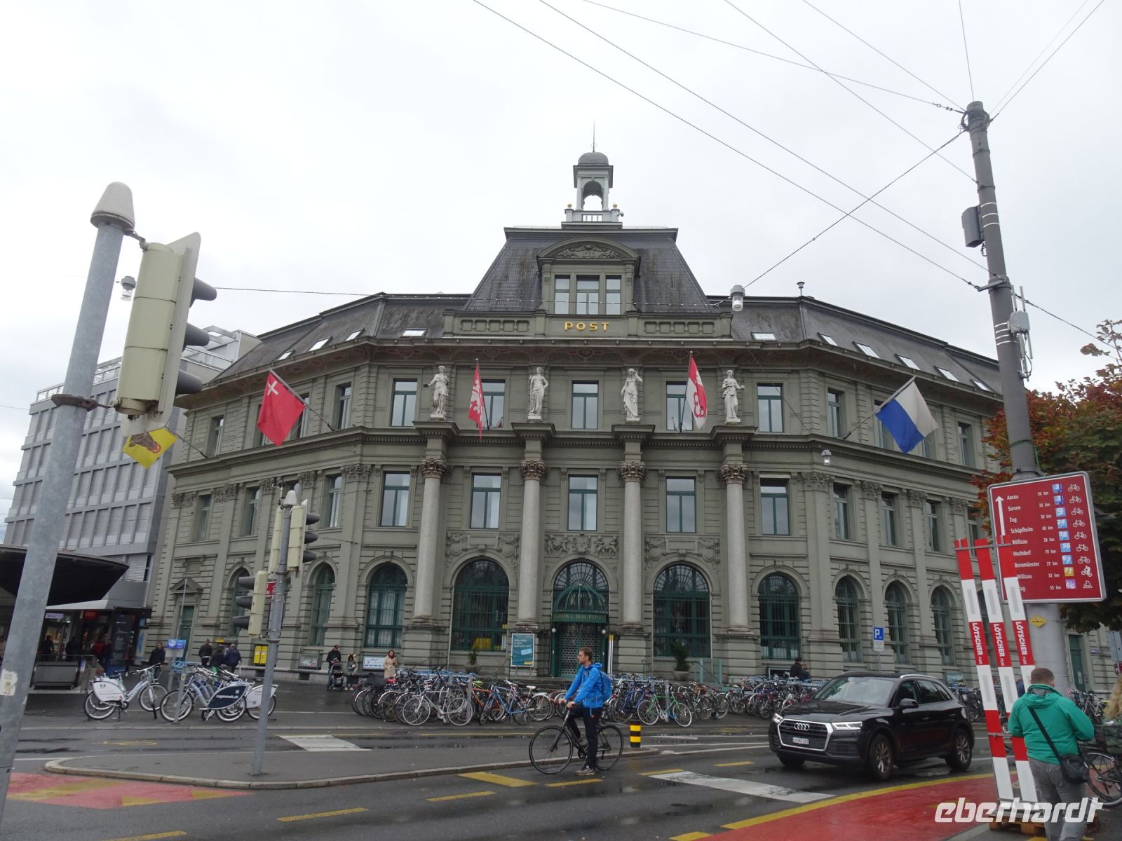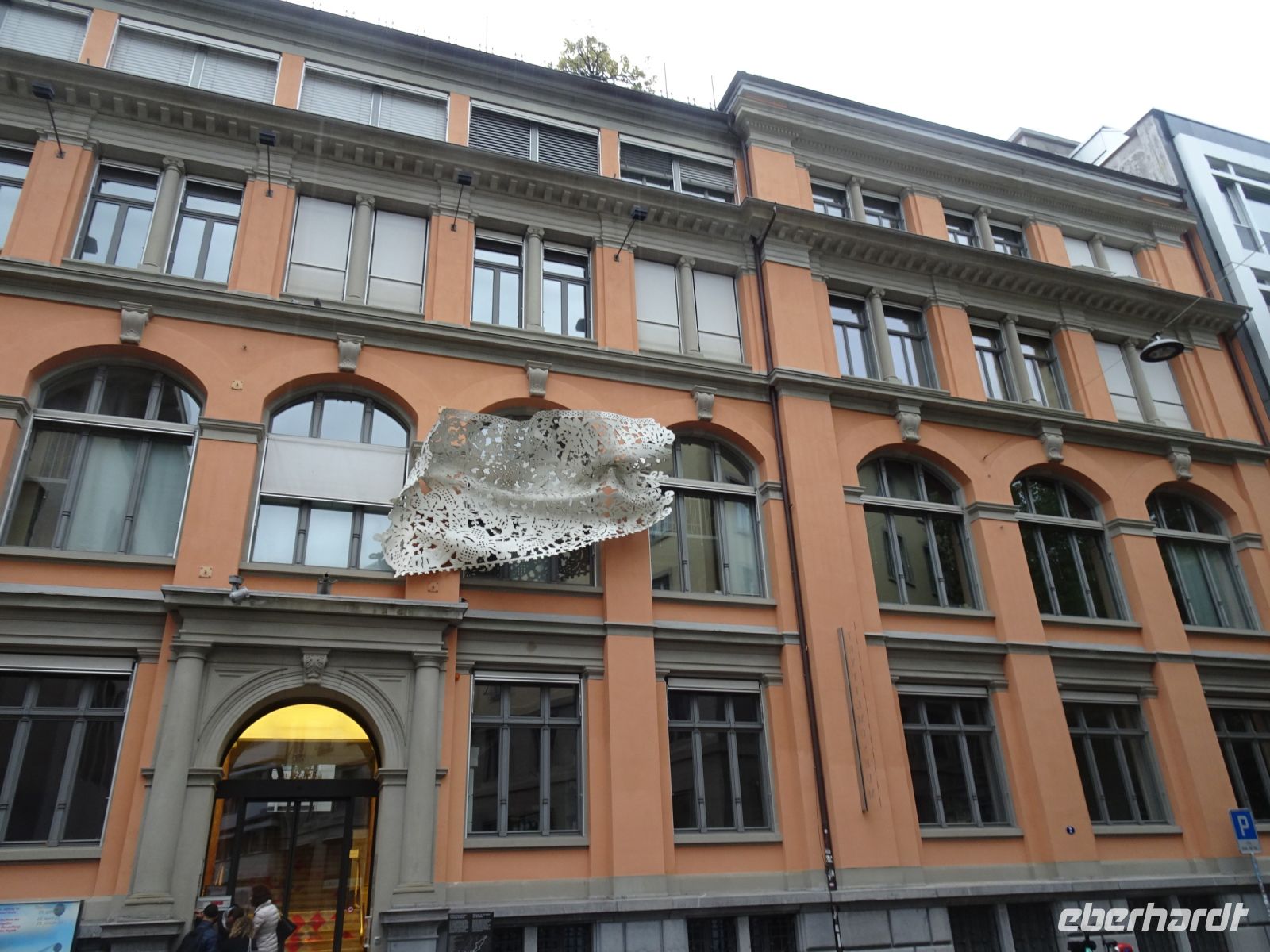 Durch den hochmodernen und in der historischen Substanz noch im Umbau befindlichen Bahnhof ging es am Denkmal von Alfred Escher vorbei in die Bahnhofsstraße. Mit geschlossenen Geschäften am heutigen Sonntag konnte man die Architektur dieser ersten Geschäftsstraße in der Schweiz noch besser genießen,