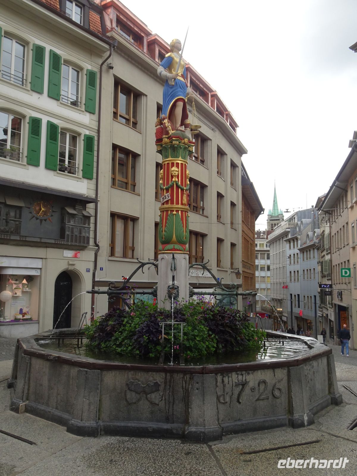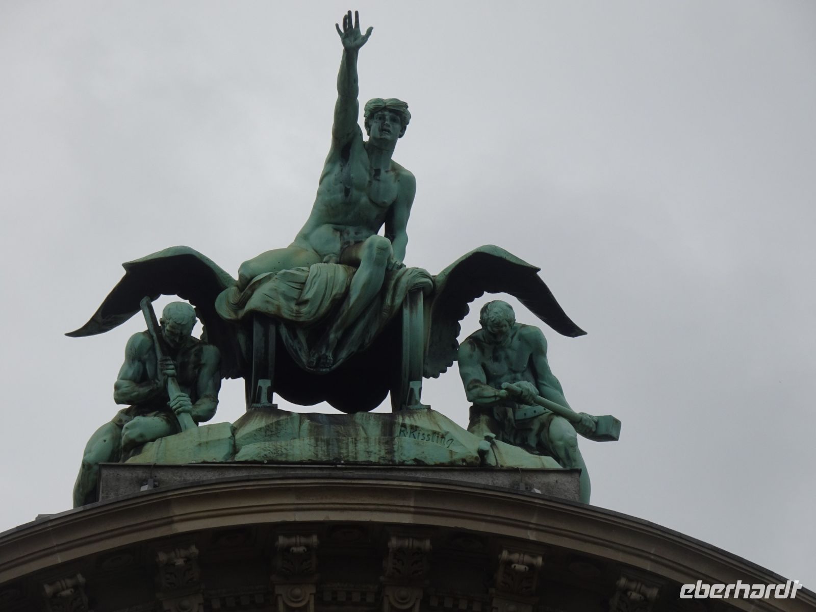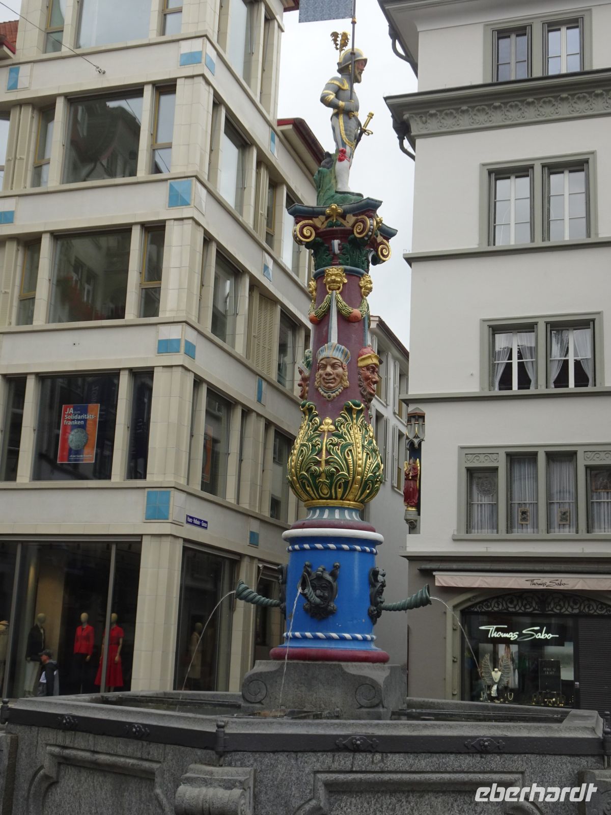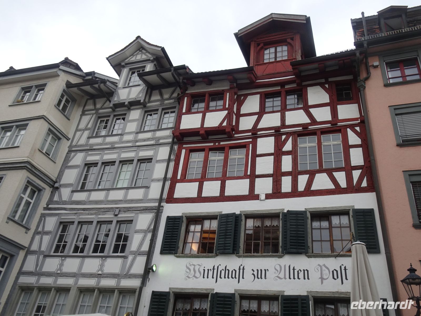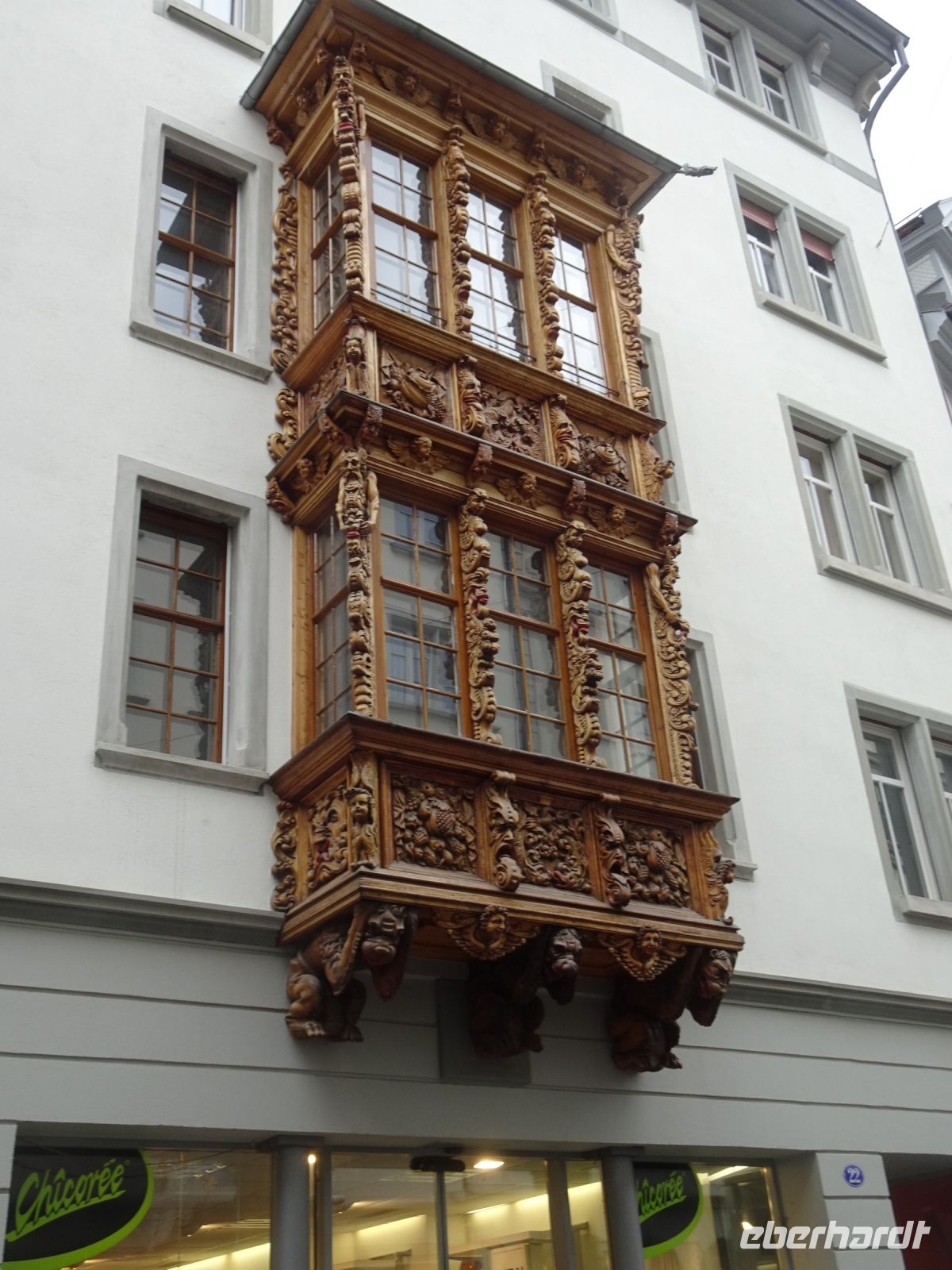 Durch den hochmodernen und in der historischen Substanz noch im Umbau befindlichen Bahnhof ging es am Denkmal von Alfred Escher vorbei in die Bahnhofsstraße. Mit geschlossenen Geschäften am heutigen Sonntag konnte man die Architektur dieser ersten Geschäftsstraße in der Schweiz noch besser genießen,