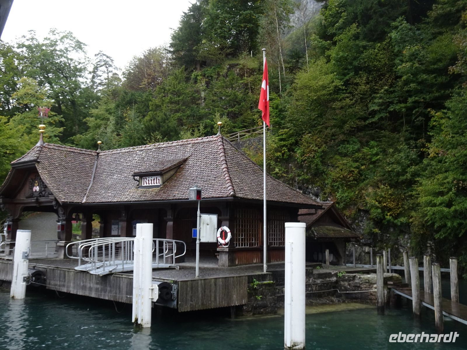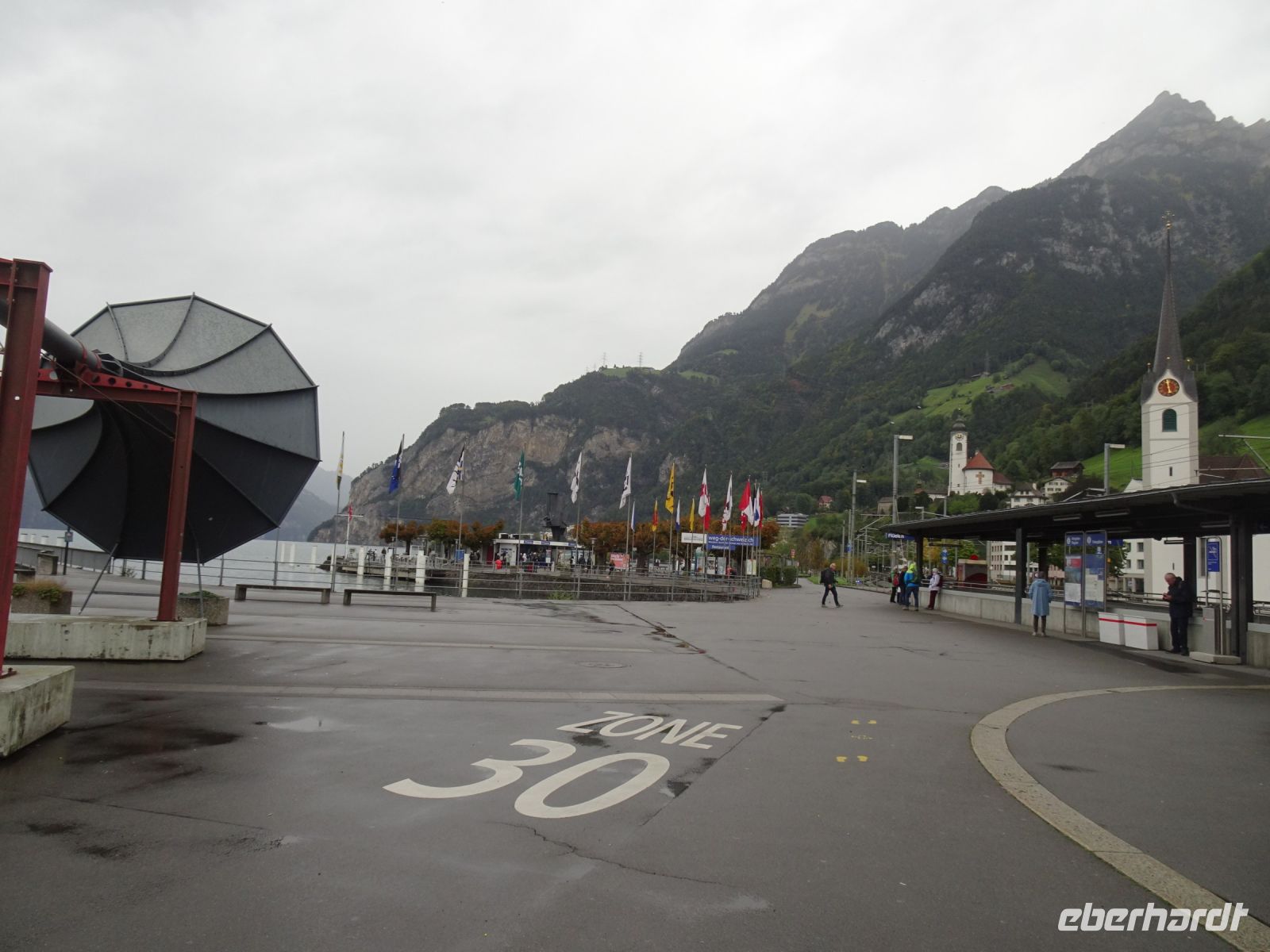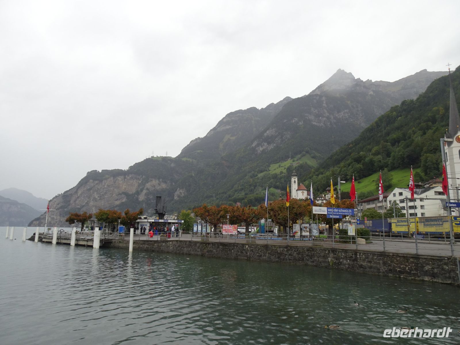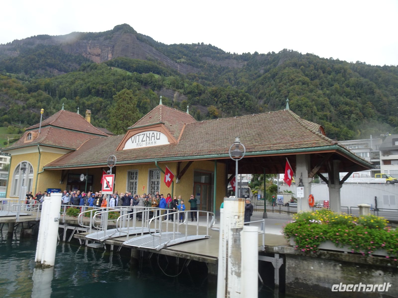 In Fluelen erwartete uns dann auf dem Vierwaldstättersee das Schiff Gotthardt, um vorbei an den Haltepunkten Tellsplatte und Rütli die tratitionsreichen Orte des Tellweges im Überblick kennenzulernen. Kurz zu sehen: der Gedenkstein für Friedrich Schiller im See. Ein Faltblatt an Bord gab weitergehende Erläuterungen. Nach fast 3 Stunden Fahrt, vorbei an den Orten Brunnen, Vitznau mit der Rigi-Auffahrt und Weggis, erreichten wir Luzern. Viele Schausteller am Ufer sorgten zwar für einen bunten Empfang, über ein besseres Wetter mit Sicht auch auf Bürgenstock und den Hausberg Pilatus hätten wir uns mehr gefreut....