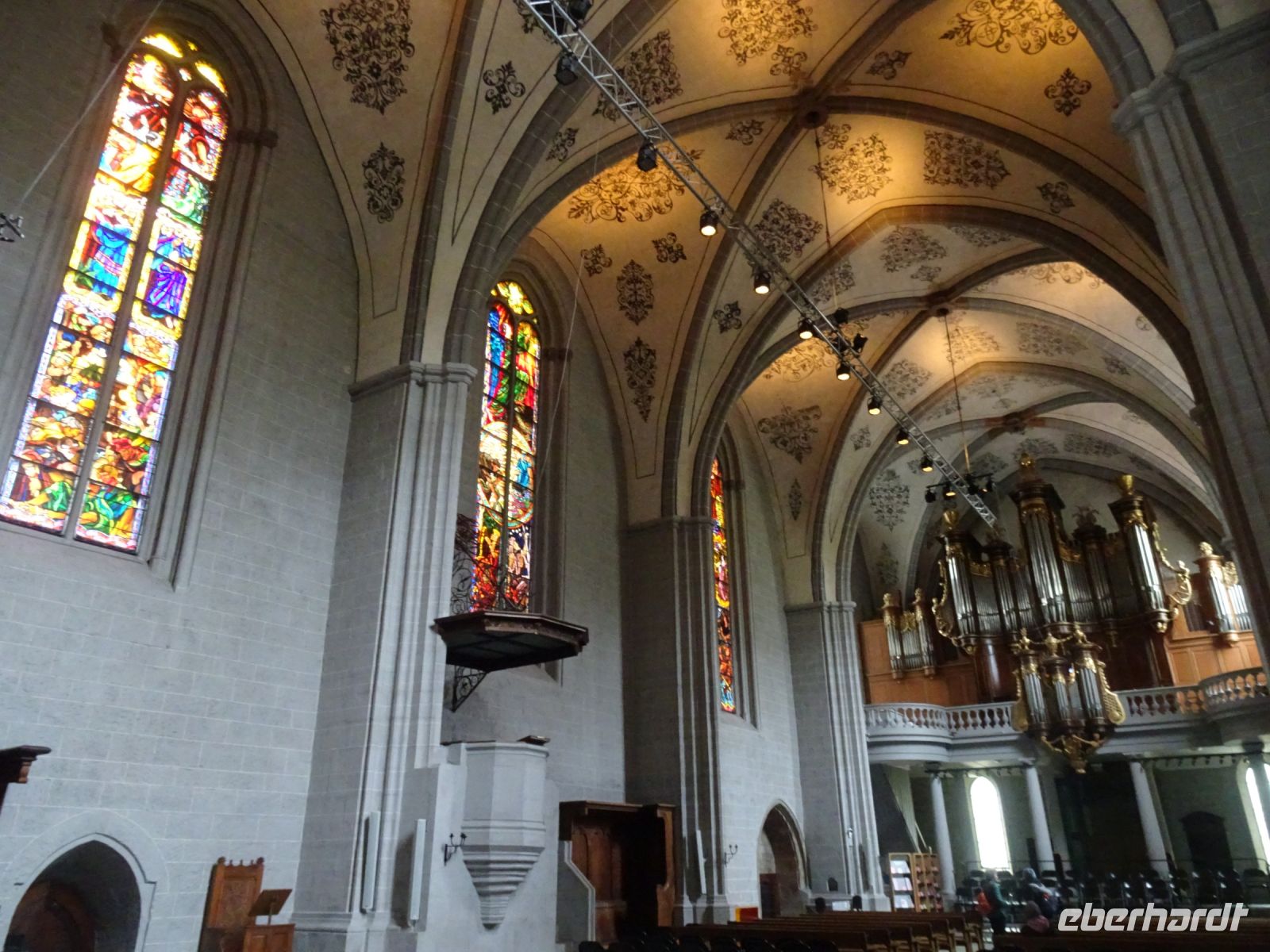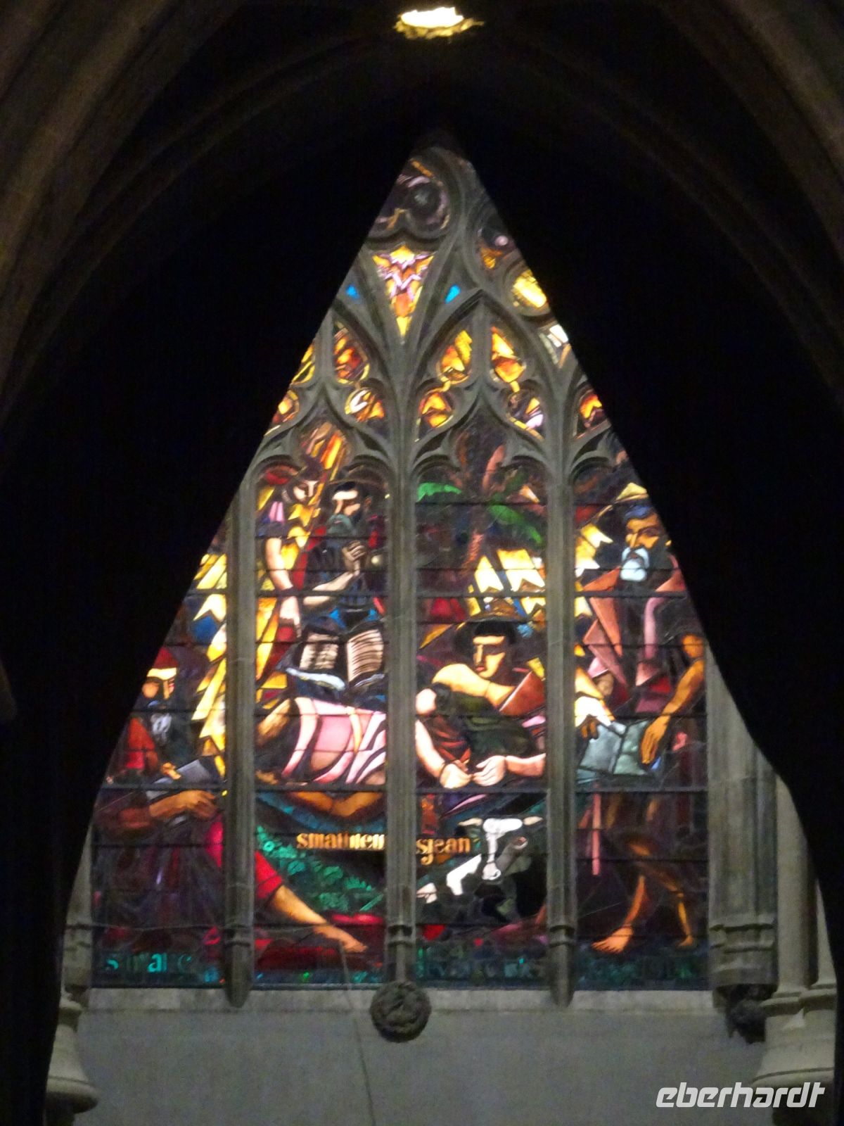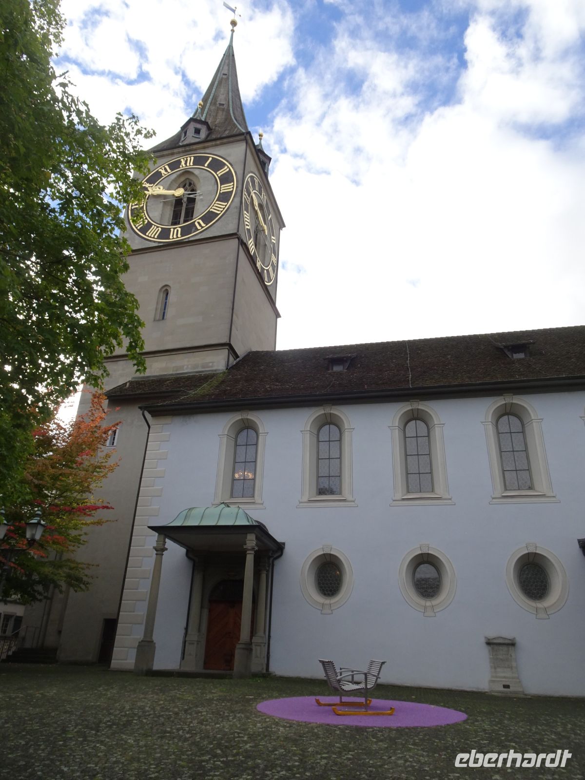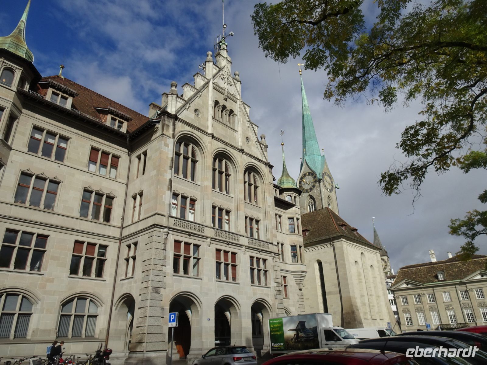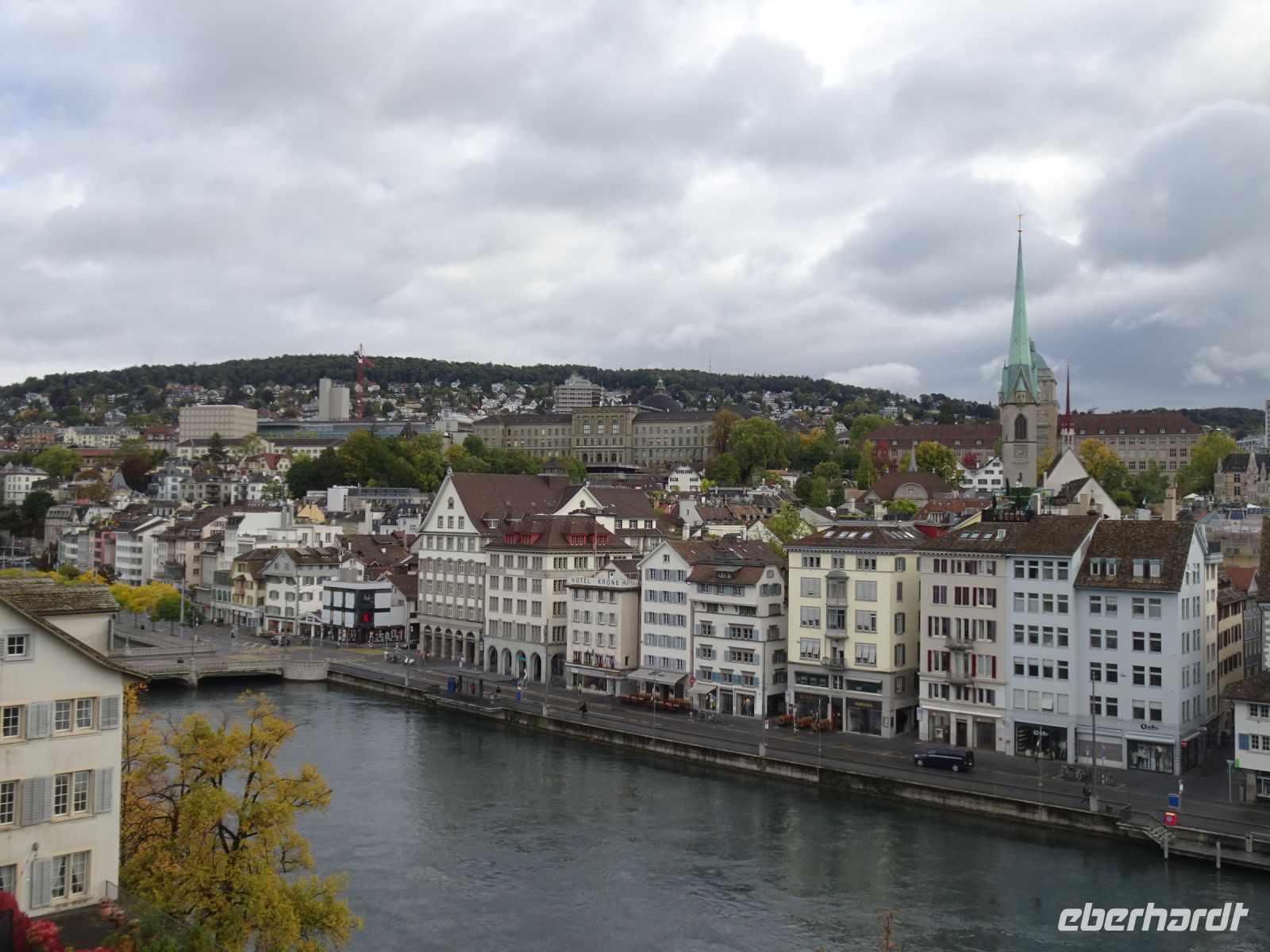 Dafür hat die Altstadt von Zürich mit den Innenstadtkirchen ein besseres Flair. Beim Geläut der Kirchen hatten wir die Möglichkeit, vor den Gottesdiensten noch eine kurzen Blick in St. Peter und das Fraumünster zu werfen. Die tollen Chagall-Fenster im Fraumünster hatten auch bei dem trüben Wetter noch eine besondere Strahlkraft. Vom Lindengarten hatten wir einen tollen Blick auf die rechte Seite des Limmat, auf das Großmünster und die von Gottfried Semper entworfenen Gebäude der Eidgenössischen Technischen Hochschule (ETH) Zürich. An der Uferpromenade des Zürichsees konnten wir die wunderbare Lage Zürichs genießen und hatten einen erstklassigen Blick auf die ufernahem exklusiven Wohnlagen.