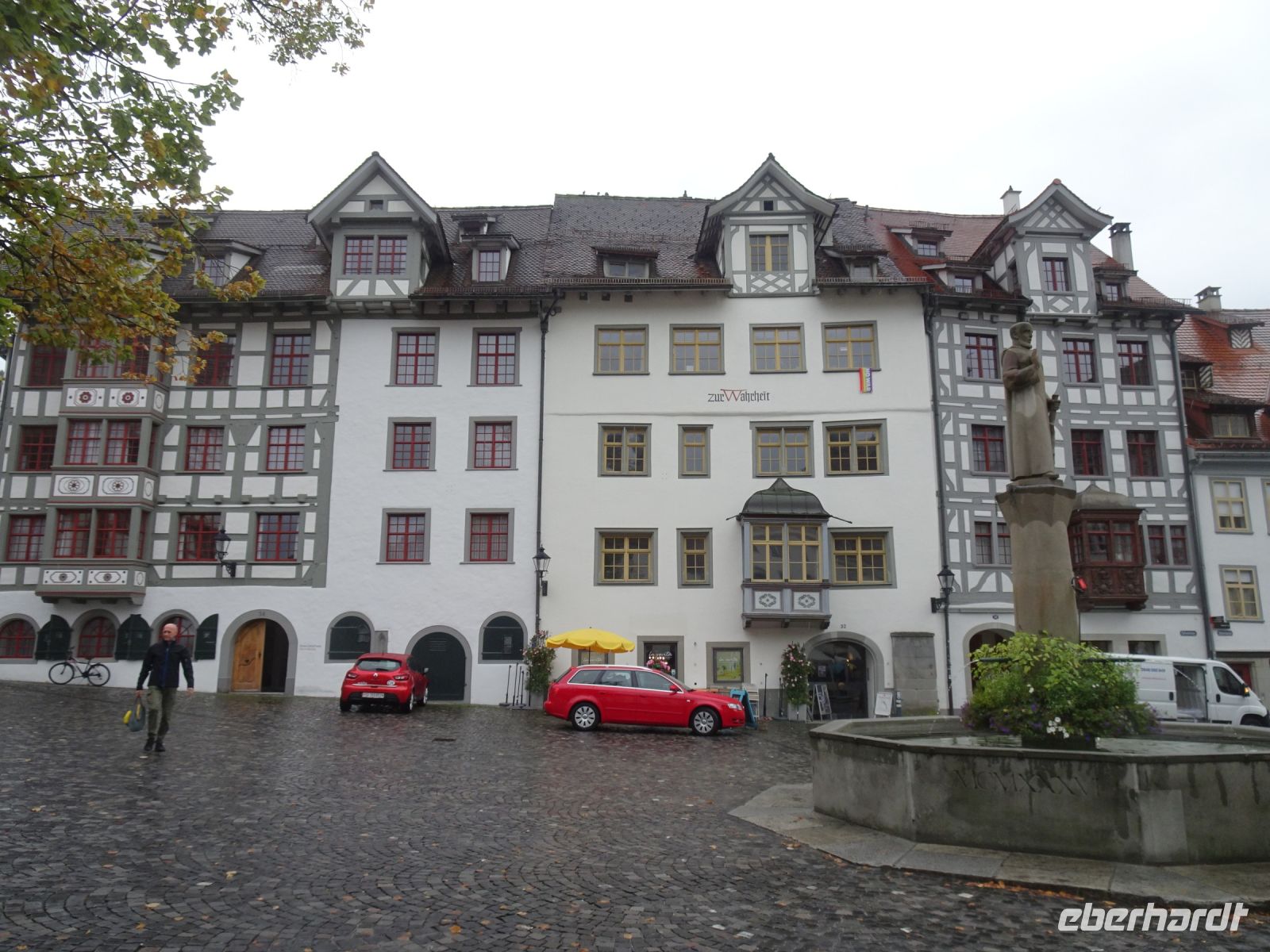 Nachdem unsere mit 18 Teilnehmern überschaubare Reisegruppe aus allen Ecken Deutschlands in unserem First Class Hotel Einstein in St. Gallen eingetroffen war, gab es am Nachmittag des Anreisetages eine sehr interessante Stadtführung durch den dem Hotel benachbarten UNESCO-Welterbe Klosterbezirk. Gallus-Denkmal, Stiftsbibliothek, Stiftskirche St. Gallus und Othmar, Karlstor und die durch ihre über 110 Erker sehr interessante Altstadt gaben den Auftakt für unsere Reise, da wir ja nicht nur Bahnfahrten erleben, sondern auch die an den Strecken liegenden Orte und Sehenswürdigkeiten erkunden wollten. Unsere Tour endete am Textilmuseum und unterstrich damit sehr anschaulich die überragende Bedeutung der Textilindustrie in St. Gallen.