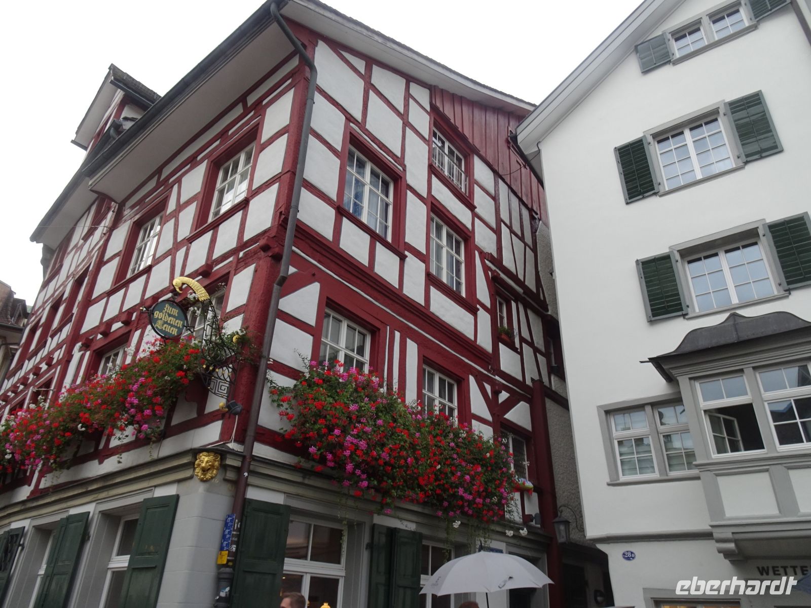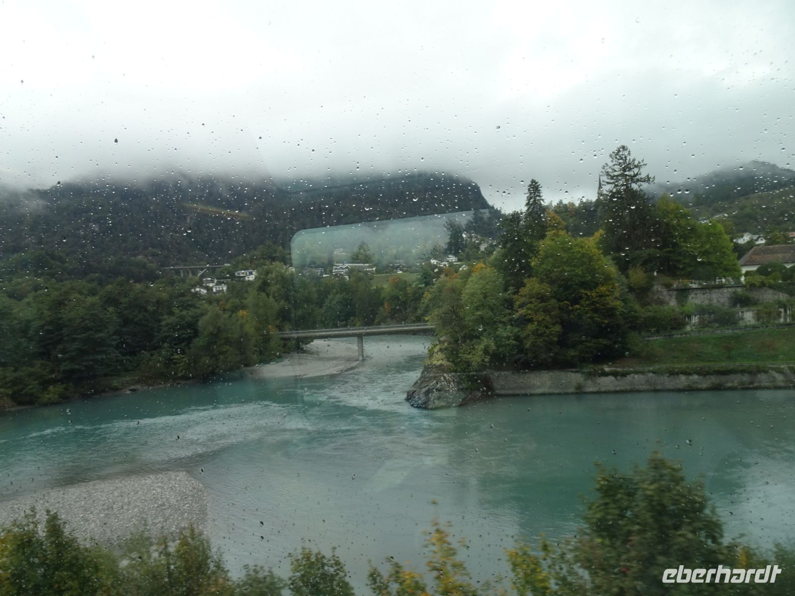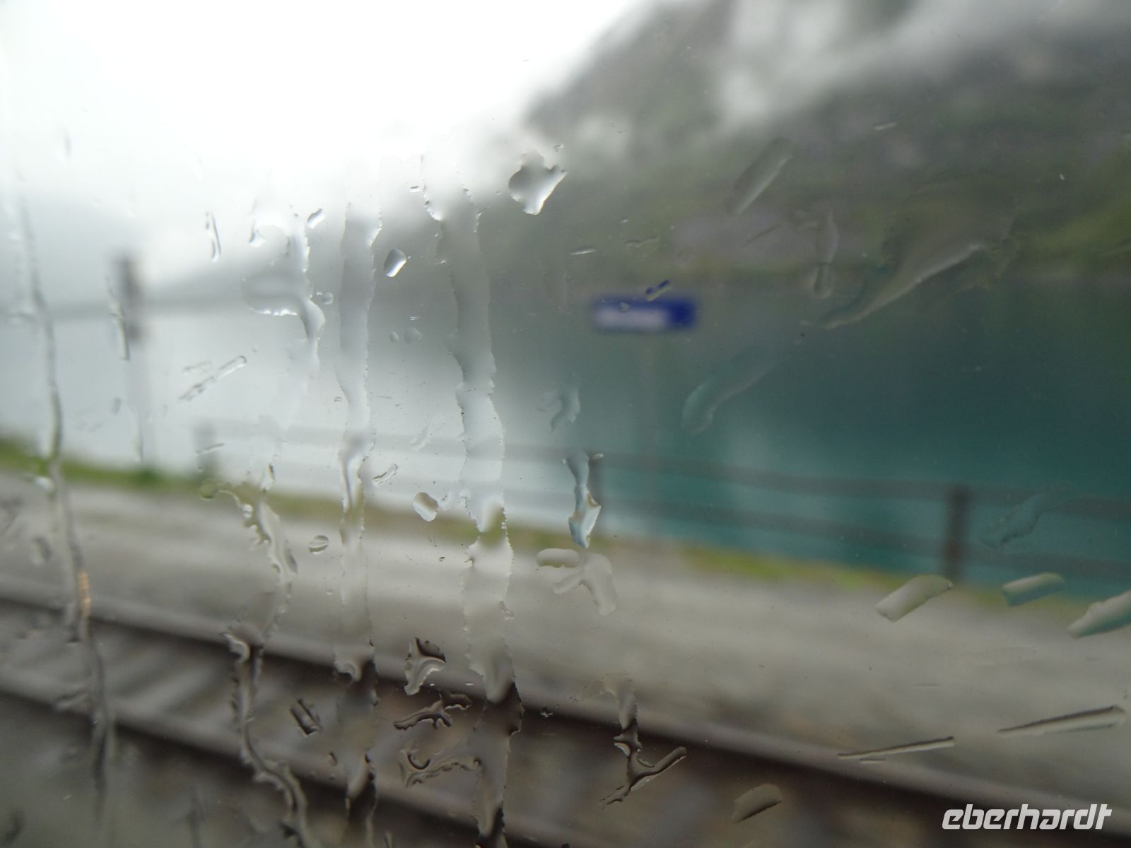 Dass sich mancher Reisegast einen erneuten Besuch in der Schweiz überlegt, hängt sicherlich auch mit dem Wetter zusammen. Denn obwohl wir regelmäßig sehr gut unser Menue aufgegessen hatten, waren Wolken, Regenschauer und manchmal auch kräftige Regengüsse unsere ständigen Begleiter. Schade, aber leider oder zum Glück durch uns Menschen nicht zu ändern.