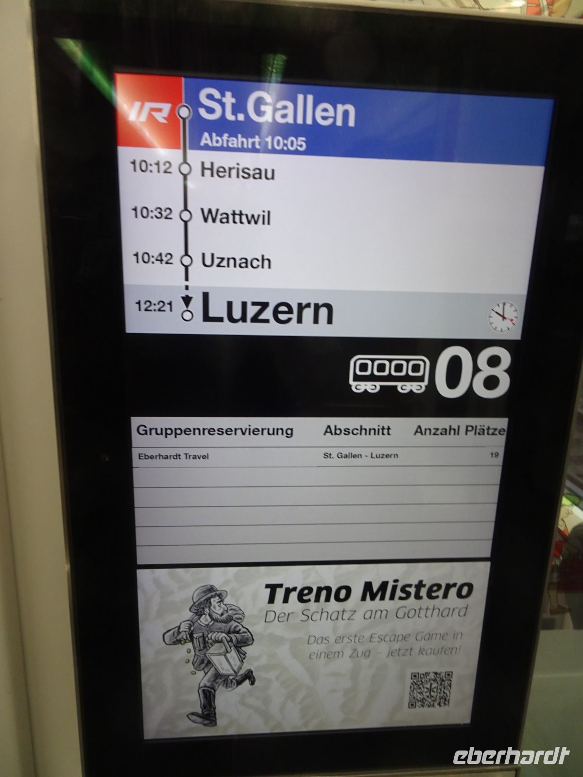 Da unser heutiges Tagesziel Zürich war, ging es nach kurzem Aufenthalt mit dem Zug weiter. Auch auf dieser letzten gemeinsamen Fahrt funktionierte die Platzreservierung wie bei allen vorherigen Fahrten perfekt.