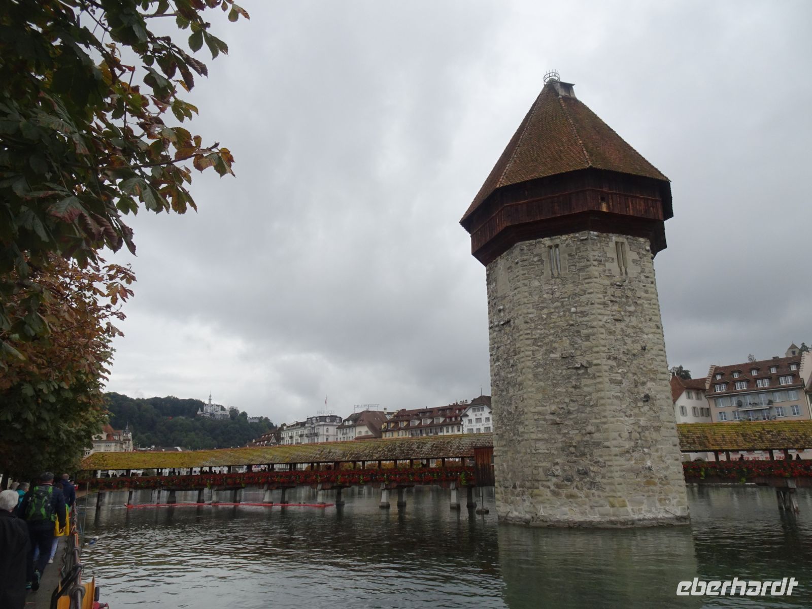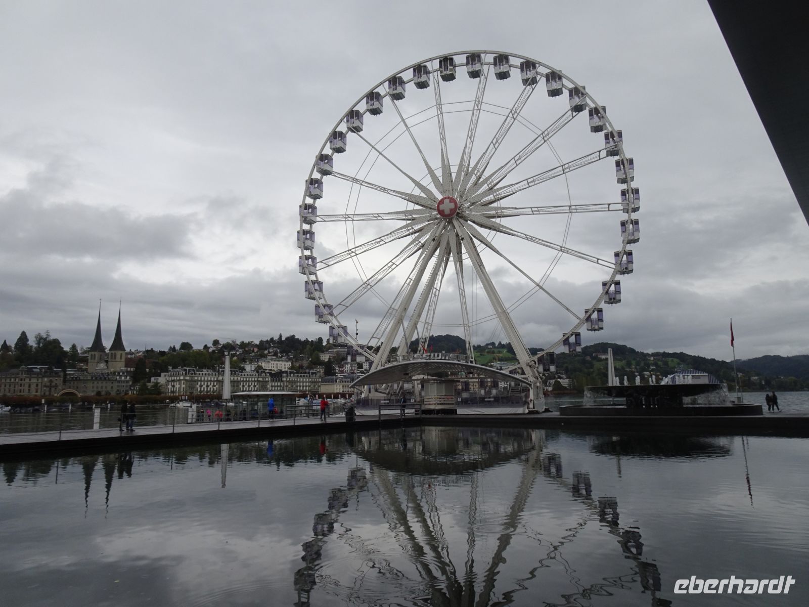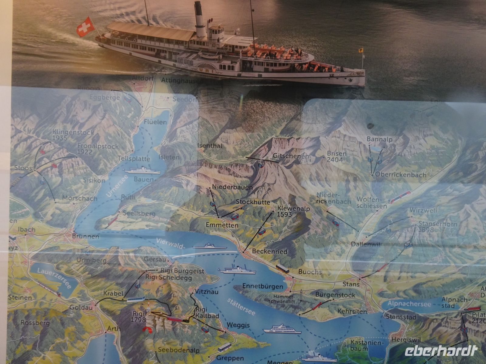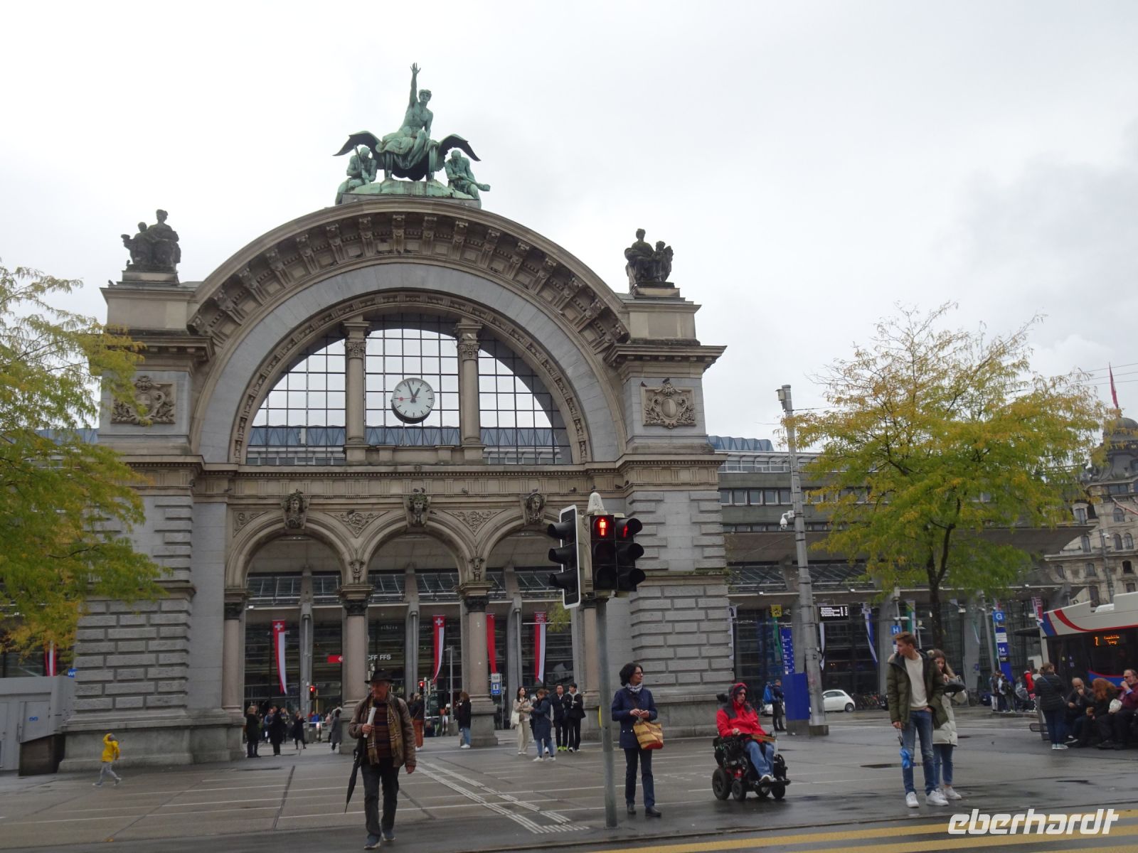 Unser Hotel "Waldstätterhof", direkt am nach dem Brand am 5. Februar 1971 wieder aufgebauten Bahnhof Luzern, war zentral gelegen. Bevor wir am Nachmittag einchecken konnten, zeigte unsere örtliche Stadtführerin uns die innerstädtischen Sehenswürdigkeiten, von Kapellbrücke über Jesuitenkirche bis zum Nadelwehr der Reuss. Mit Blick auf die Stadtmauer Musegg und deren noch erhaltenen 9 Türme ging es über Plätze, Märkte und durch Gassen zum Rathaus. Interessant hier: die Monduhr. Ausleger am Haus der Bäcker, Fassadengestaltung am Hotel "Zur Waage" und die für die Schweiz typischen Brunnen spazierten wir mit fachkundigen Erläuterungen über die Kapellbrücke. Diese nach dem Brand am 18. August 1993 teilweise abgebrannte Brücke wurde komplett wieder aufgebaut. Wir bestaunten die Post aus der Gründerzeit und erreichten dann unser Hotel. Wir konnten einchecken. Der Nachmittag gehörte uns. Empfehlungen gab es für den Löwenbrunnen, das Richard-Wagner-Museum und als typisch für unsere Reise das Verkehrshaus. Davor die originale Bohrkrone der Tunnelbohrmaschine des Gotthardttunnels. Innen dann die hochinteressanten und alle Verkehrsgattungen in ihrer historischen Entwicklung darstellenden typischen Exponate der Schweiz. Interssant: mit unserem Swiss Travel Pass, unserer "Fahrkarte" für alle DFahhrten mit den Zügen aber auch den öffentlichen Verkehrsmittel. Wir konnten das Verkehrshaus, wie auch verschiedene andere Museen, kostenfrei oder mit um 50% ermäßigtem Eintritt besuchen. Aber wenn wir damit alle Möglichkeiten genutzt hätten, hätte unser Reise mindestens doppelt so lang sein müssen!