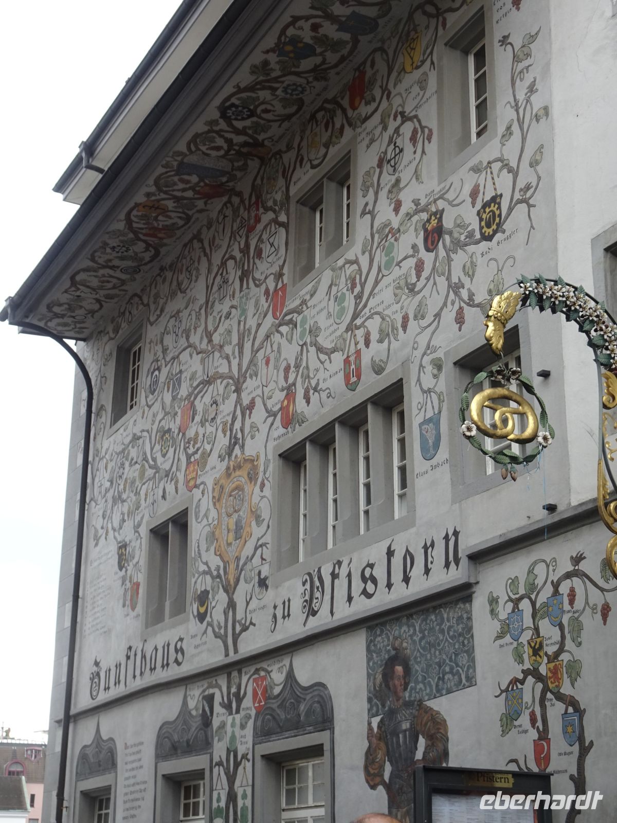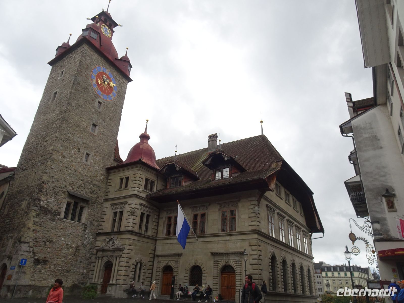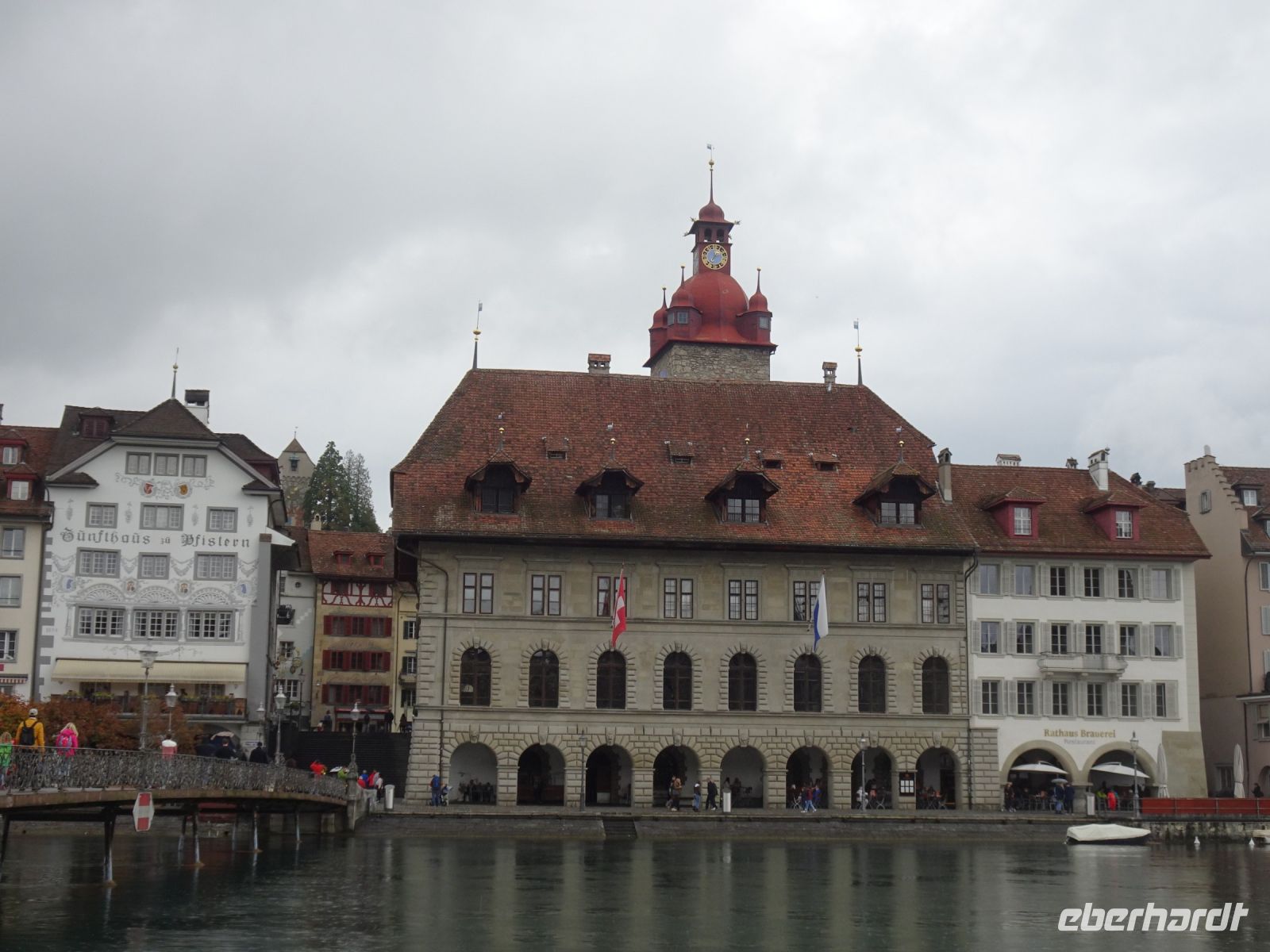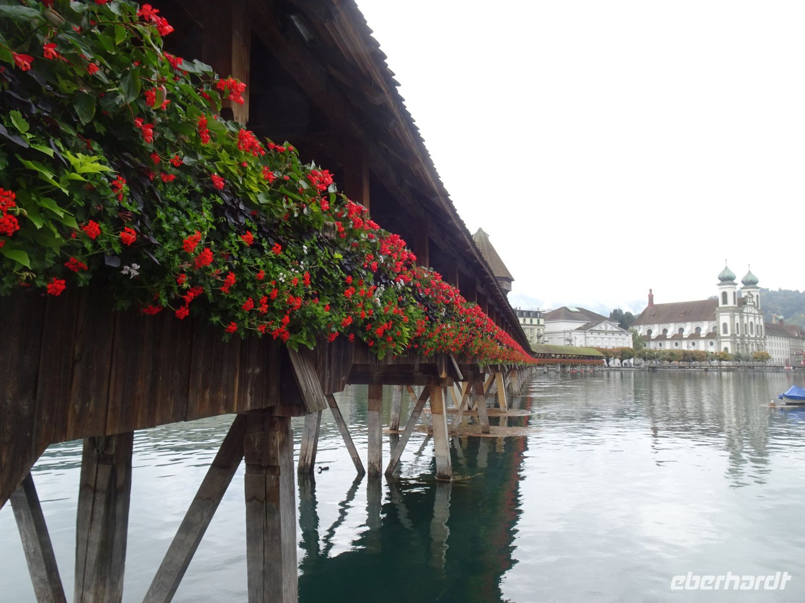 Unser Hotel "Waldstätterhof", direkt am nach dem Brand am 5. Februar 1971 wieder aufgebauten Bahnhof Luzern, war zentral gelegen. Bevor wir am Nachmittag einchecken konnten, zeigte unsere örtliche Stadtführerin uns die innerstädtischen Sehenswürdigkeiten, von Kapellbrücke über Jesuitenkirche bis zum Nadelwehr der Reuss. Mit Blick auf die Stadtmauer Musegg und deren noch erhaltenen 9 Türme ging es über Plätze, Märkte und durch Gassen zum Rathaus. Interessant hier: die Monduhr. Ausleger am Haus der Bäcker, Fassadengestaltung am Hotel "Zur Waage" und die für die Schweiz typischen Brunnen spazierten wir mit fachkundigen Erläuterungen über die Kapellbrücke. Diese nach dem Brand am 18. August 1993 teilweise abgebrannte Brücke wurde komplett wieder aufgebaut. Wir bestaunten die Post aus der Gründerzeit und erreichten dann unser Hotel. Wir konnten einchecken. Der Nachmittag gehörte uns. Empfehlungen gab es für den Löwenbrunnen, das Richard-Wagner-Museum und als typisch für unsere Reise das Verkehrshaus. Davor die originale Bohrkrone der Tunnelbohrmaschine des Gotthardttunnels. Innen dann die hochinteressanten und alle Verkehrsgattungen in ihrer historischen Entwicklung darstellenden typischen Exponate der Schweiz. Interssant: mit unserem Swiss Travel Pass, unserer "Fahrkarte" für alle DFahhrten mit den Zügen aber auch den öffentlichen Verkehrsmittel. Wir konnten das Verkehrshaus, wie auch verschiedene andere Museen, kostenfrei oder mit um 50% ermäßigtem Eintritt besuchen. Aber wenn wir damit alle Möglichkeiten genutzt hätten, hätte unser Reise mindestens doppelt so lang sein müssen!